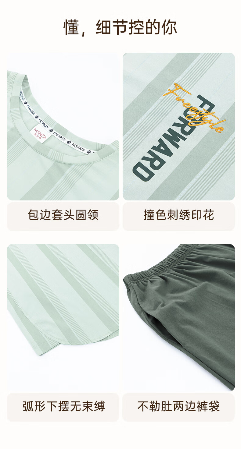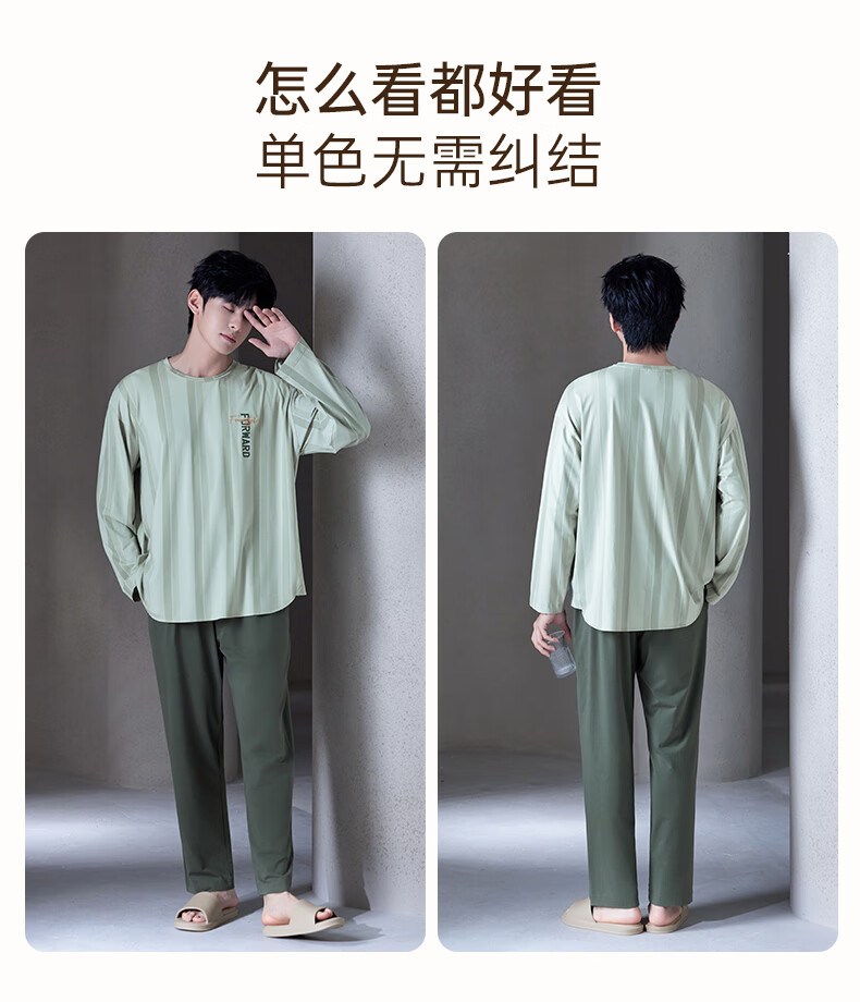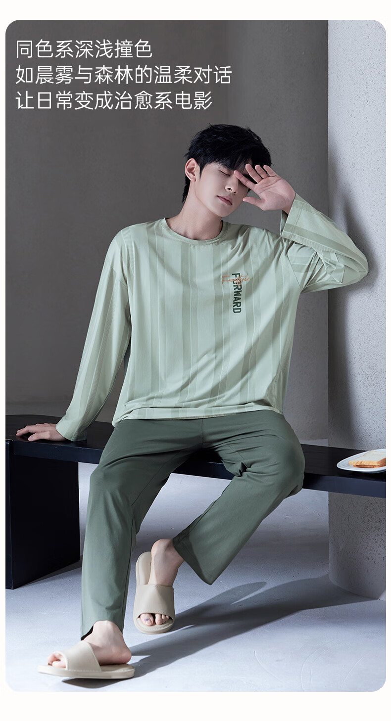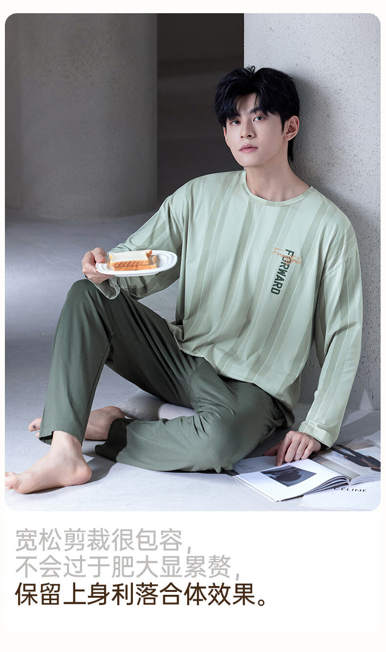 玛伦萨【超柔软】纯棉睡衣男春秋季2025新款长袖长裤可外穿男士家居服 灰绿 L