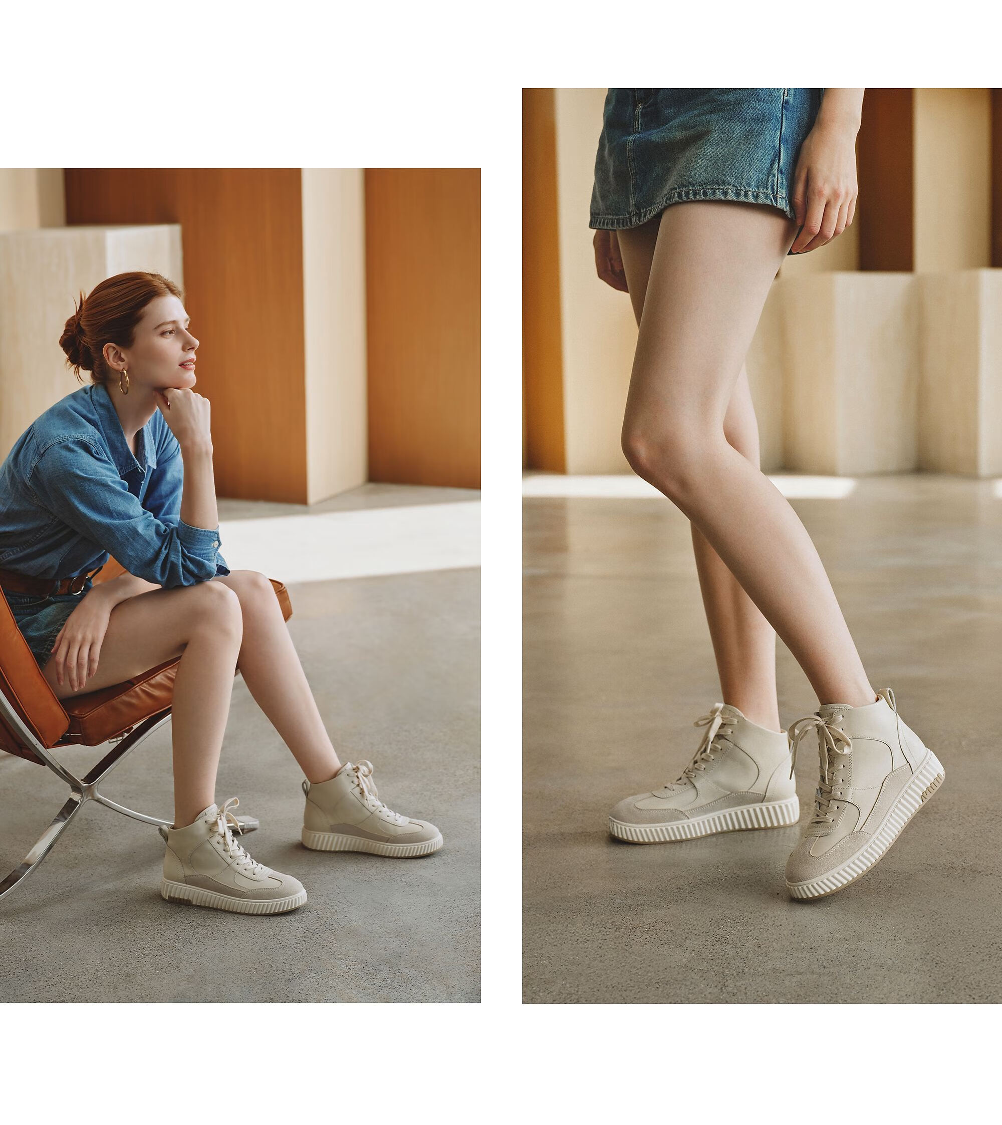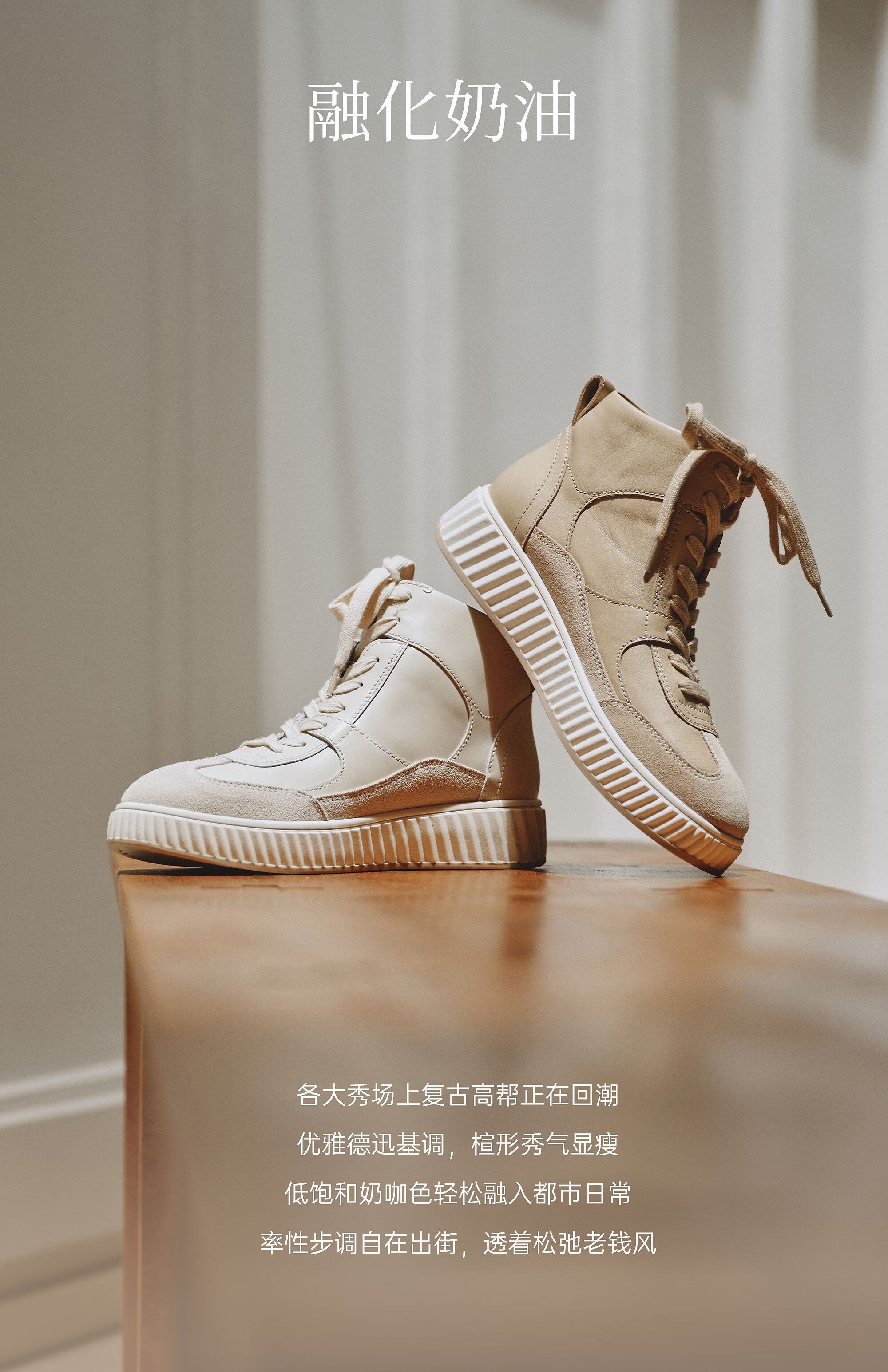73Hours女鞋融化奶油2025冬季新款厚底增高复古饼干底马丁靴短靴 米白 35