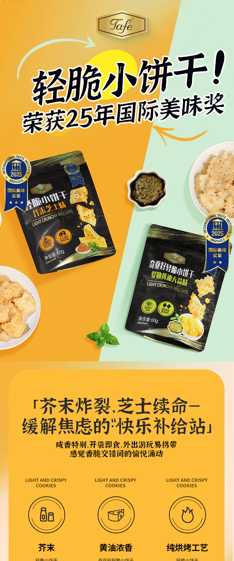 【山姆同厂】苏打饼干组合礼包 海盐苏打400g+2袋tafe脆片(芥末芝士+罗勒黄油大蒜)