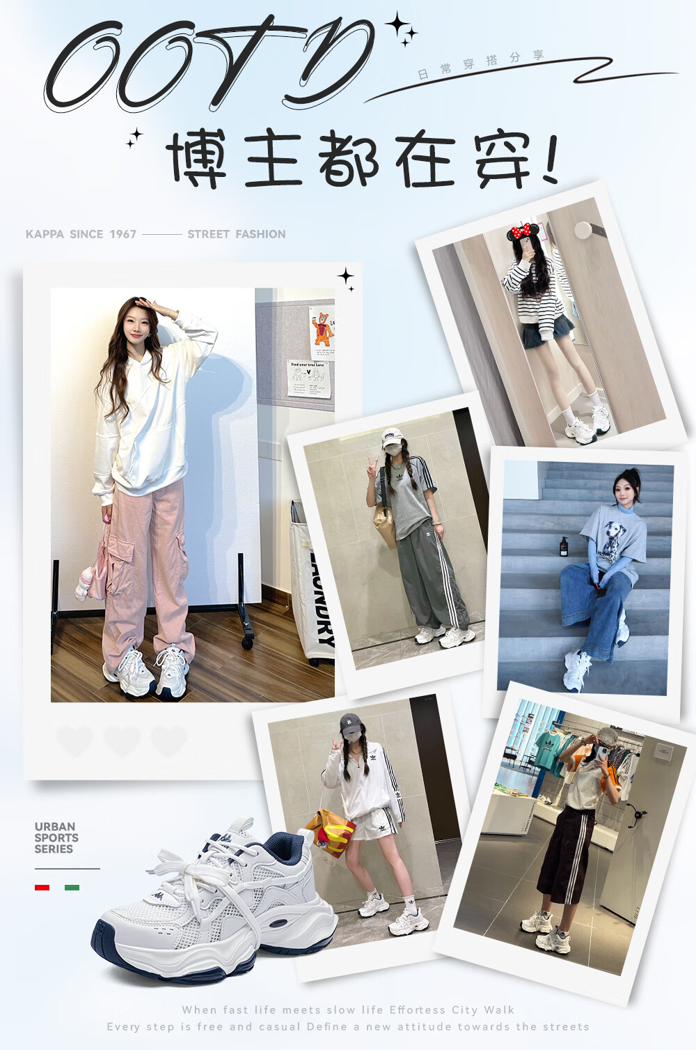 卡帕(Kappa)官方运动老爹鞋子女鞋厚底增高网面镂空透气小白鞋 海昌蓝 40
