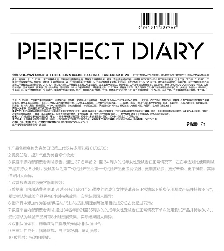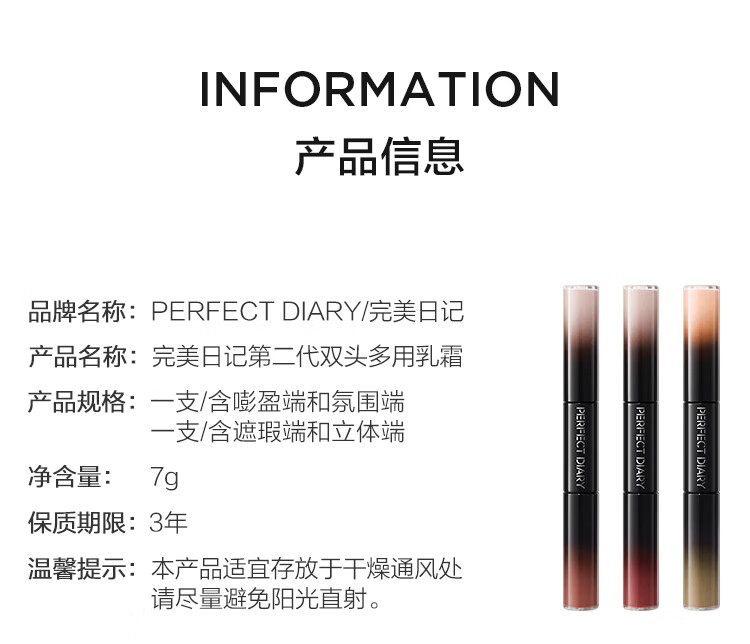 完美日记第二代双头气色嘭嘭霜01高光液体腮红唇釉眼影生日礼物送女友