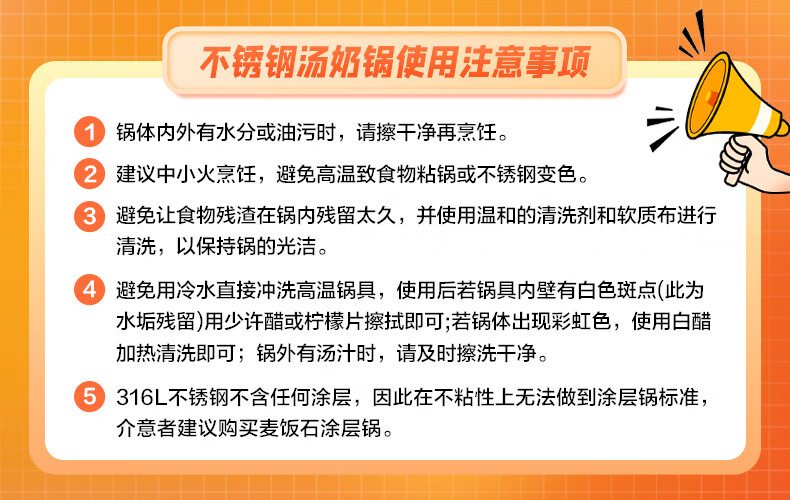 苏泊尔SUPOR小红圈304不锈钢奶锅煮面锅辅食锅16cm明火专用ST16H1