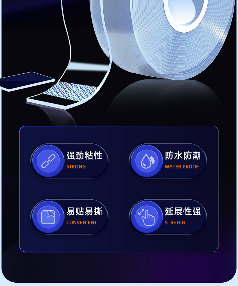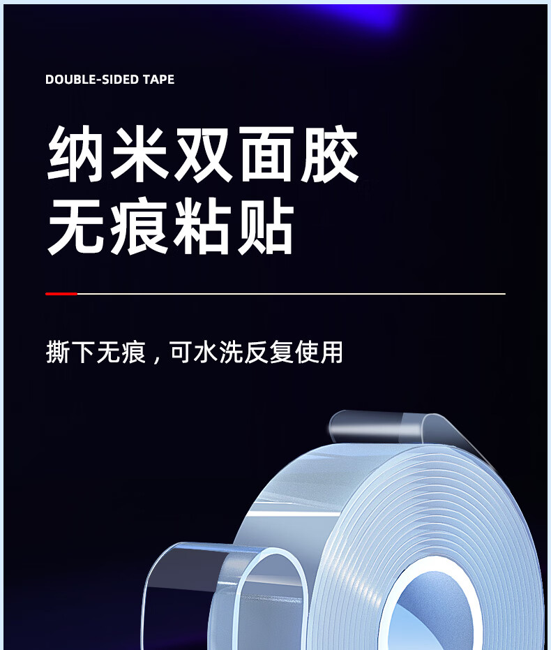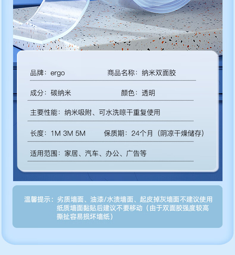 ergo纳米双面胶强力双面胶网格双面胶无痕双面胶插座粘墙面防水胶带etc双面胶强力胶带双面胶贴双面贴 长3米、宽3厘米、厚1毫米(送剪刀)