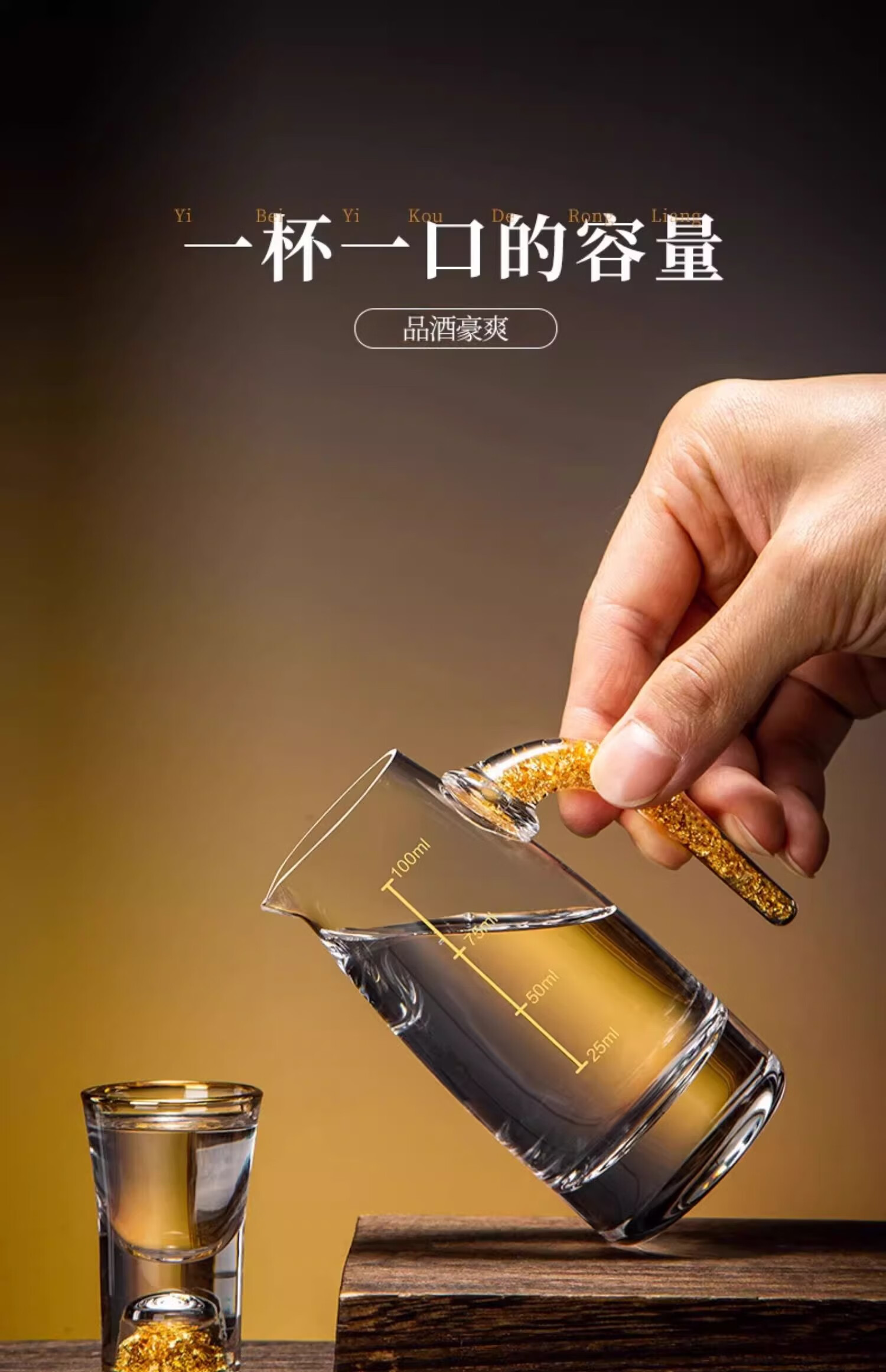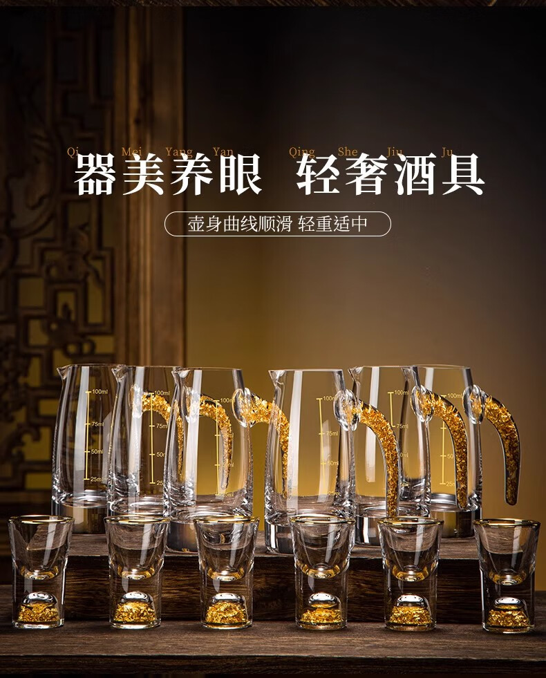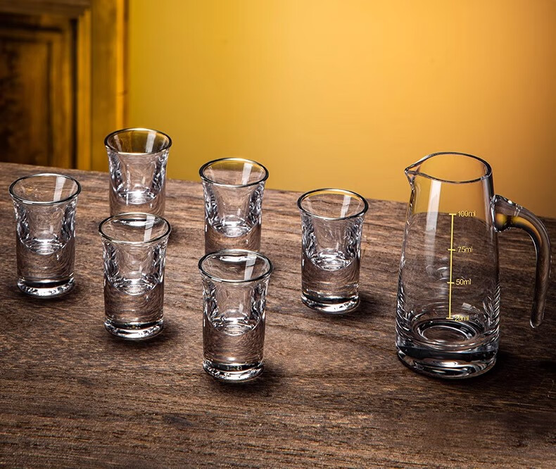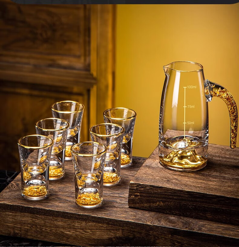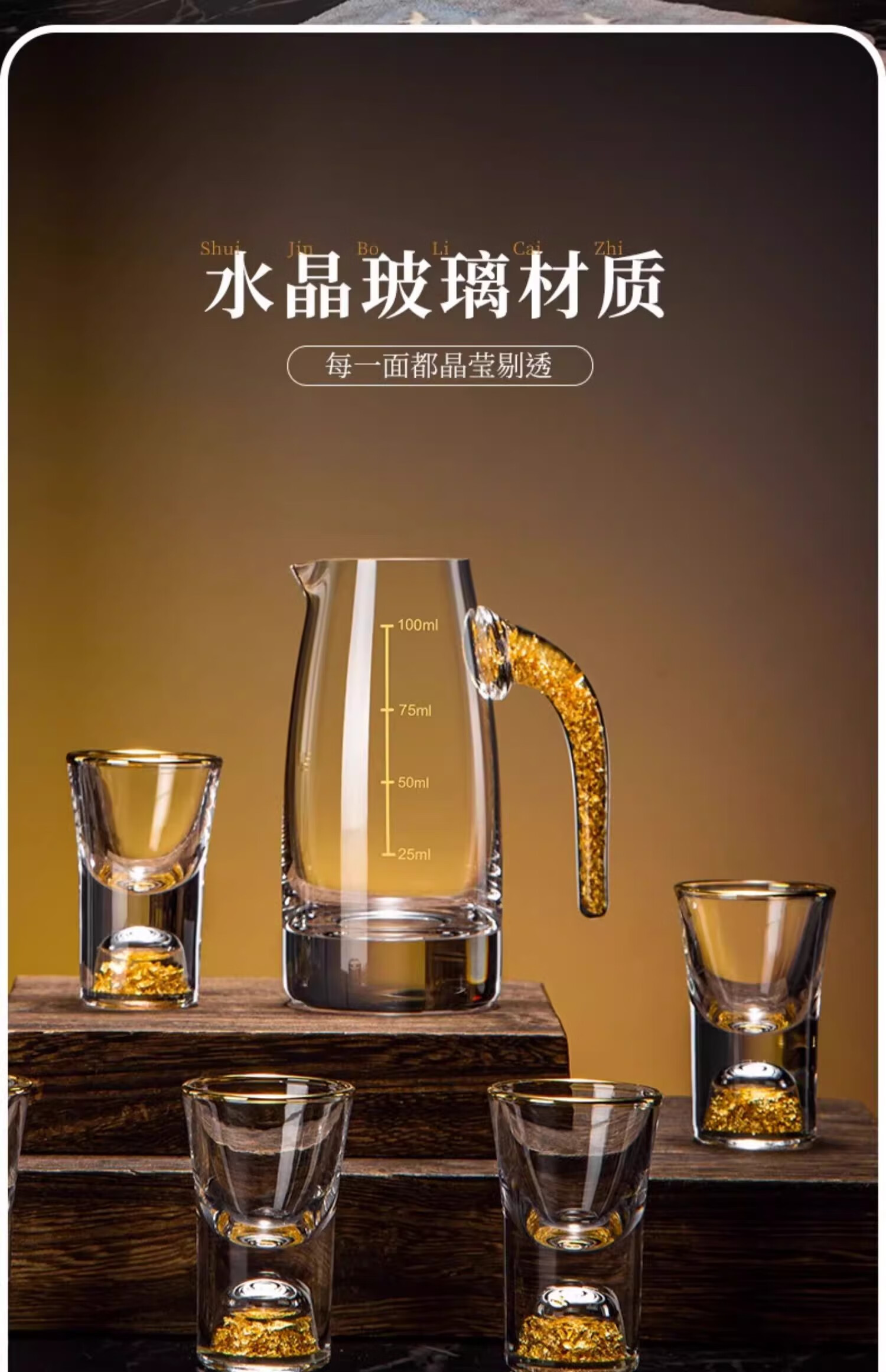 WCZ德国高端水晶玻璃白酒杯套装家用中式一口小酒杯子二两分酒器 水晶分酒器*6+白酒杯10ml*6