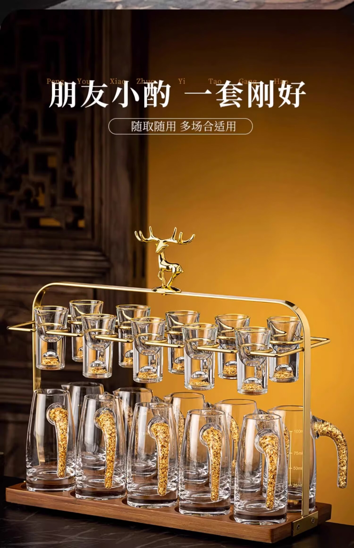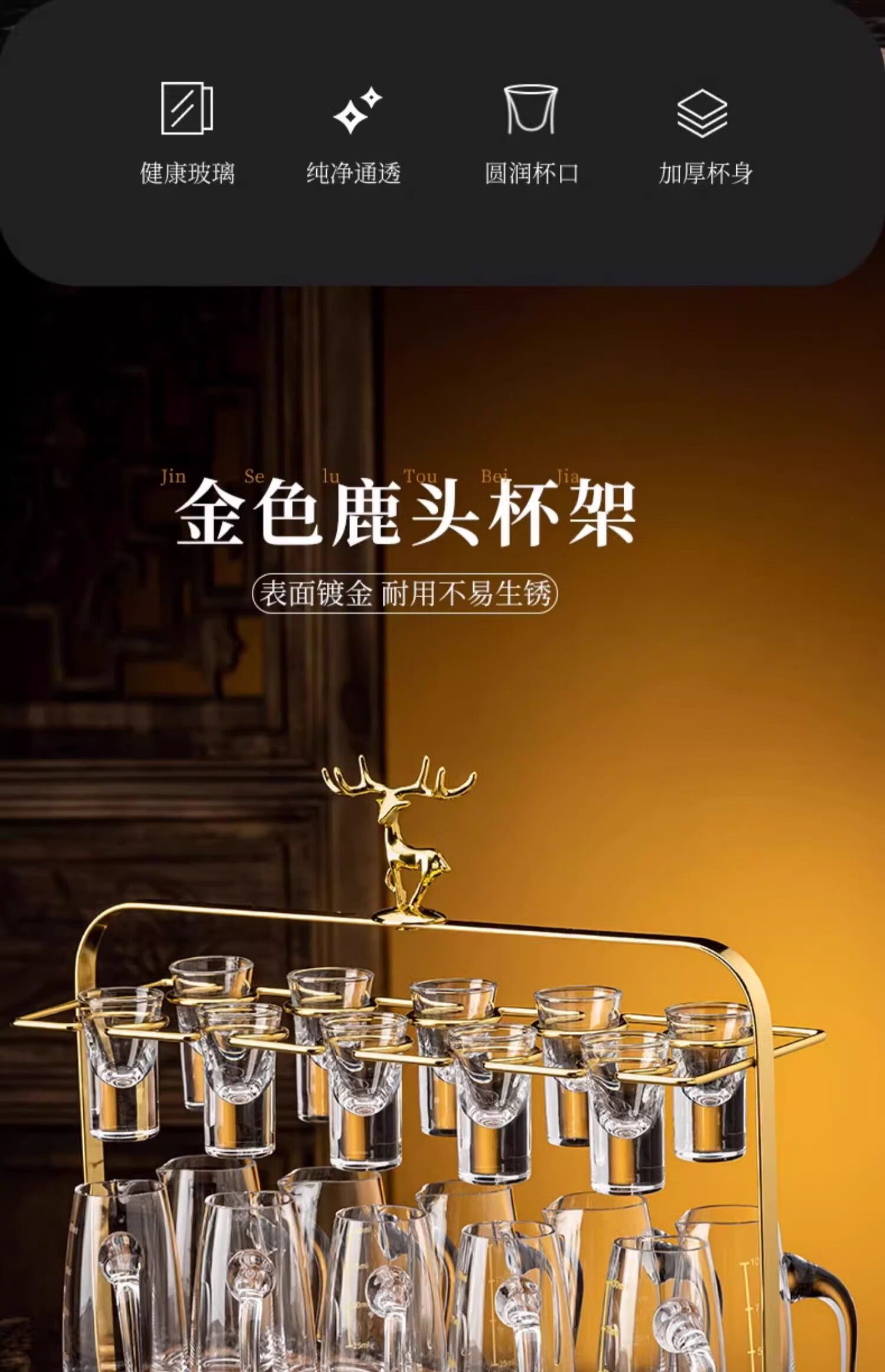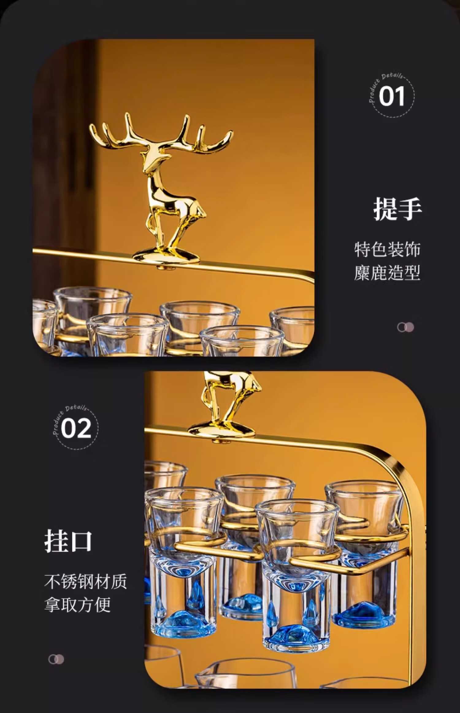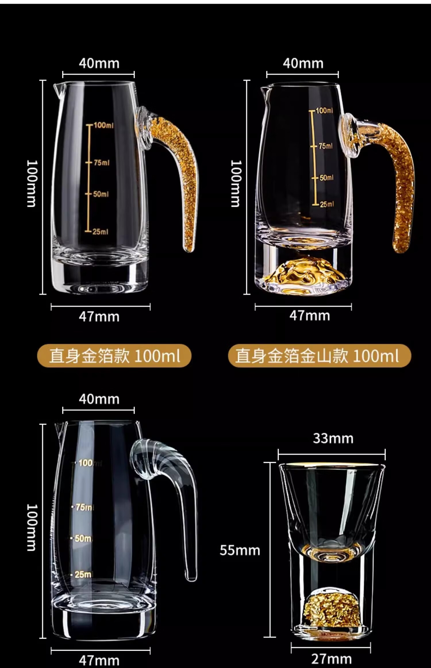 WCZ德国高端水晶玻璃白酒杯套装家用中式一口小酒杯子二两分酒器 水晶分酒器*6+白酒杯10ml*6