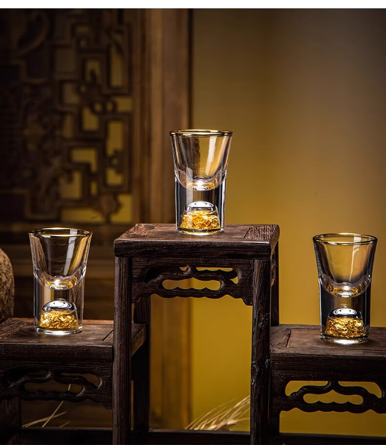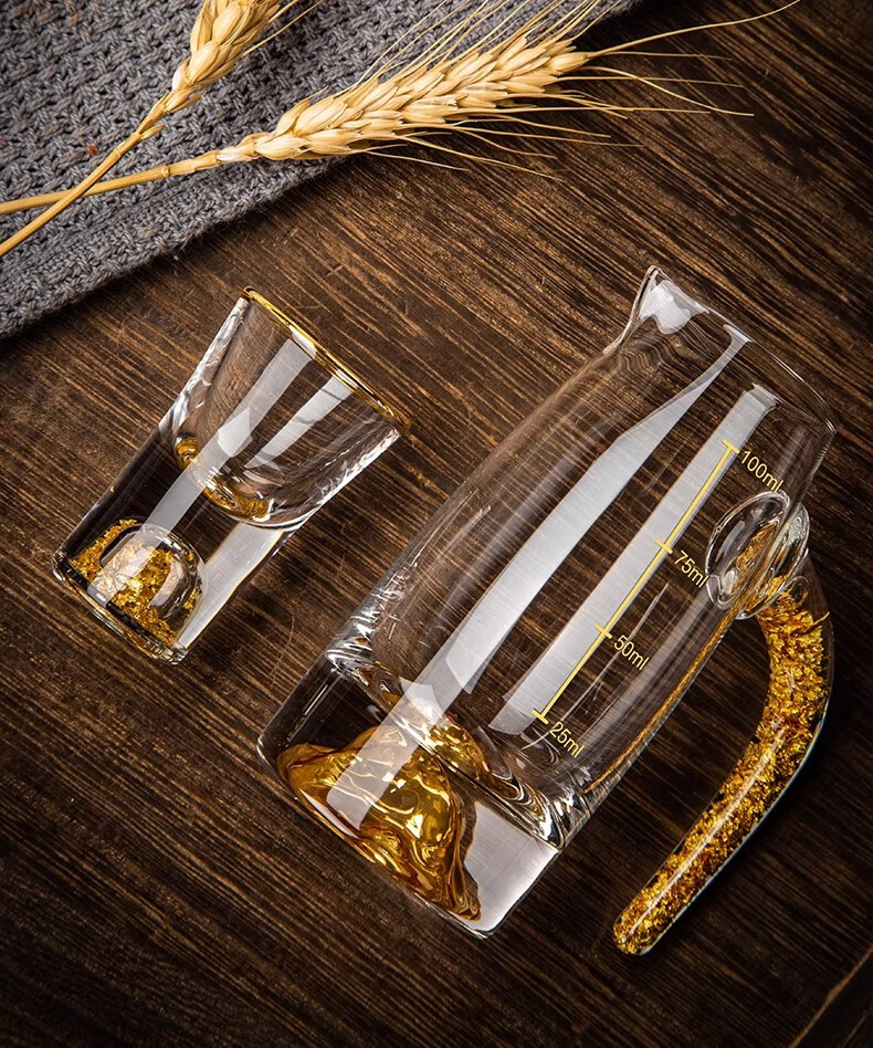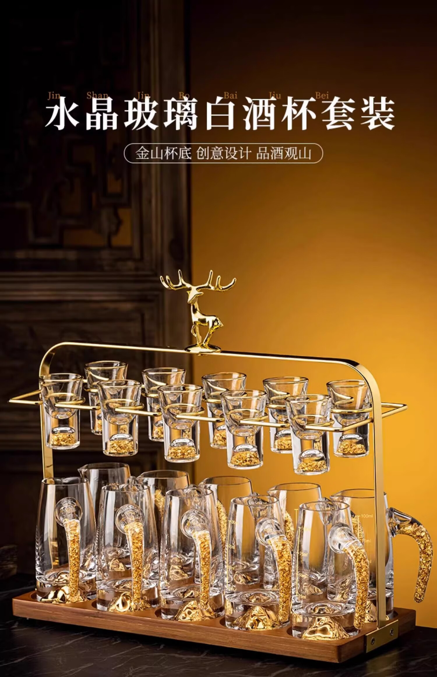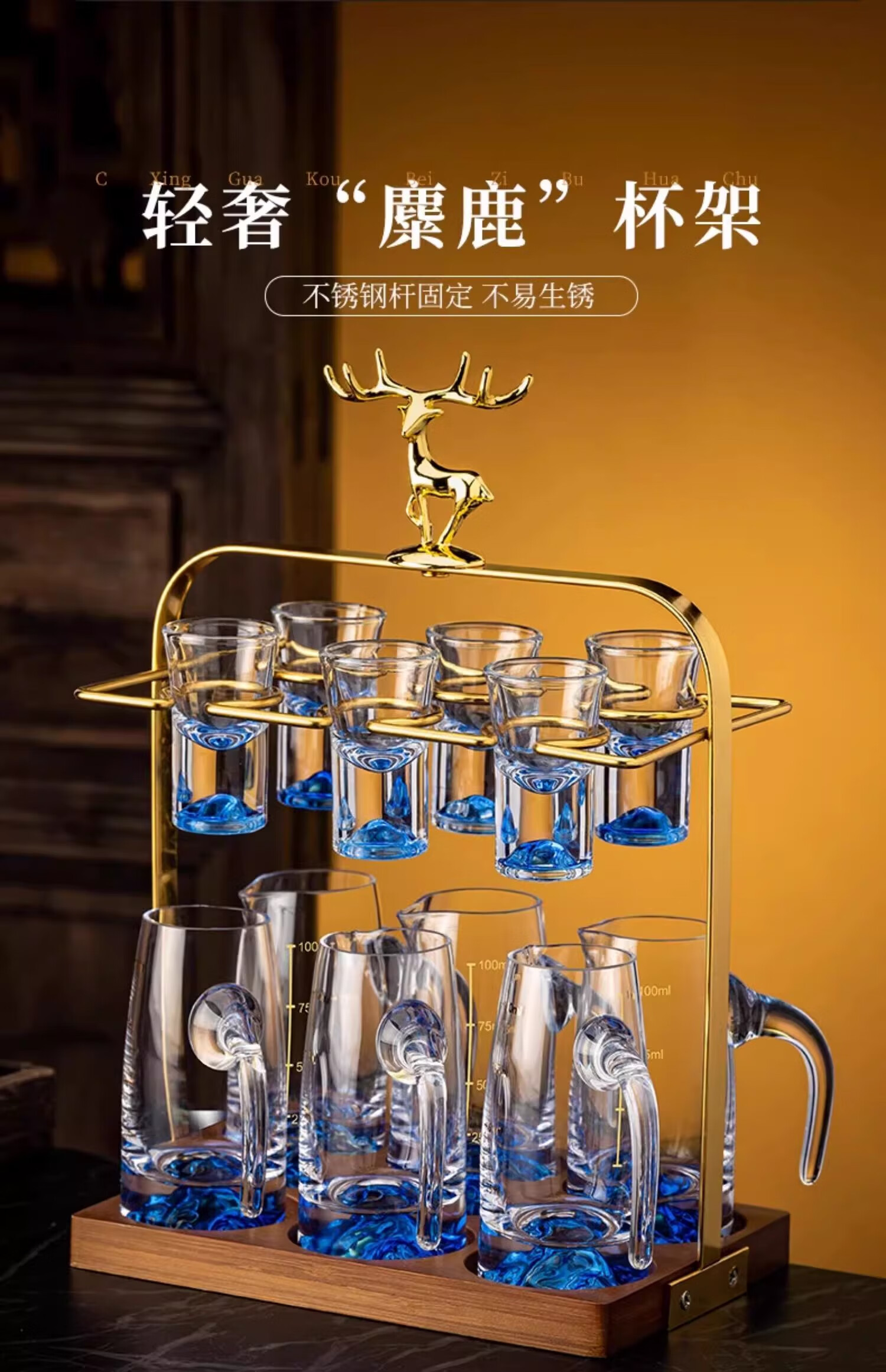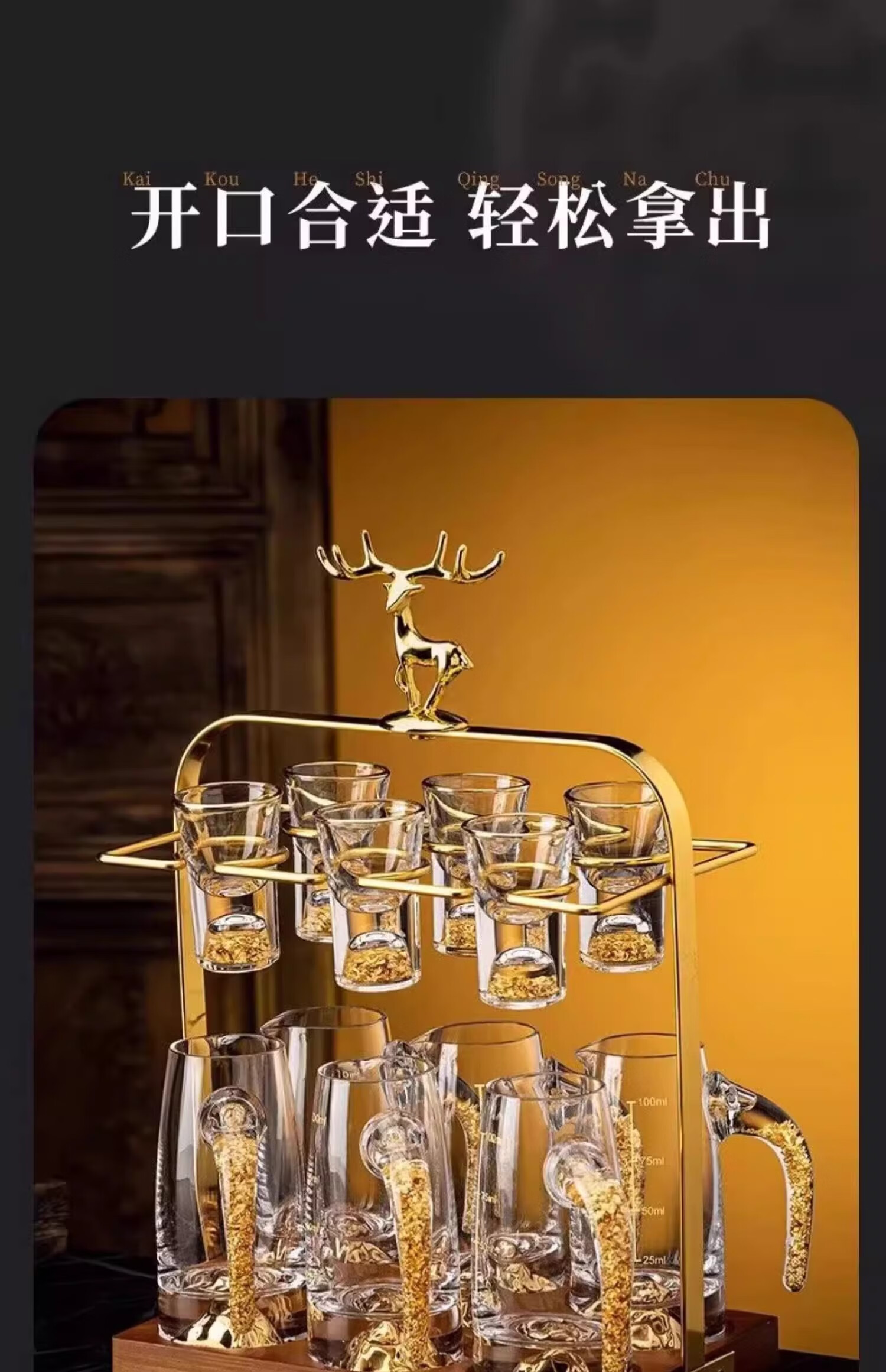 WCZ德国高端水晶玻璃白酒杯套装家用中式一口小酒杯子二两分酒器 水晶分酒器*6+白酒杯10ml*6