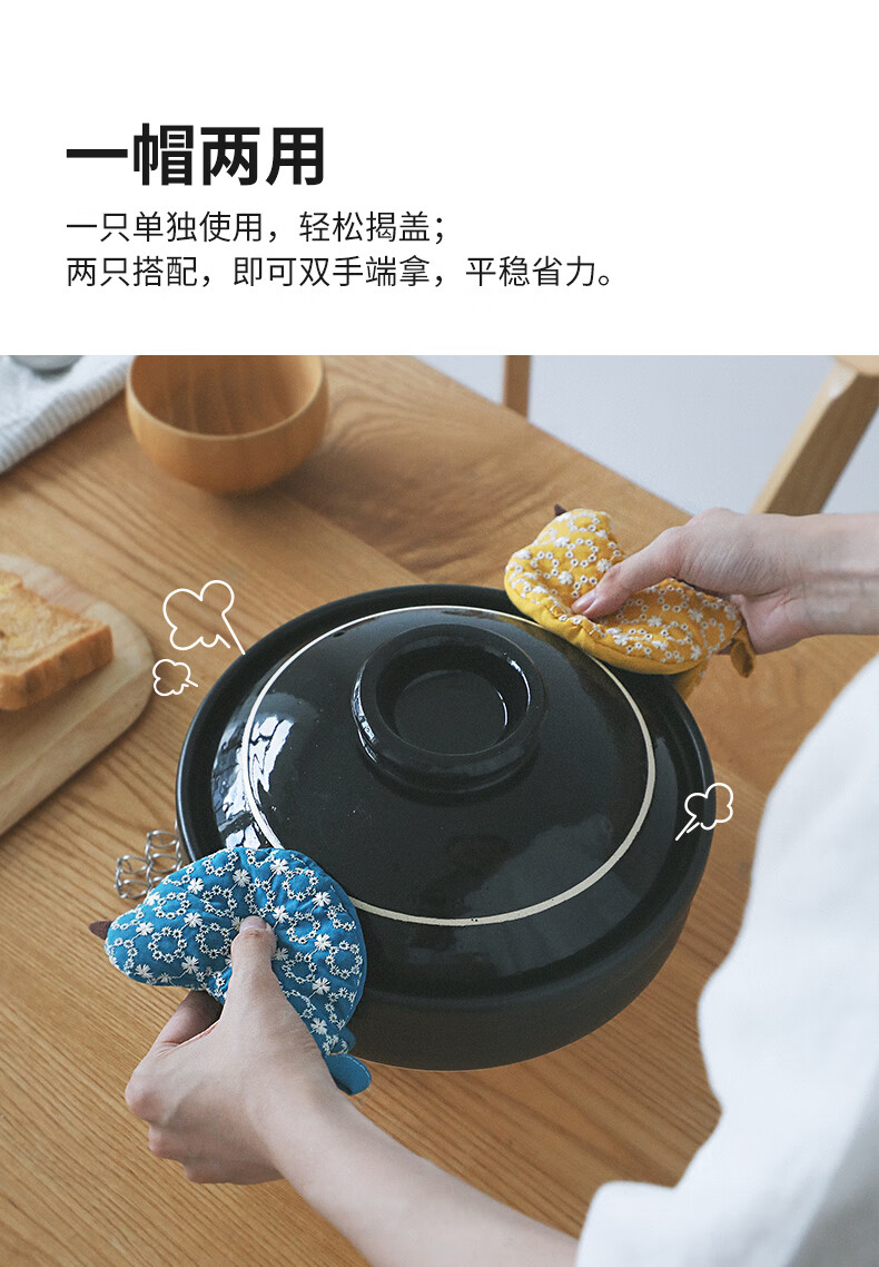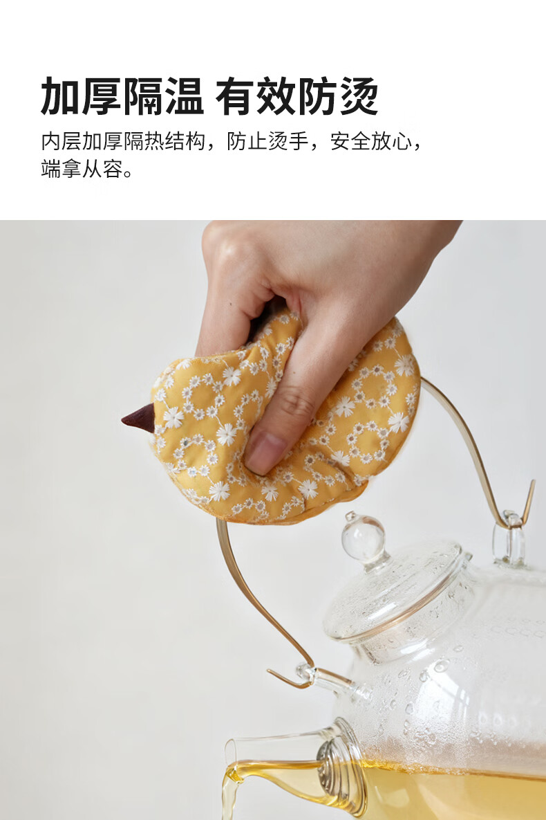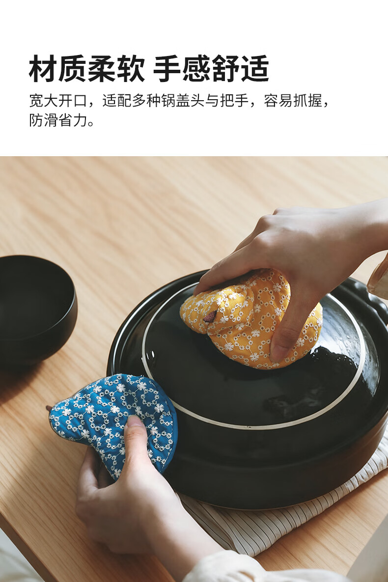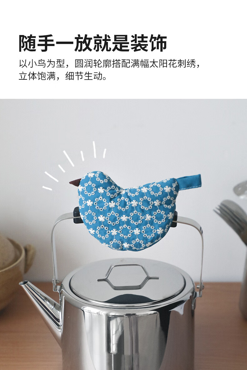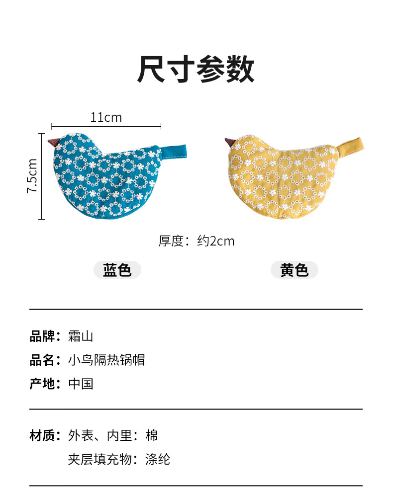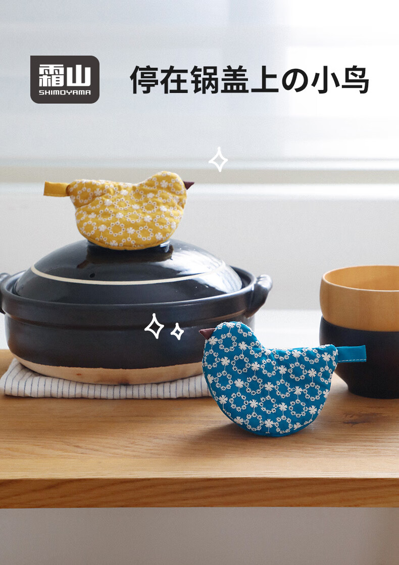 霜山日式锅盖帽创意小鸟厨房家用砂锅水壶把手耳套加厚隔热手套夹 蓝色小鸟-长11*宽7.5*厚度2cm