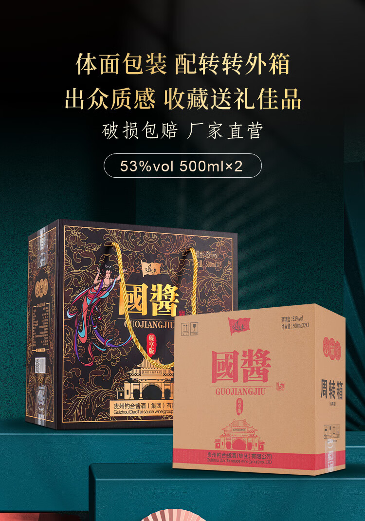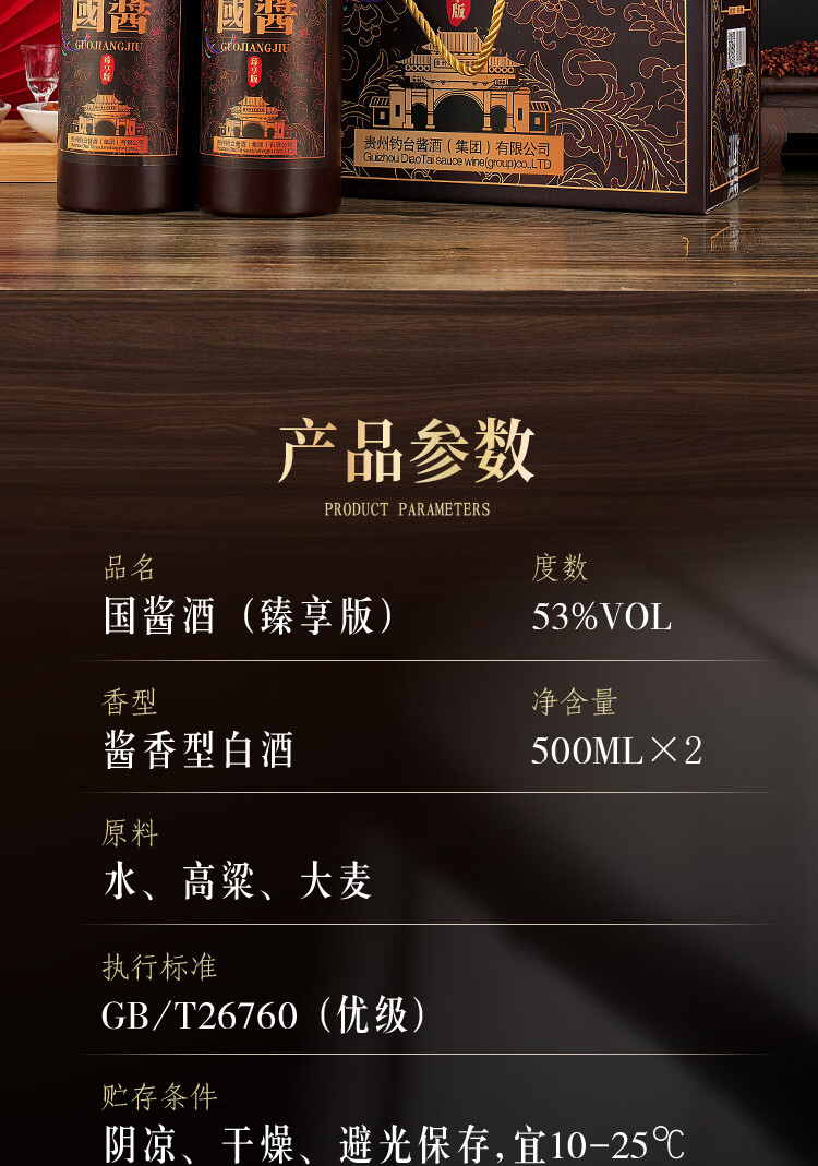 追起来(zhuiqilai)贵州钓台酱酒集团 国酱(臻享版) 酱香型 53度 500ml*2瓶