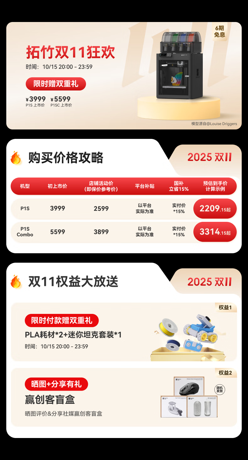 拓竹P1SC 3D打印机桌面家用FDM全自动调平大尺寸多色高速3d打印机器【大陆版】