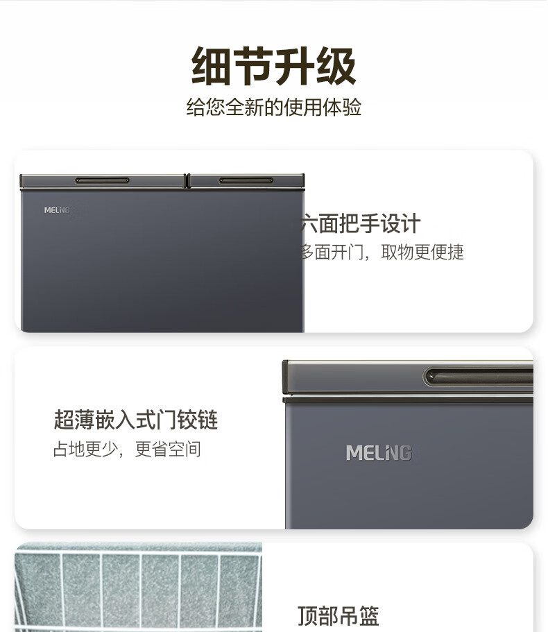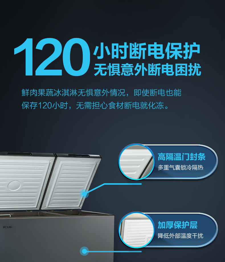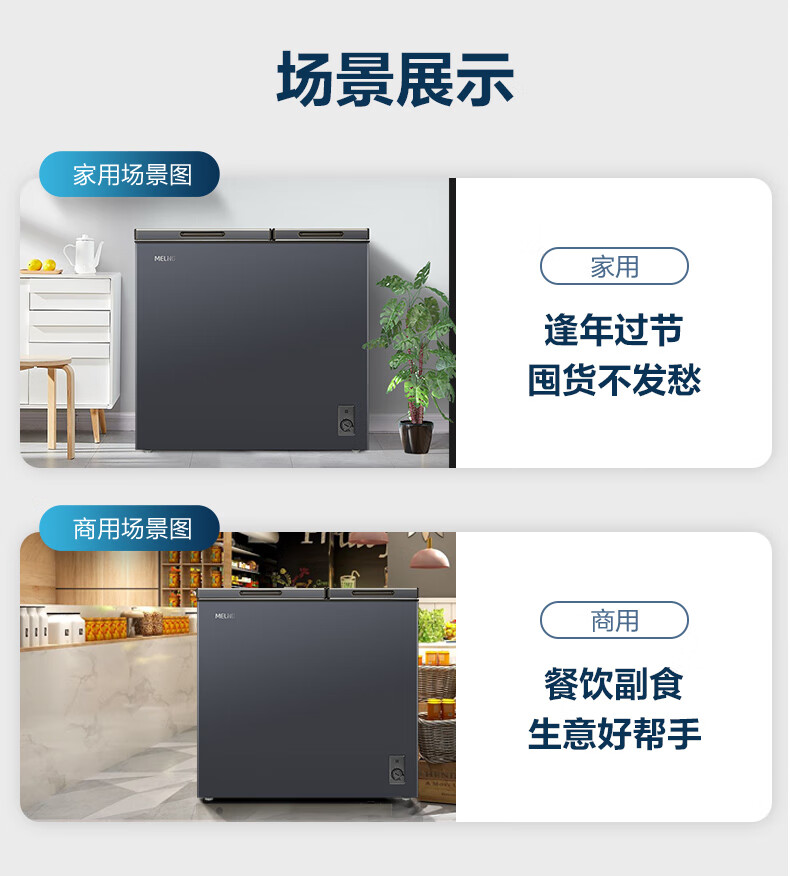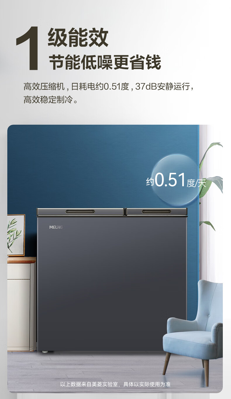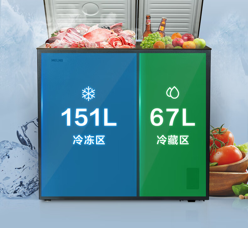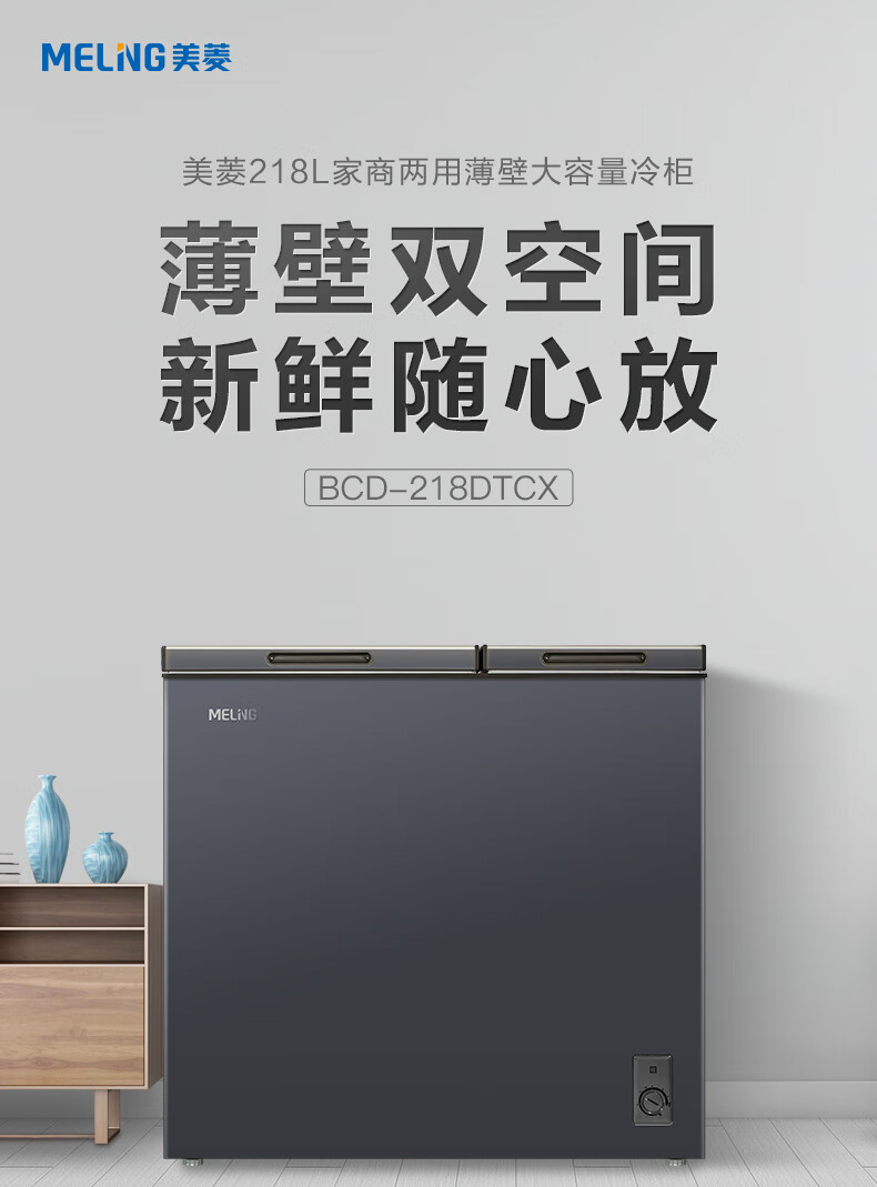美菱(MeiLing)218升大容量家用冰柜 双箱双温冷柜 顶开门一级能效节能 冷藏冷冻卧式冰箱BCD-218DTCX国家补贴