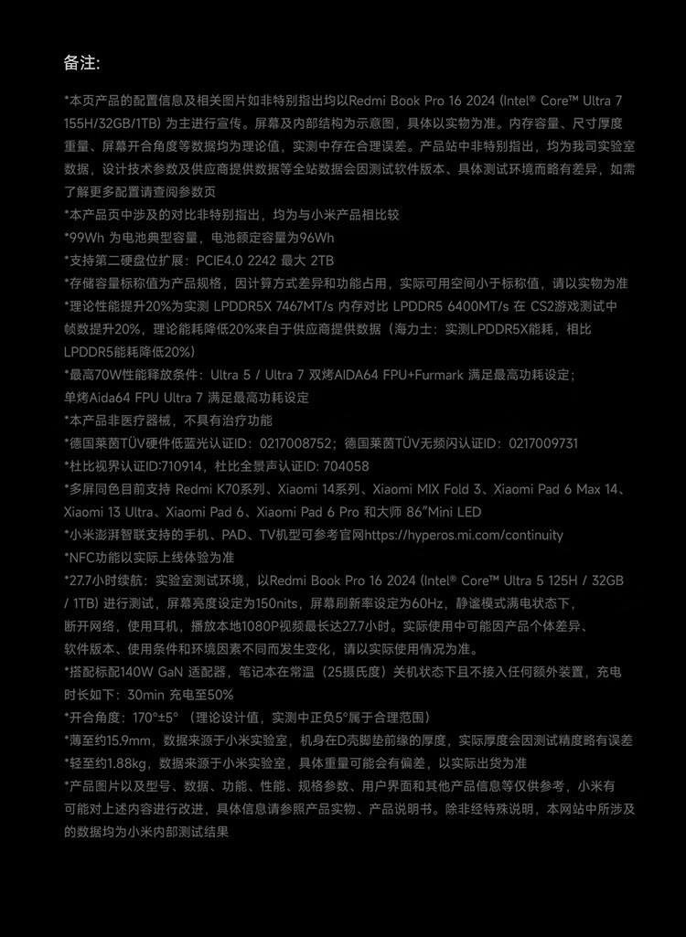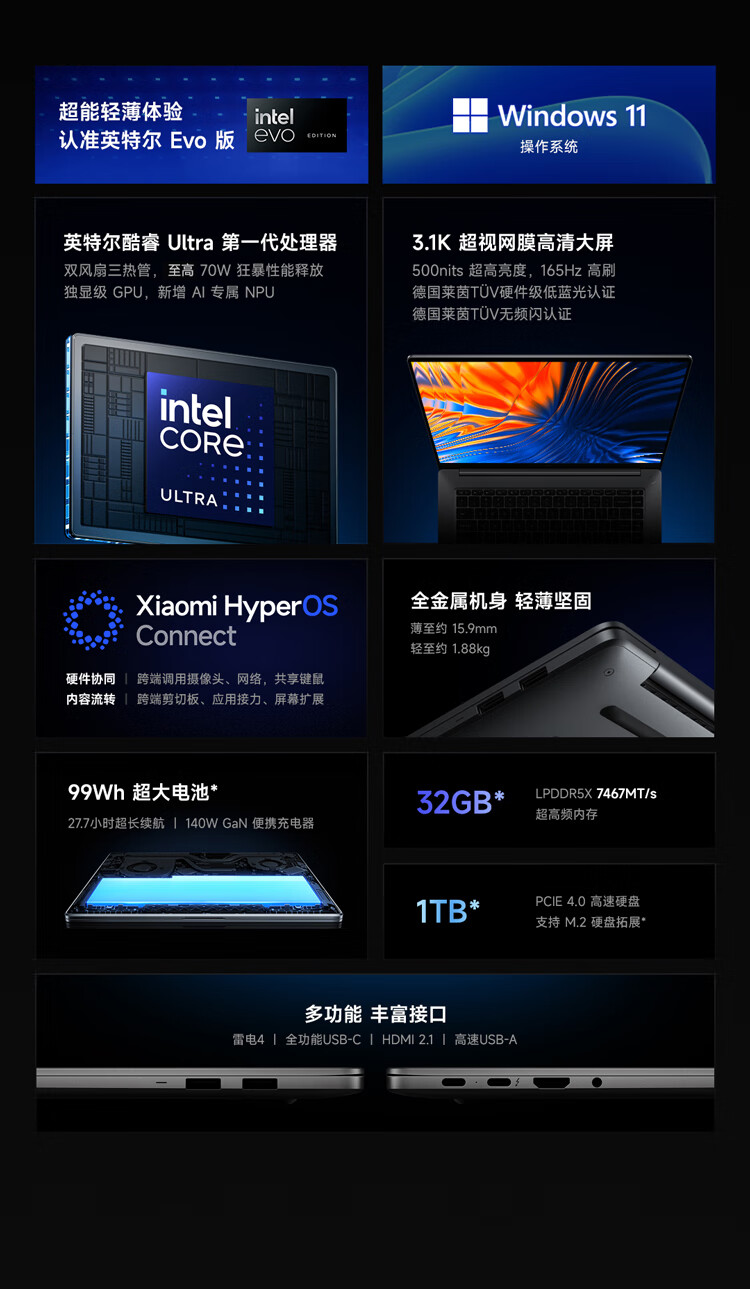 小米笔记本电脑 REDMI Book Pro 16 酷睿Ultra5 3.1K 165Hz 16英寸红米轻薄本