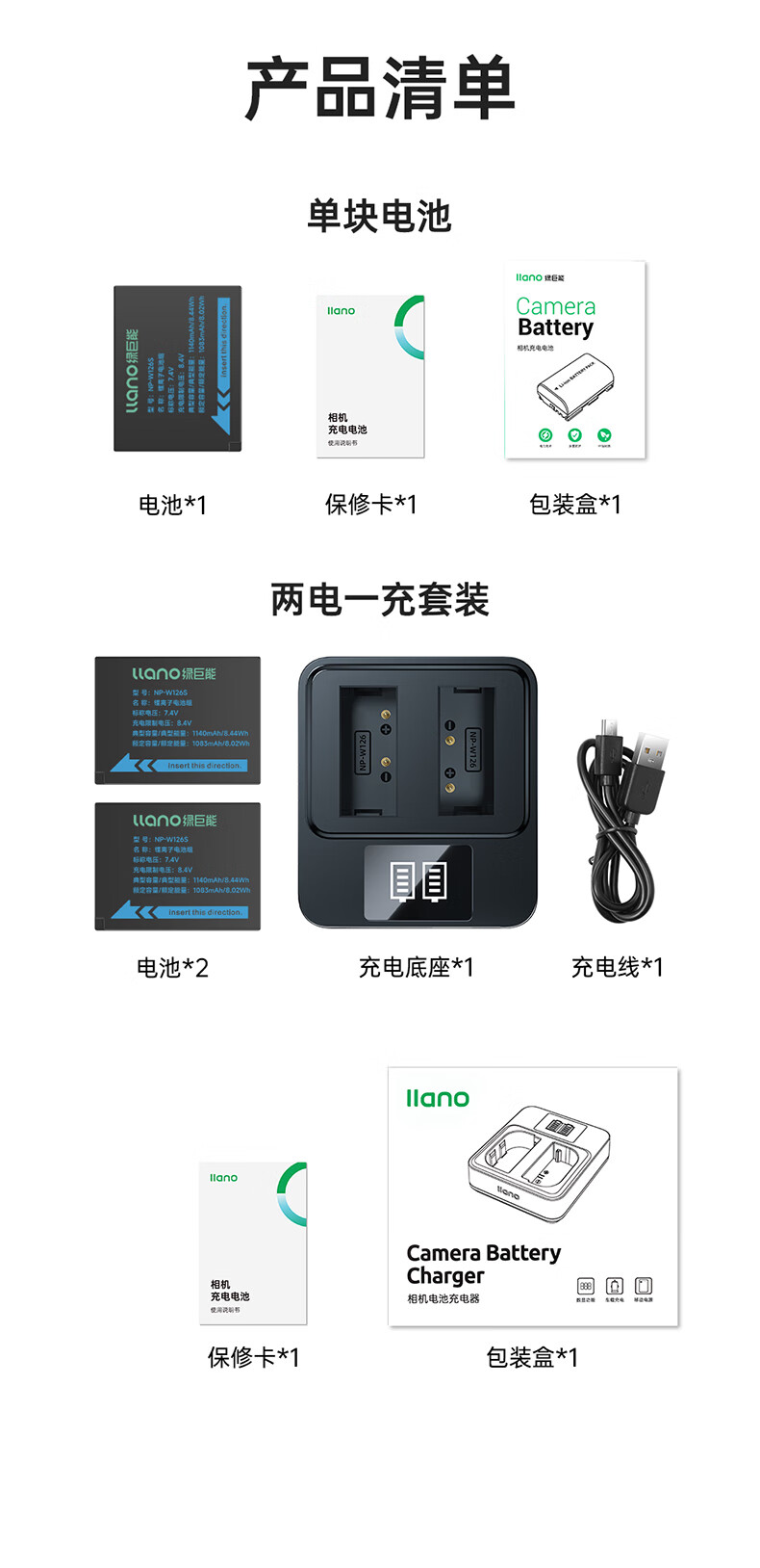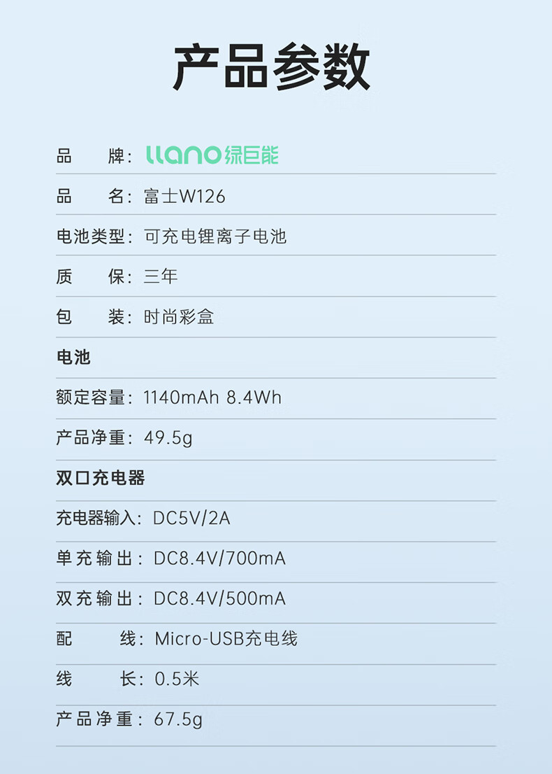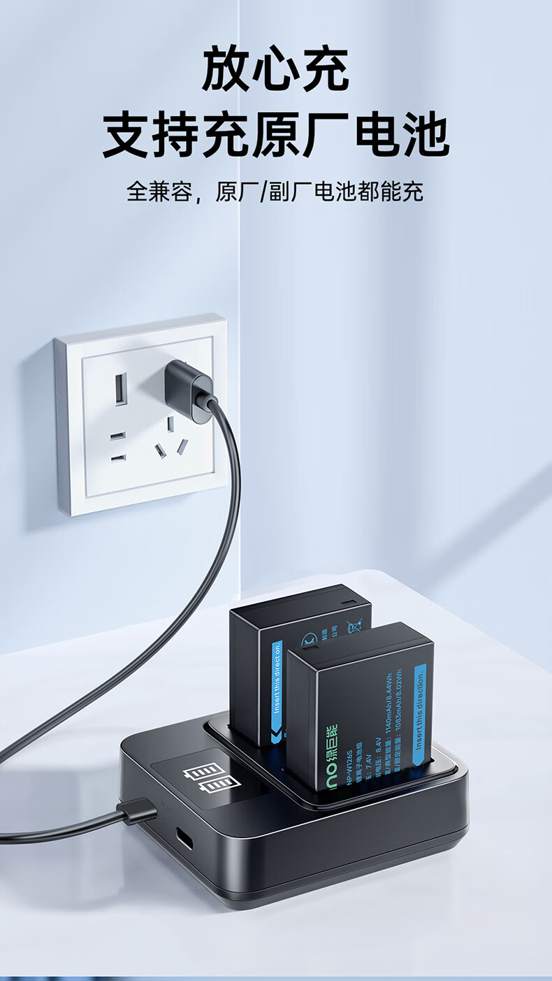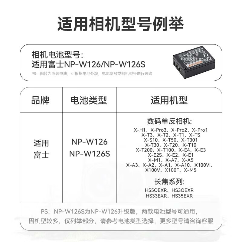 绿巨能(llano)适用富士X-T50相机NP-W126S电池充电器X-T30 II/xm5/xs10/x100vi/xt20/XE4/XM5/A5/X-Pro3数码微单