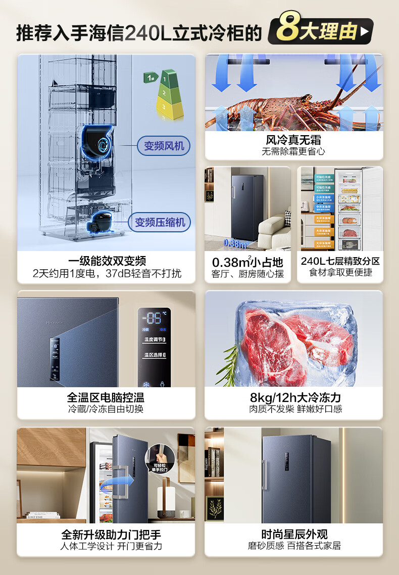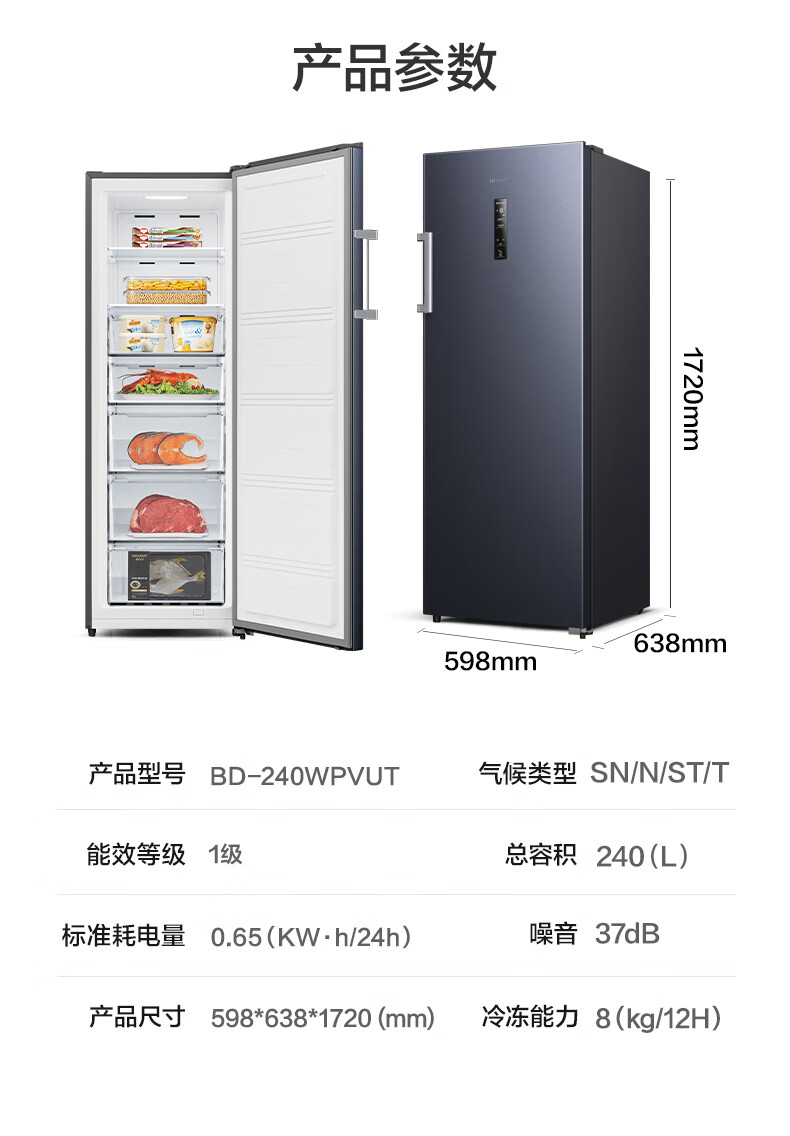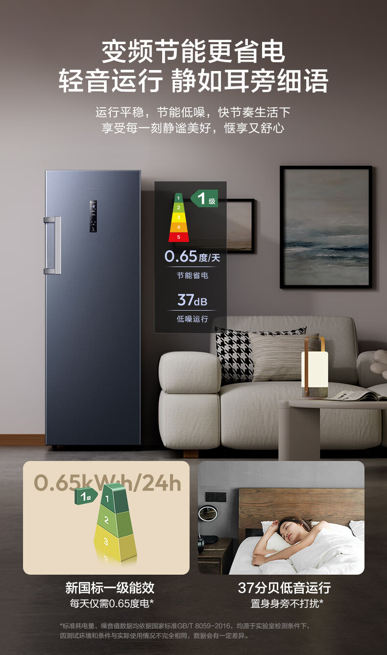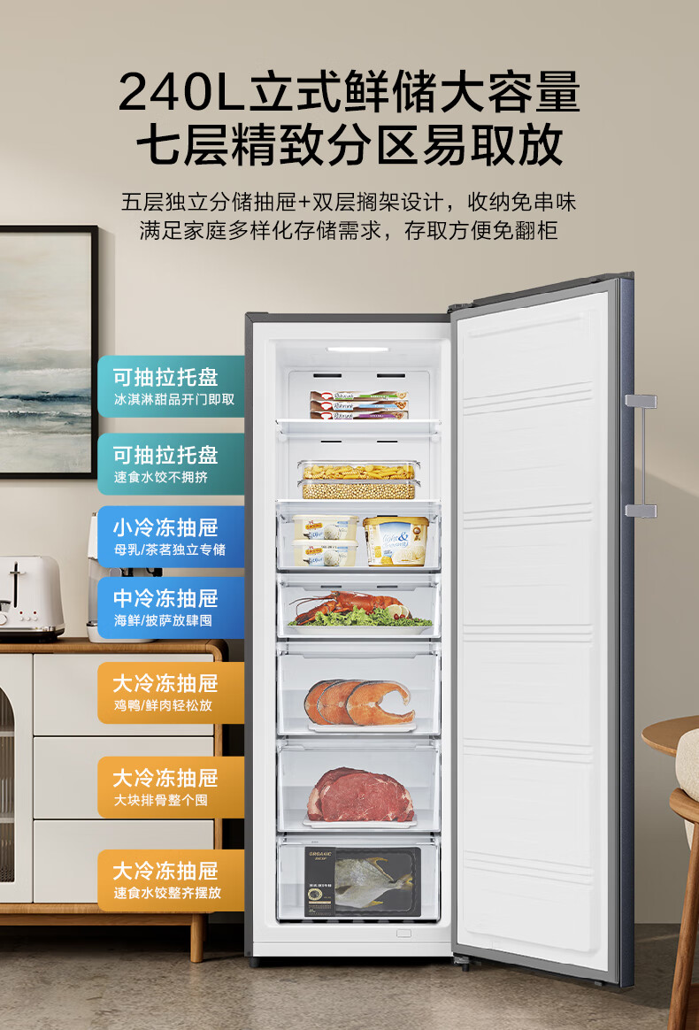 海信(Hisense)240升立式冰柜 变频一级能效风冷无霜冷柜 母婴母乳冷藏冷冻抽屉式单门冰箱BD-240WPVUT