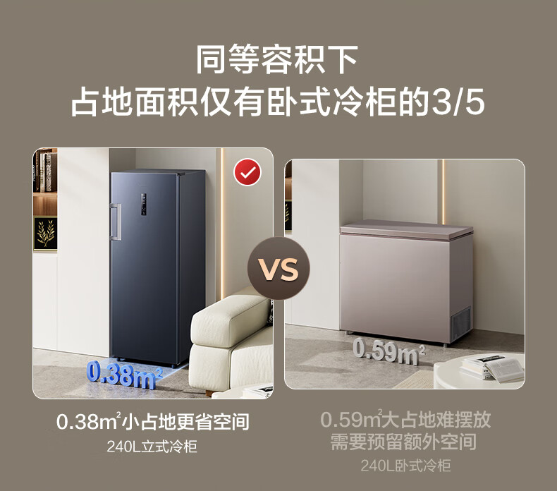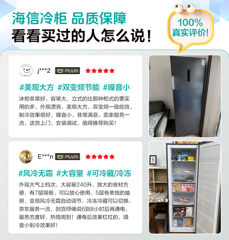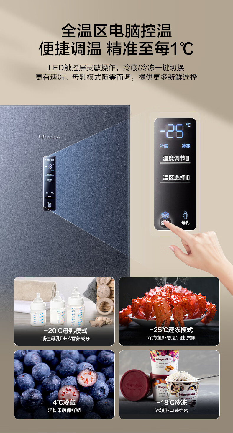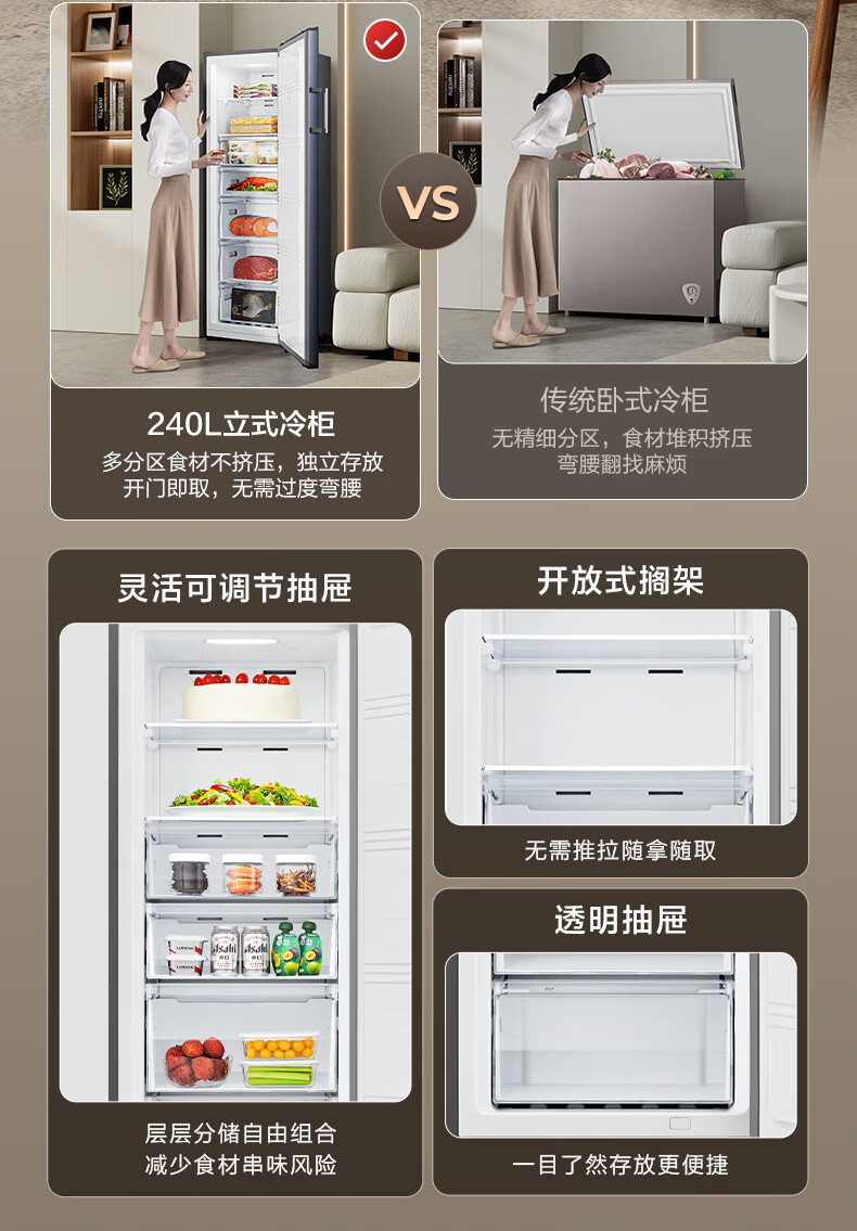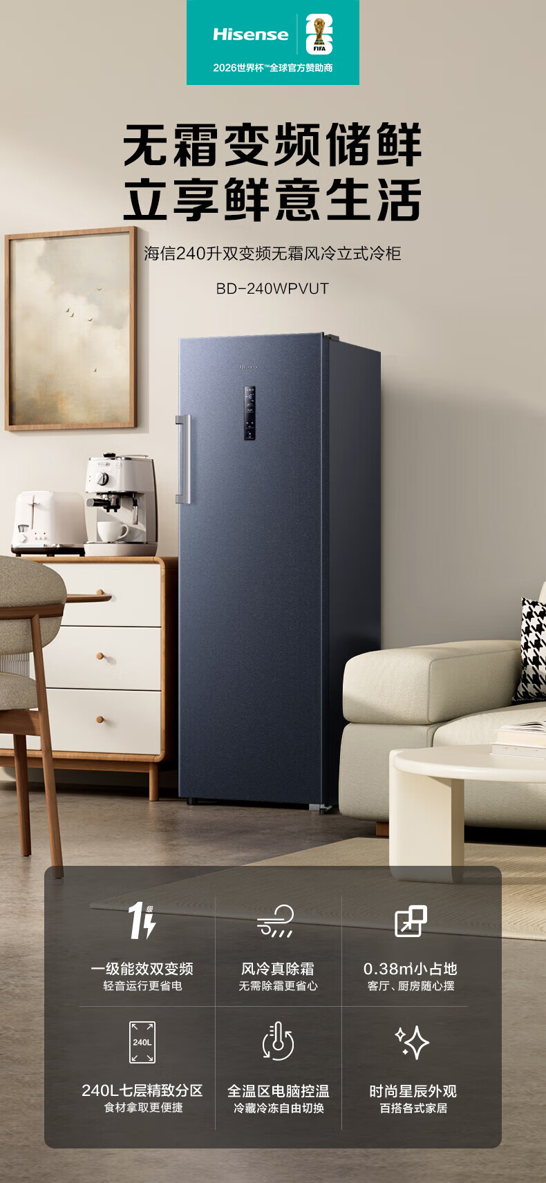 海信(Hisense)240升立式冰柜 变频一级能效风冷无霜冷柜 母婴母乳冷藏冷冻抽屉式单门冰箱BD-240WPVUT