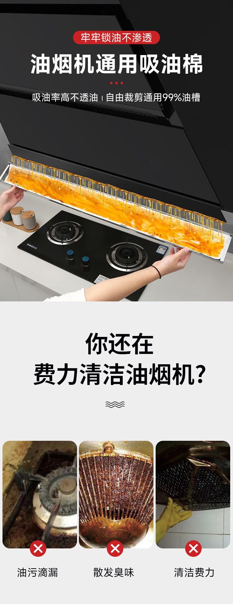 洋臣厨房油烟机吸油棉过滤纸垫侧吸式油烟机油盒油槽吸油棉吸油无纺布 90*10cm【40条装】