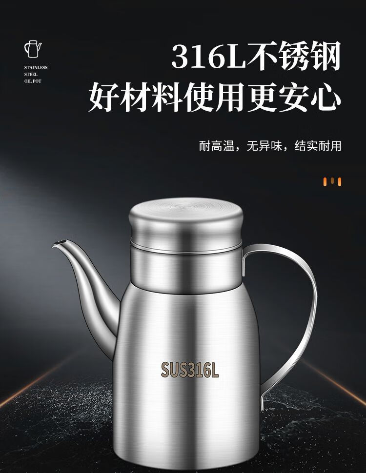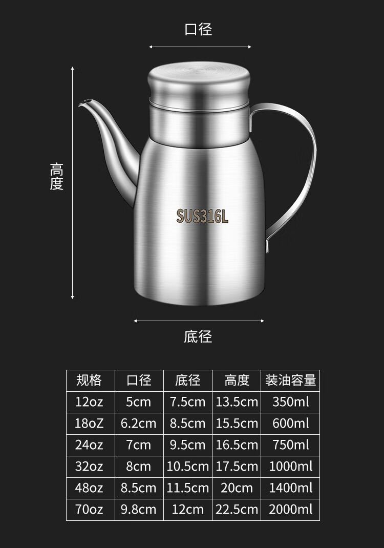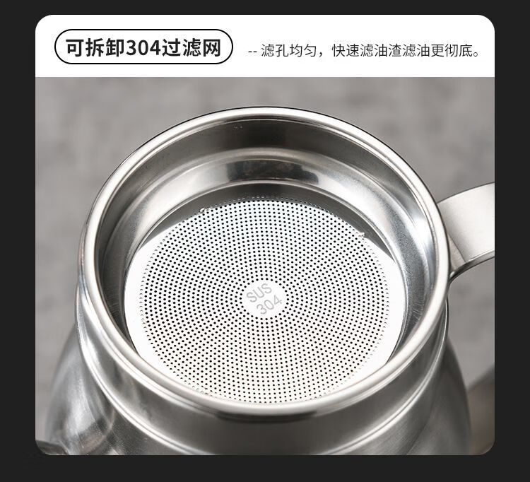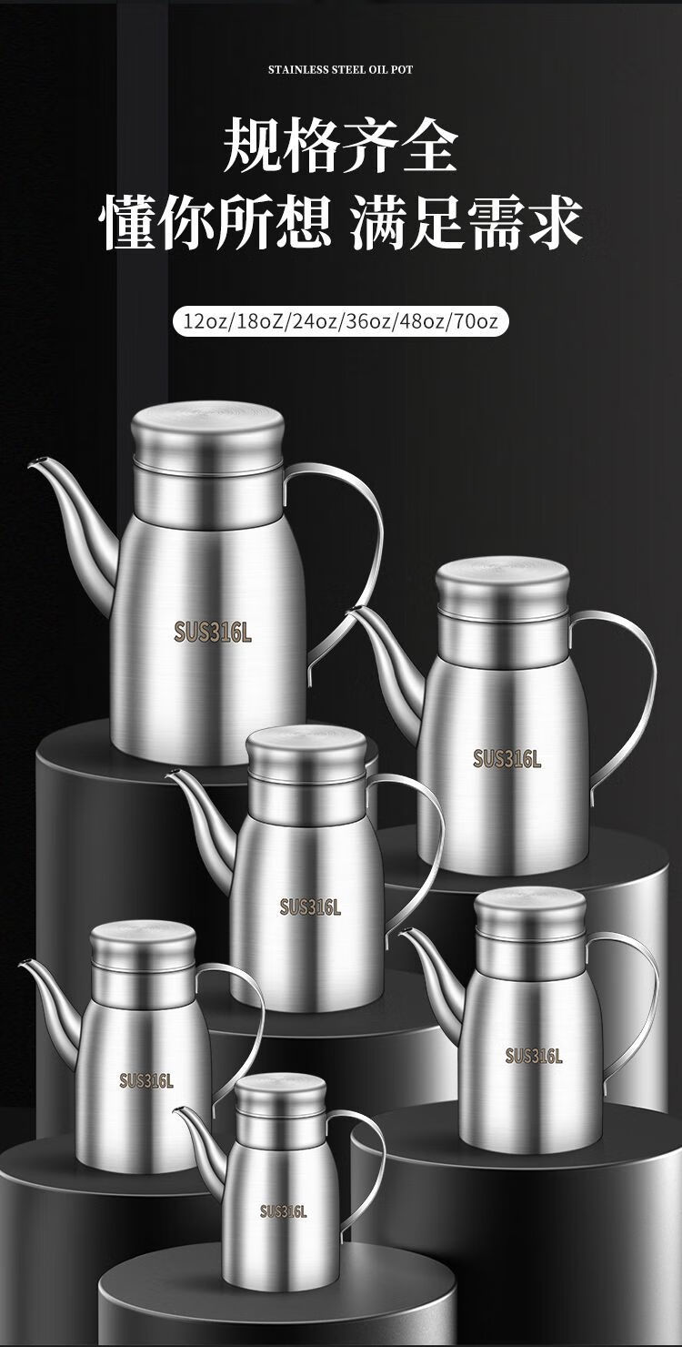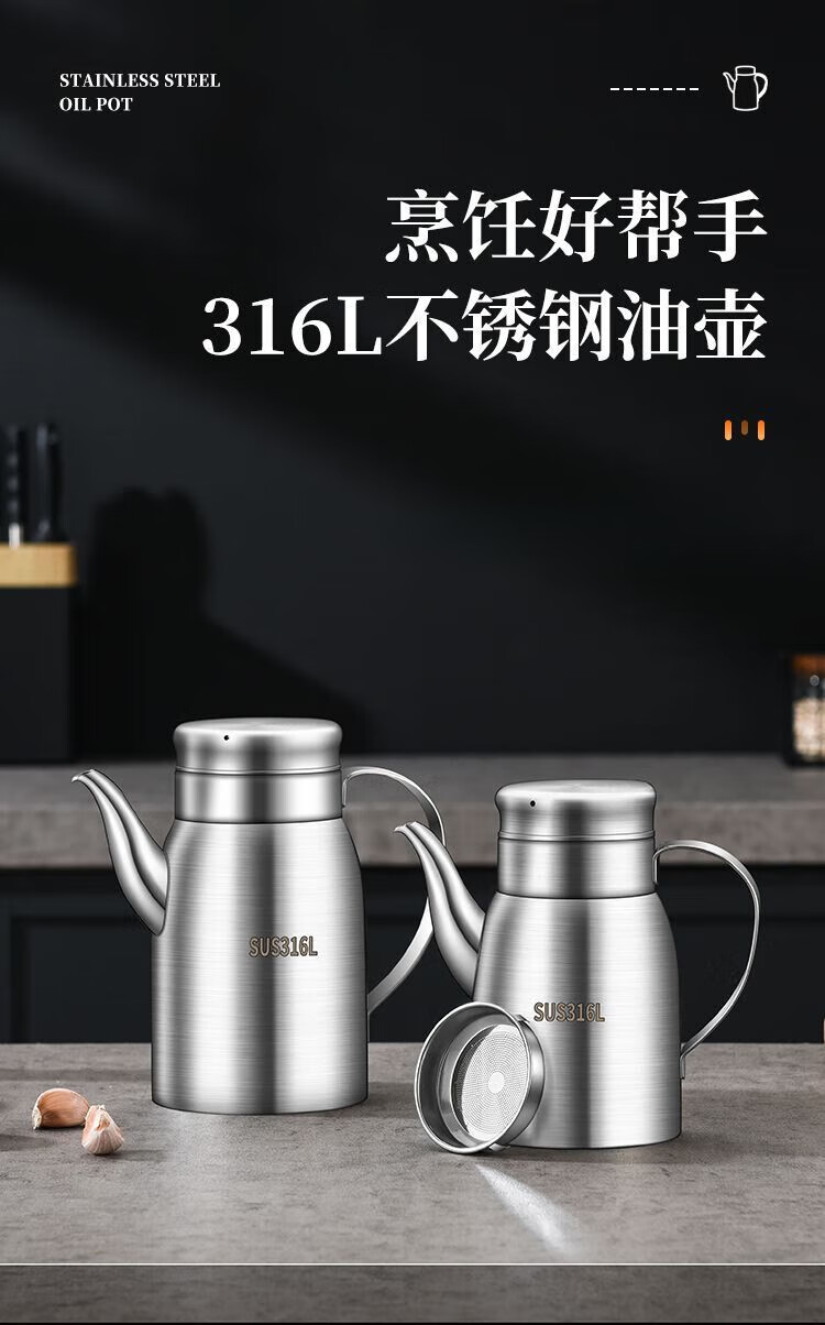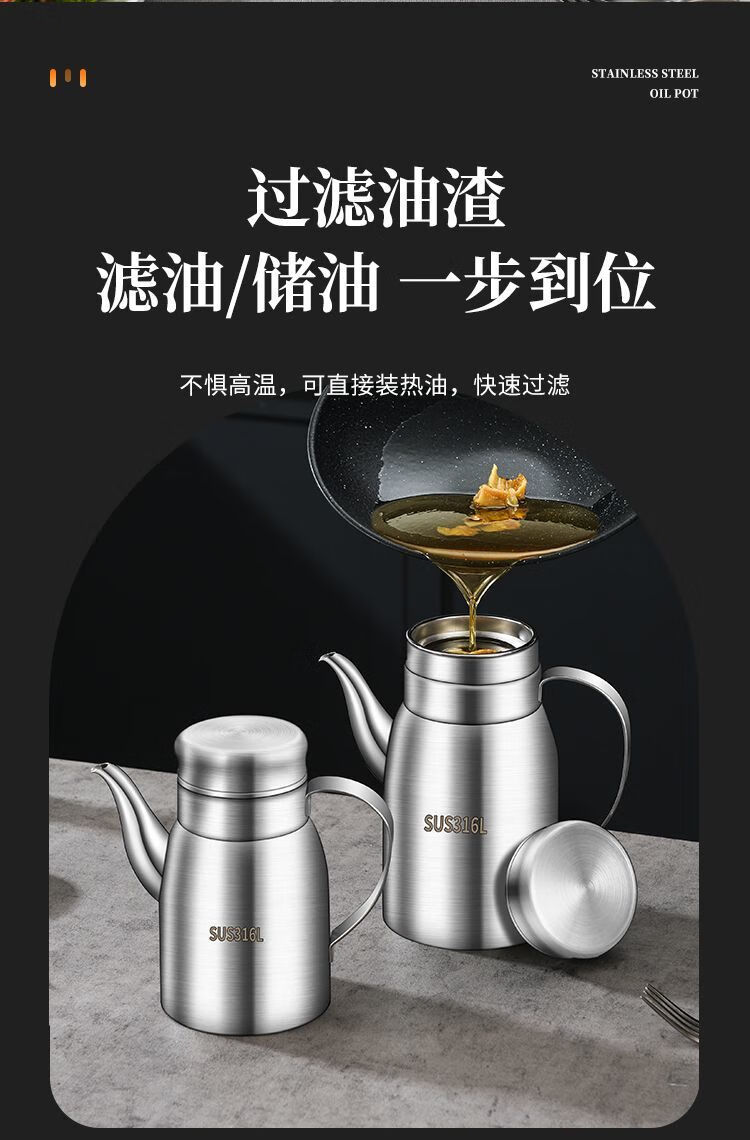 咏夏316不锈钢油壶厨房油罐壶过滤油渣壶装油瓶家用储油漏油沥油神器 316油壶 1000毫升32OZ 带内置过滤网