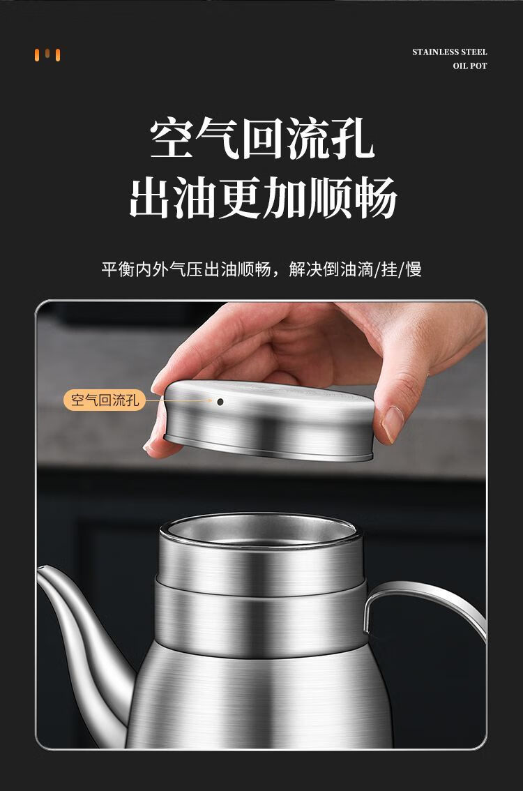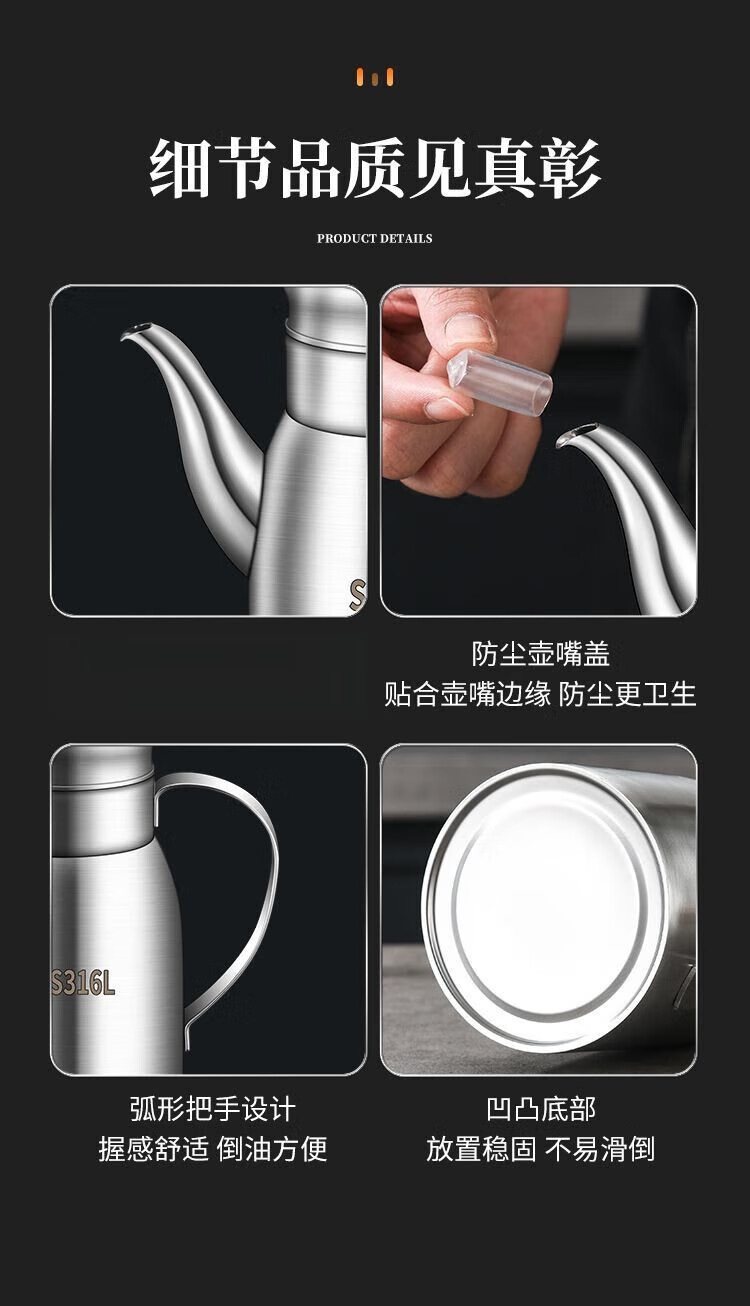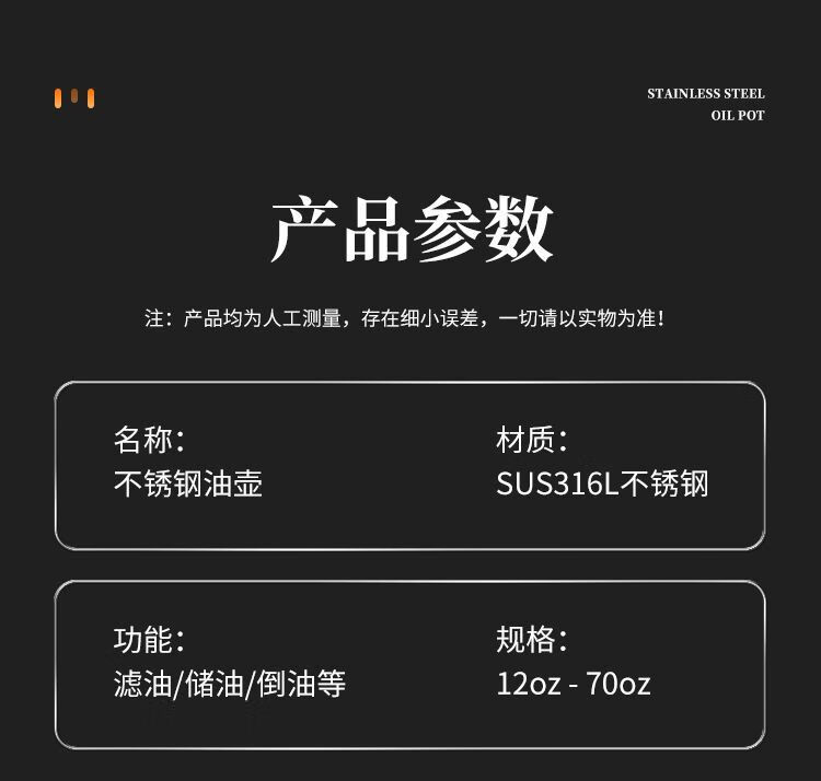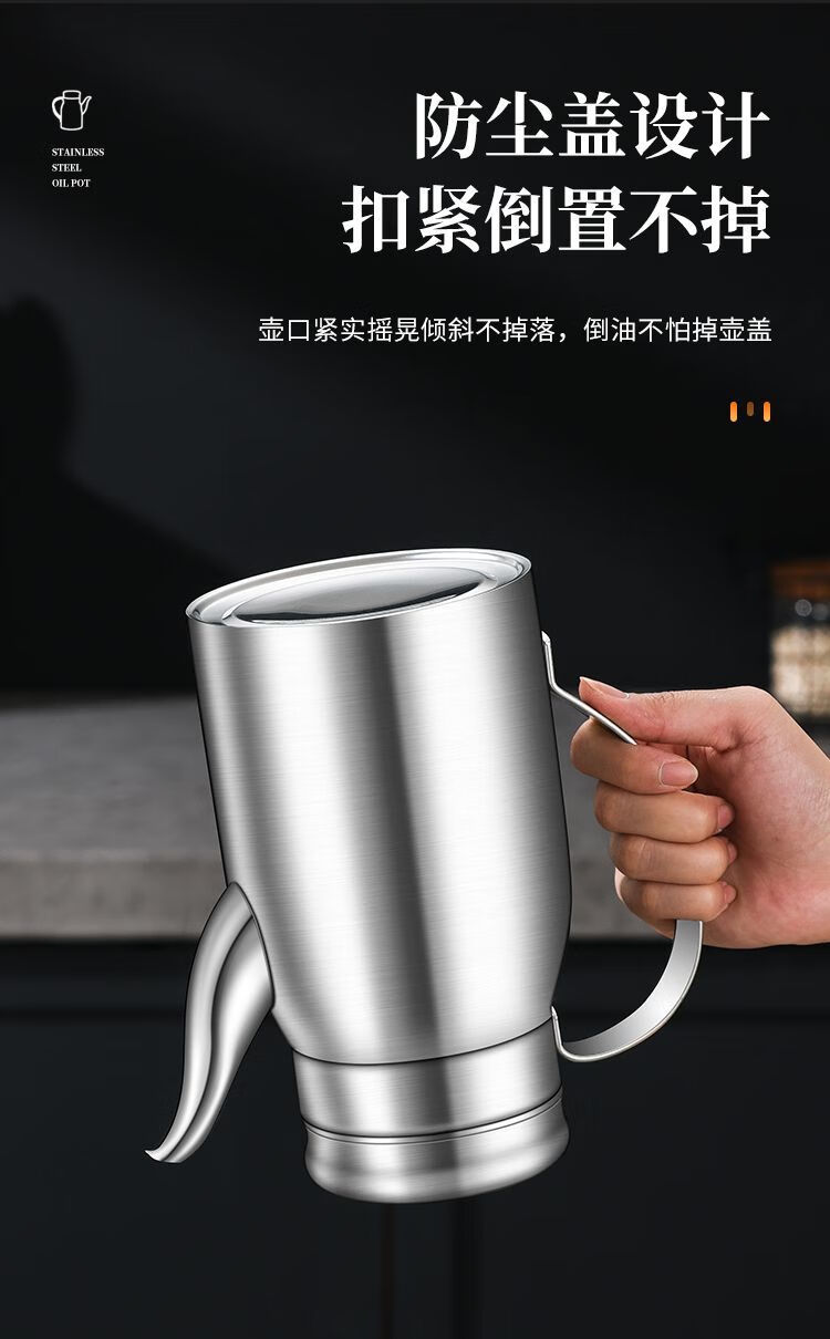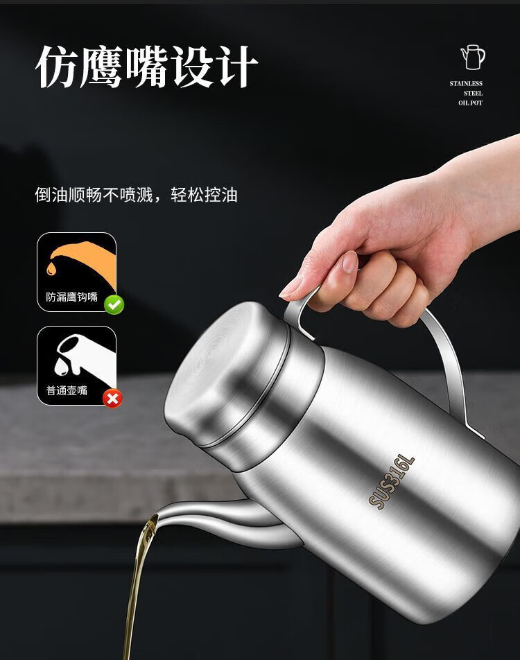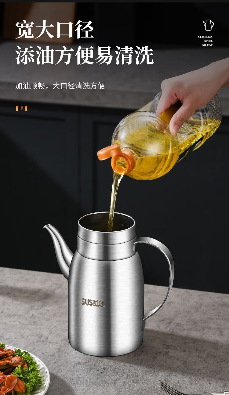 咏夏316不锈钢油壶厨房油罐壶过滤油渣壶装油瓶家用储油漏油沥油神器 316油壶 1000毫升32OZ 带内置过滤网