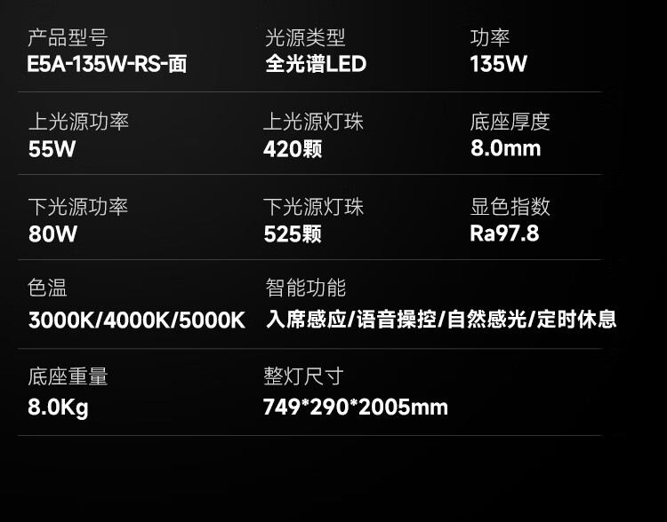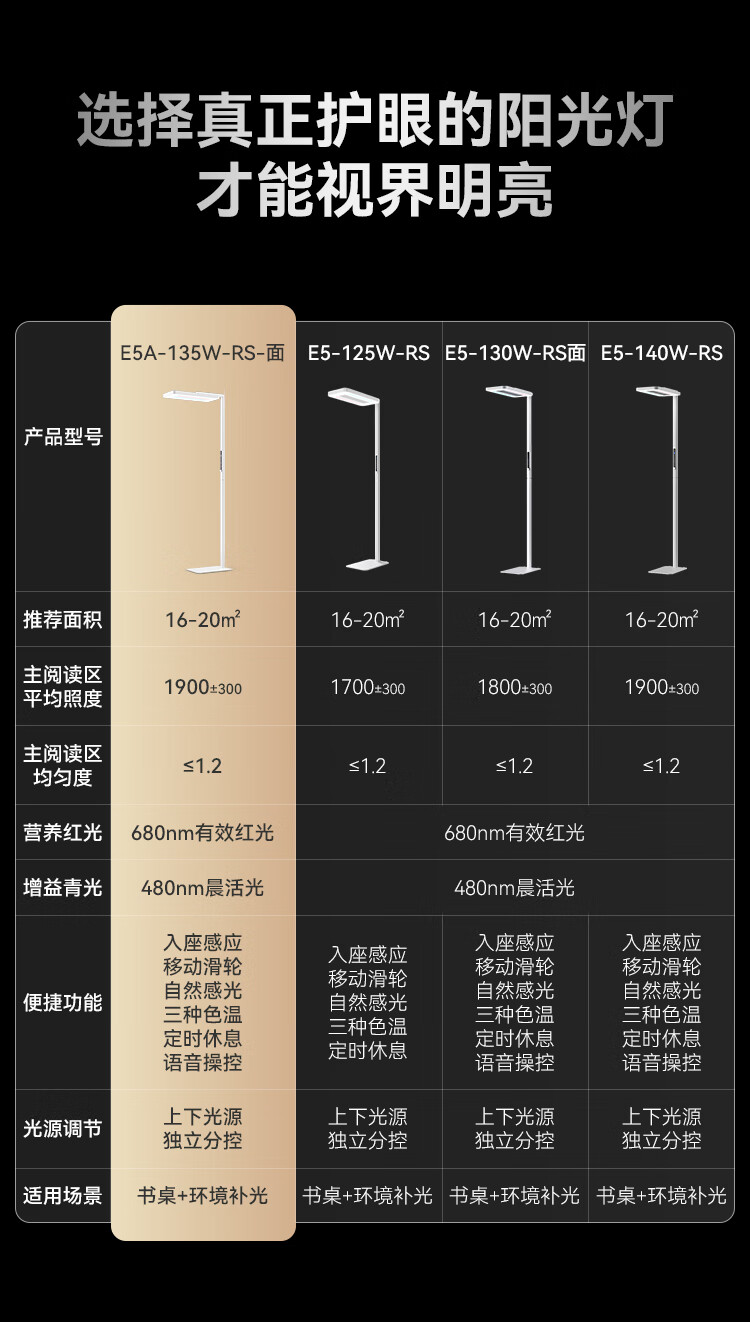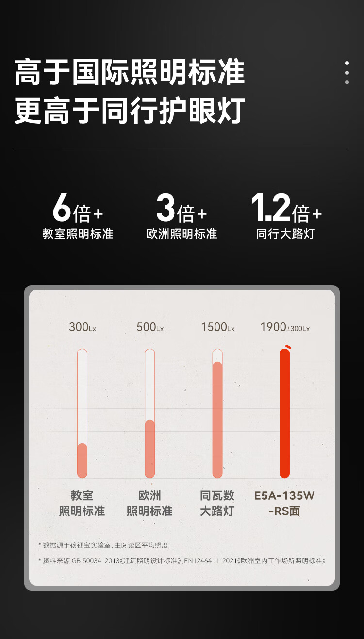 孩视宝大路灯立式护眼灯学生学习智能台灯全光谱护眼落地灯 E5A-135W-RS
