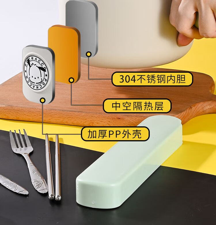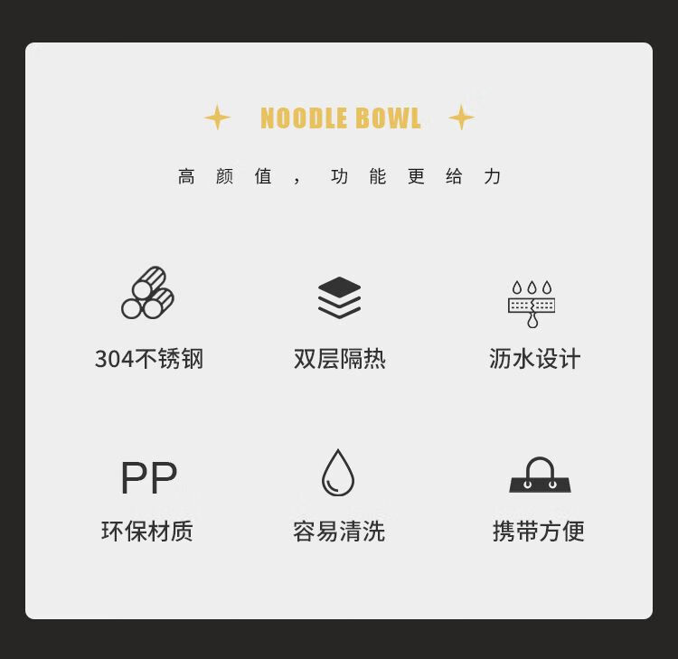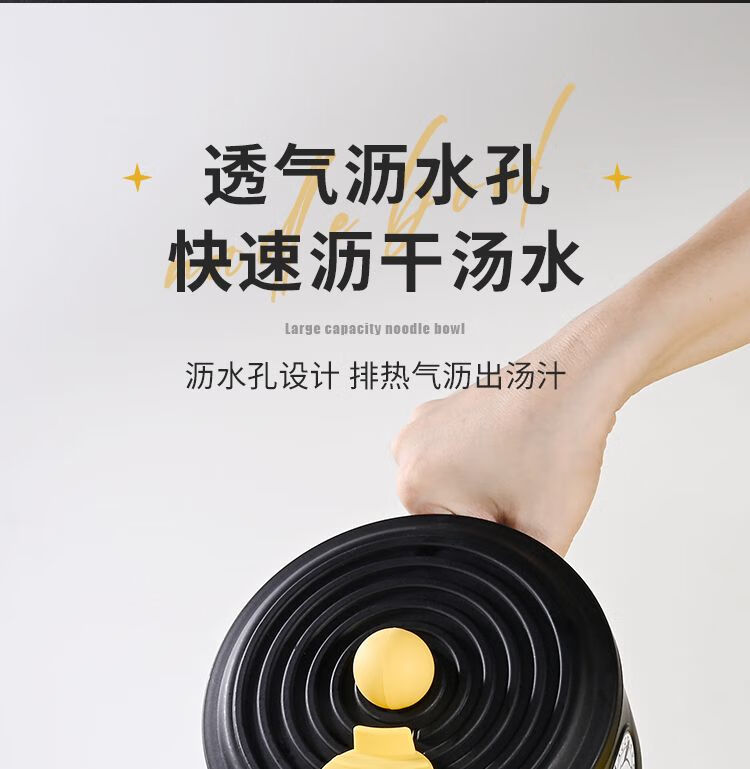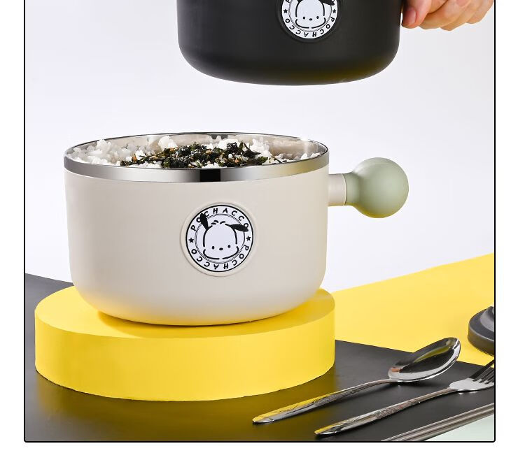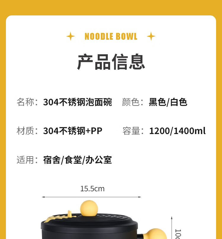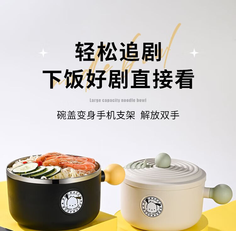 DEATKN德国304不锈钢宿舍泡面碗带盖大容量可沥水ins风学生饭盒日式饭碗 黑环球帕恰狗1200ML中号304 泡面碗+沥水防尘盖