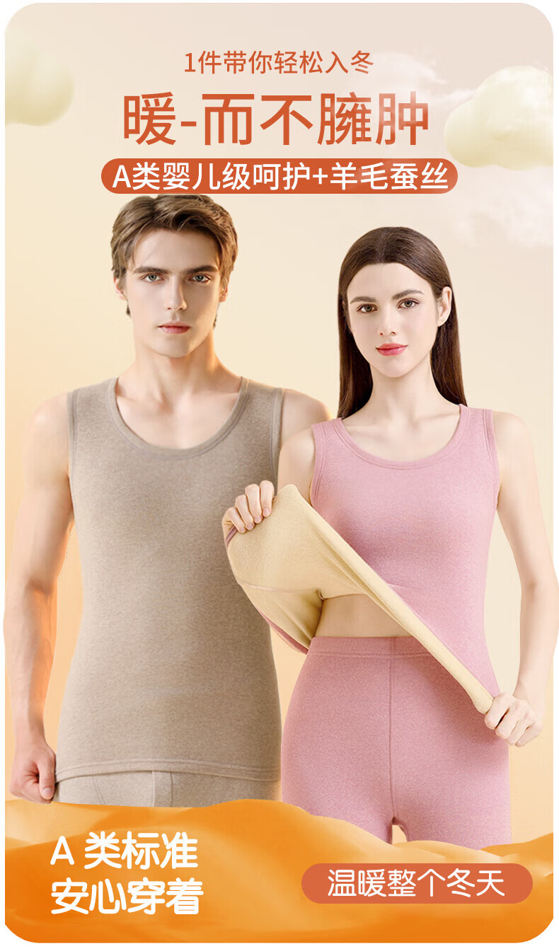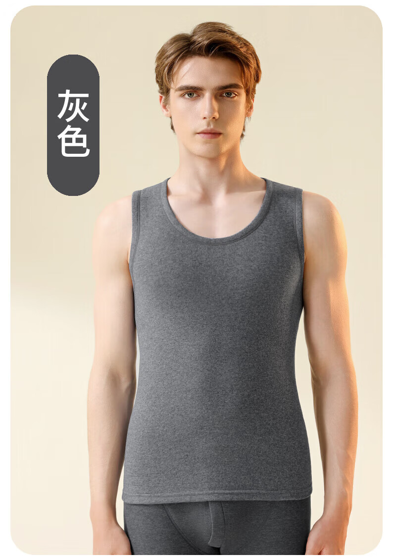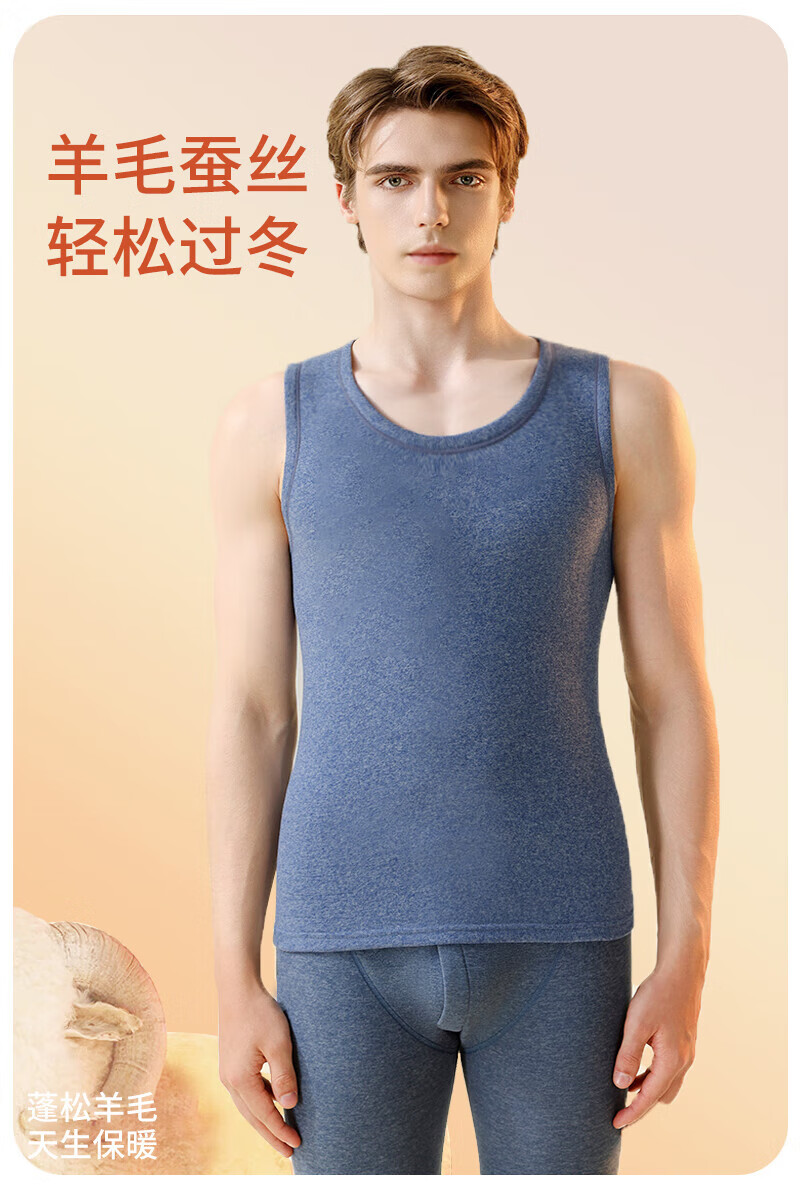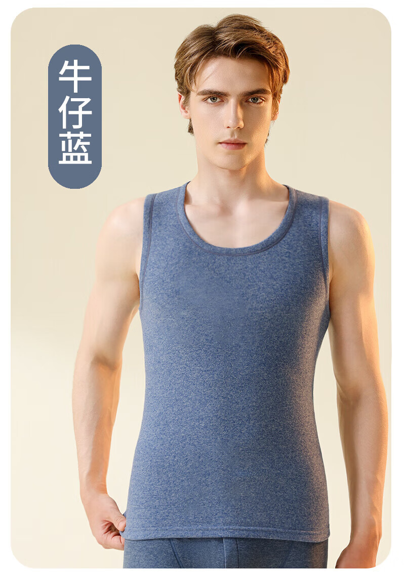 宜而爽【A类】羊毛保暖背心双面绒纯色情侣款圆领高弹力打底衫秋冬 【男款】牛仔蓝 3XL