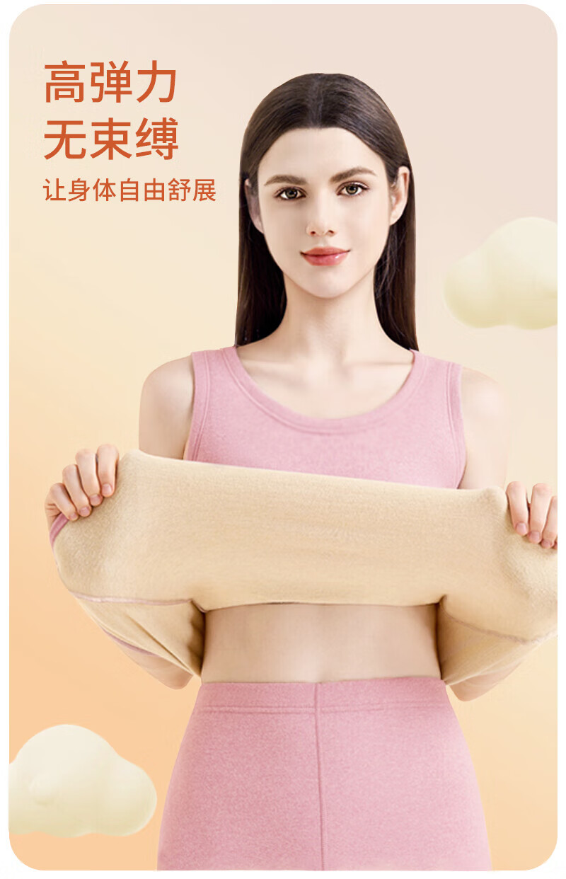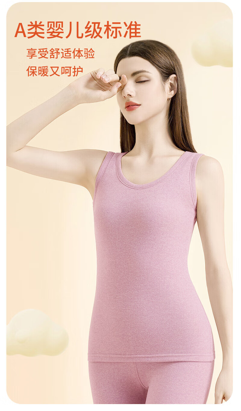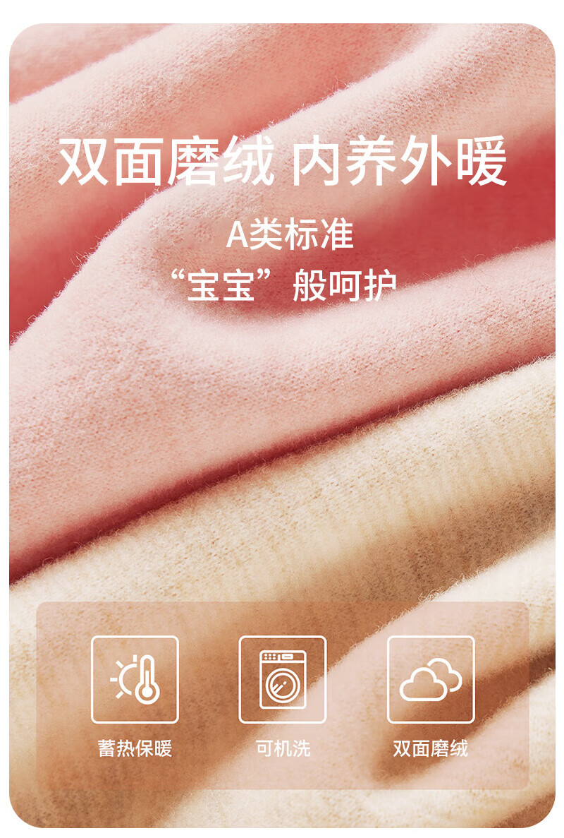 宜而爽【A类】羊毛保暖背心双面绒纯色情侣款圆领高弹力打底衫秋冬 【男款】牛仔蓝 3XL