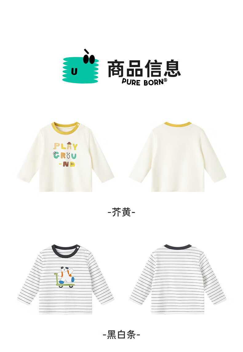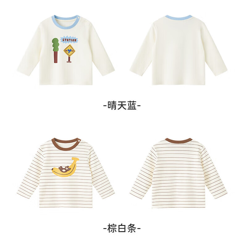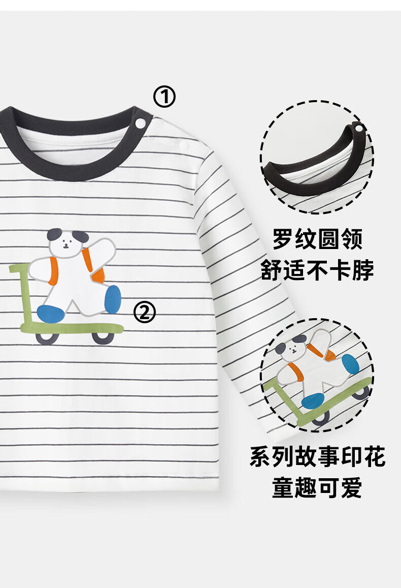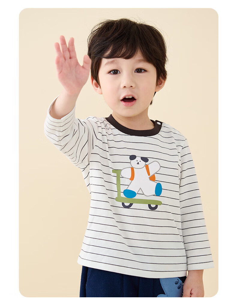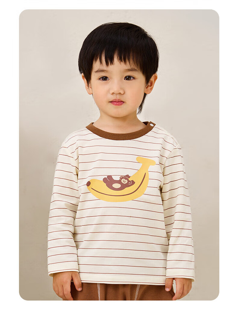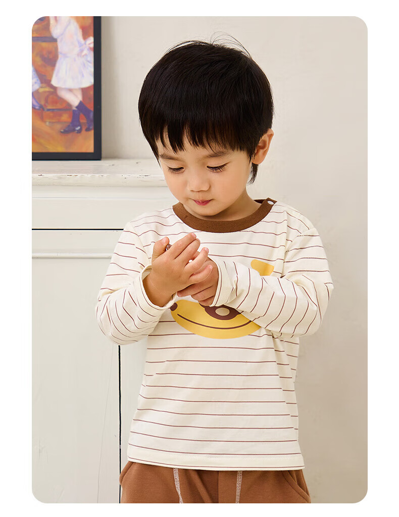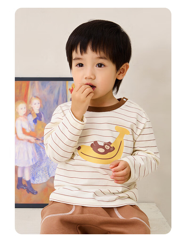 博睿恩(Pureborn)男儿童T恤春秋新款宝宝打底衫纯棉透气长袖上衣休闲百搭 棕白条 90