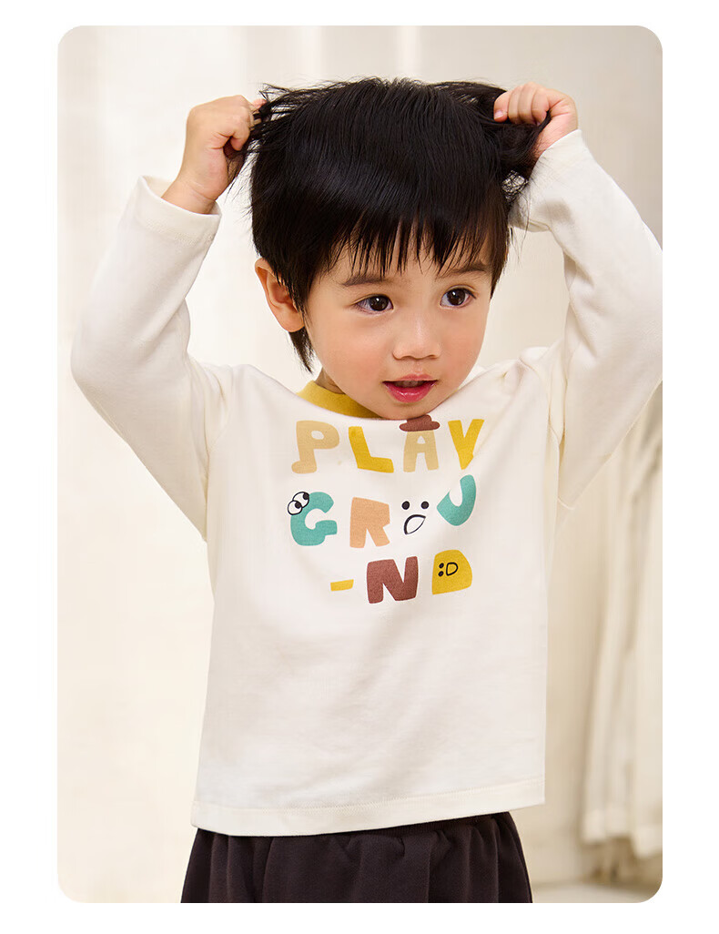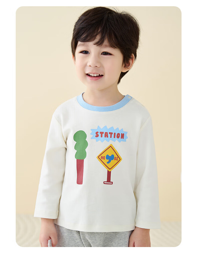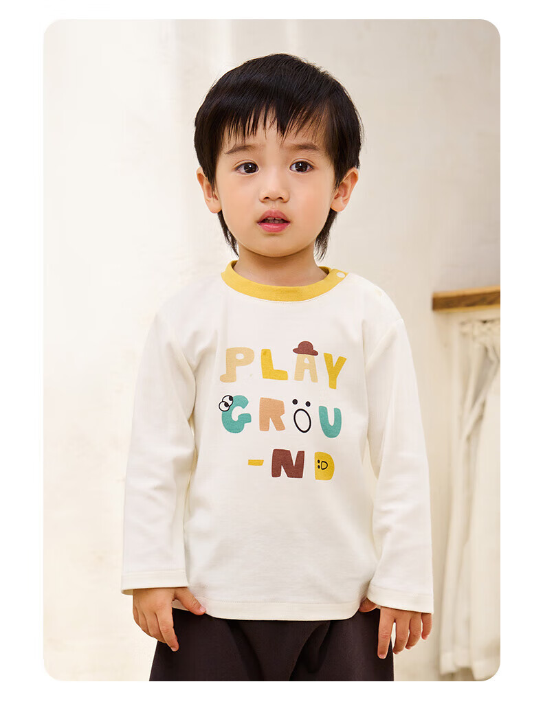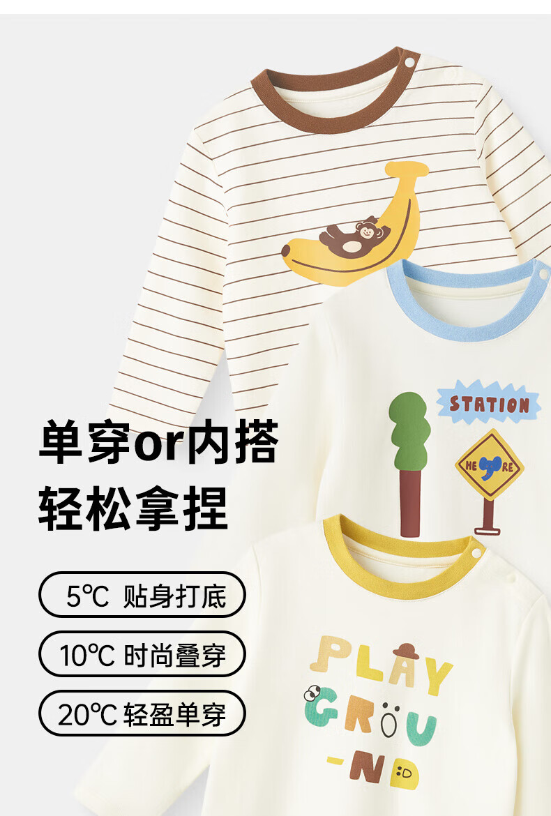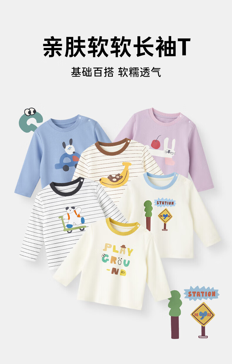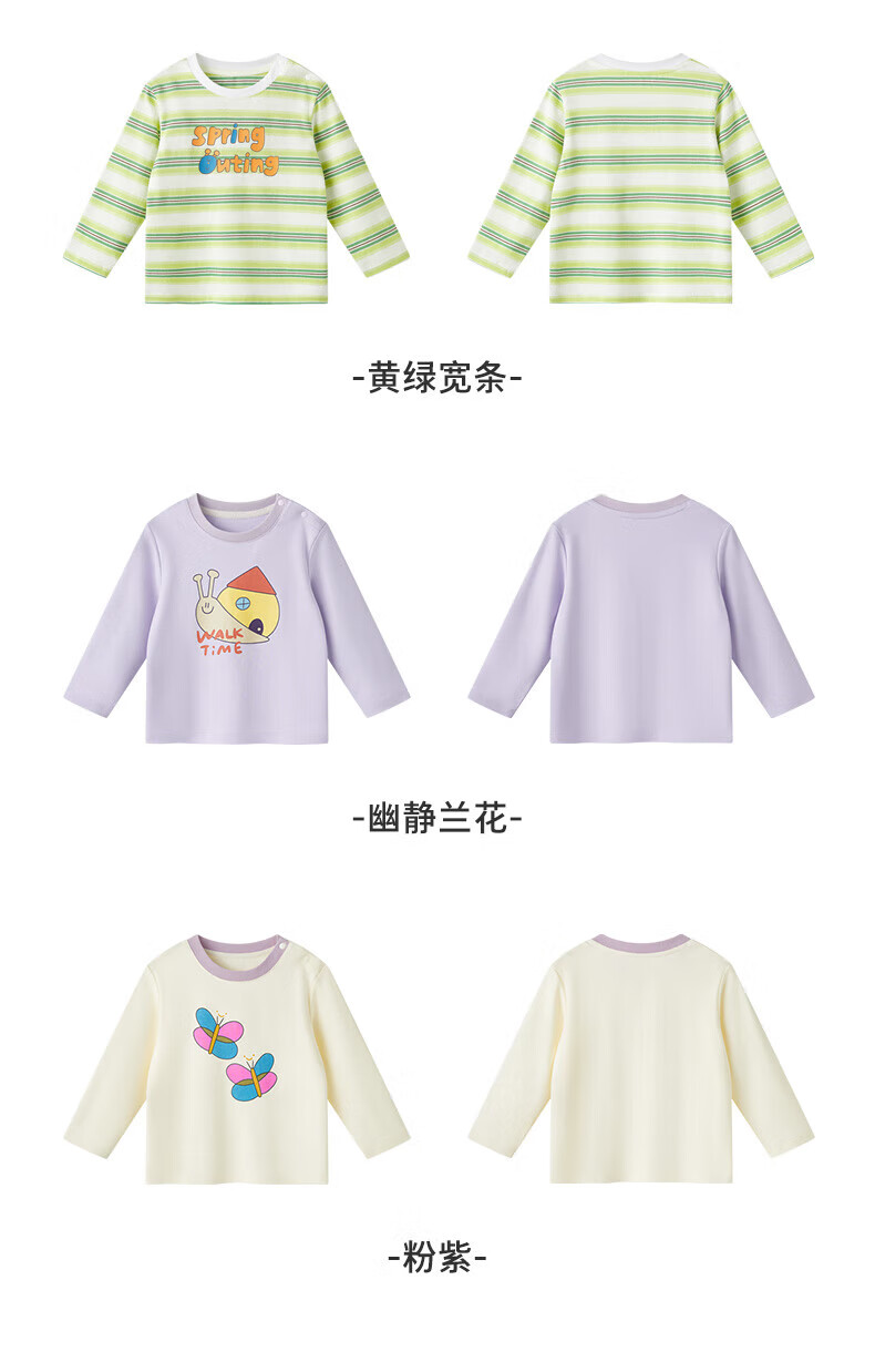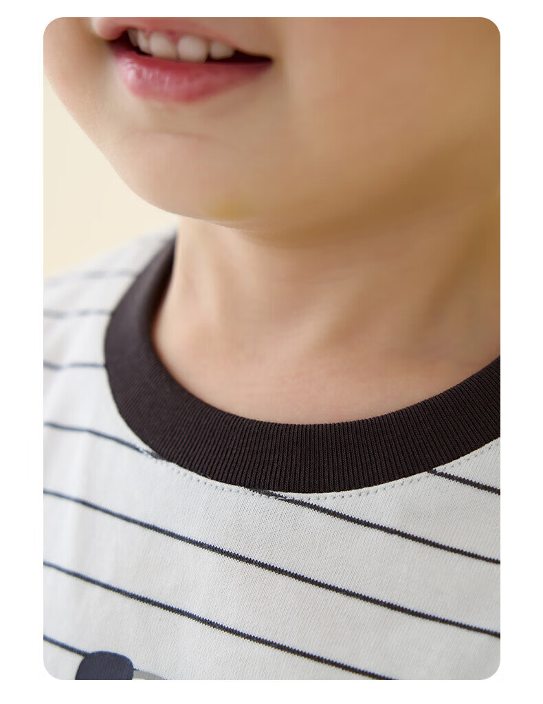 博睿恩(Pureborn)男儿童T恤春秋新款宝宝打底衫纯棉透气长袖上衣休闲百搭 棕白条 90