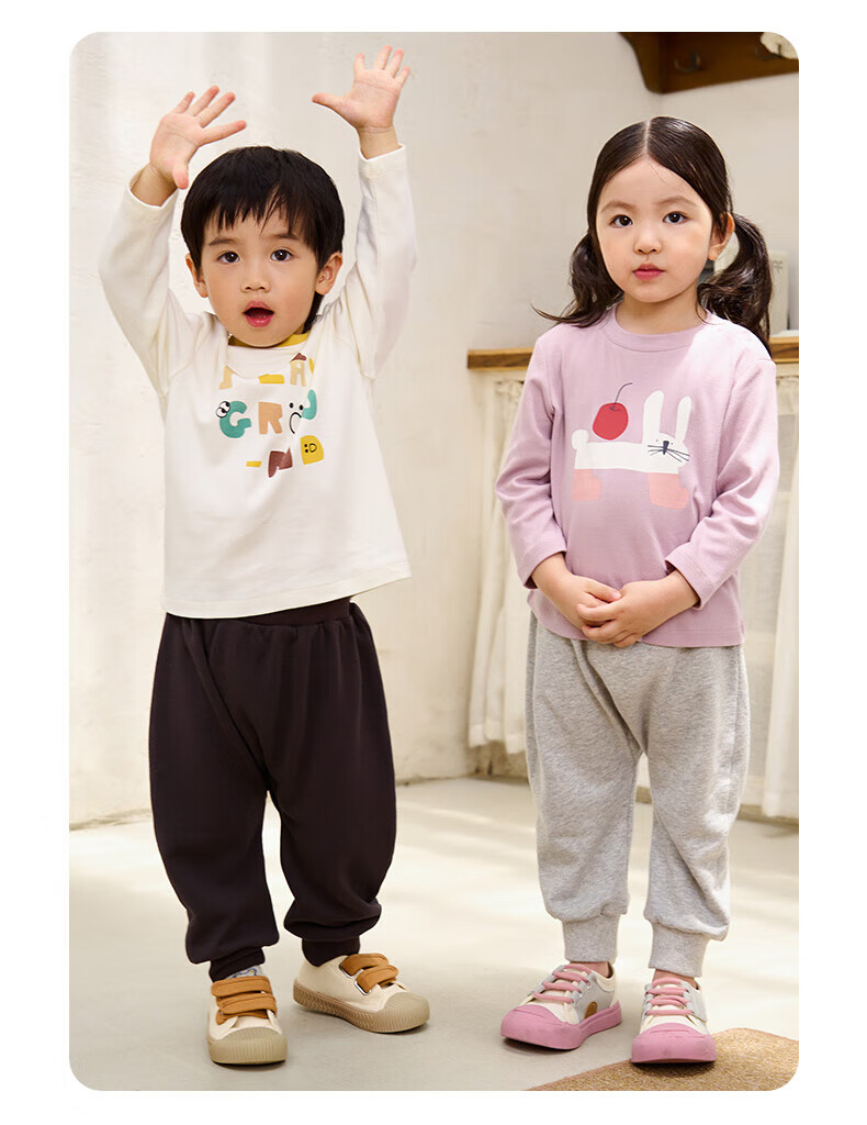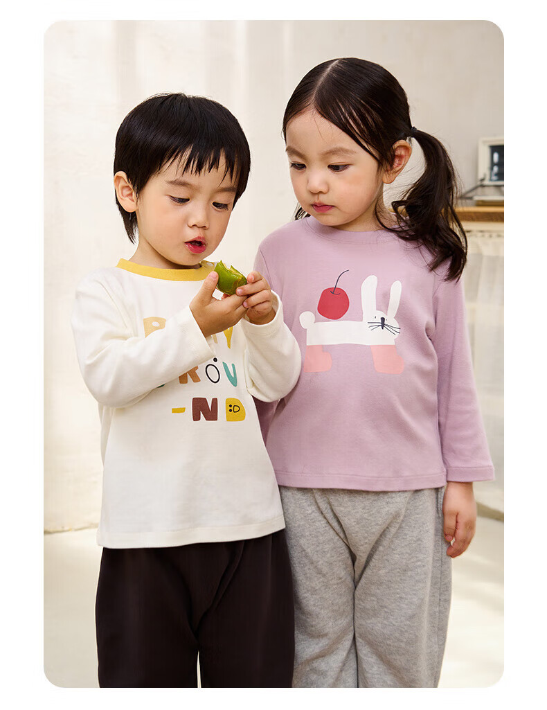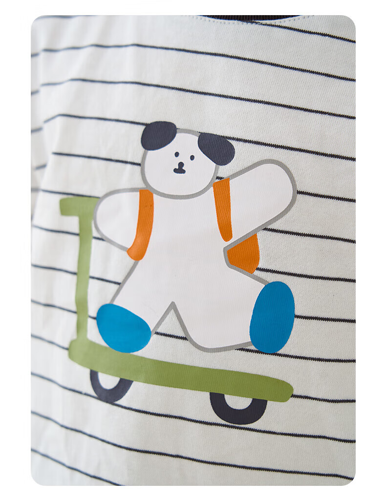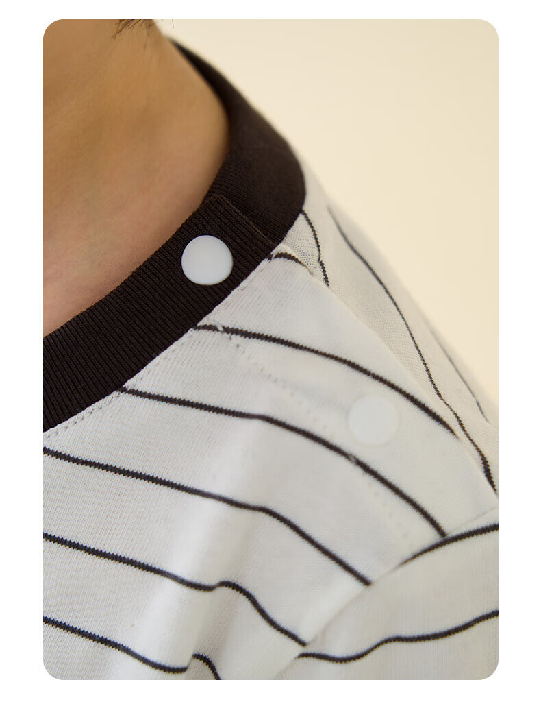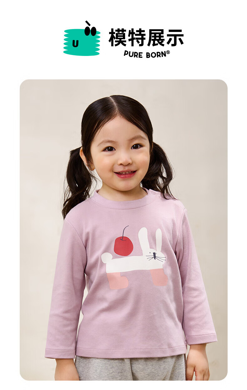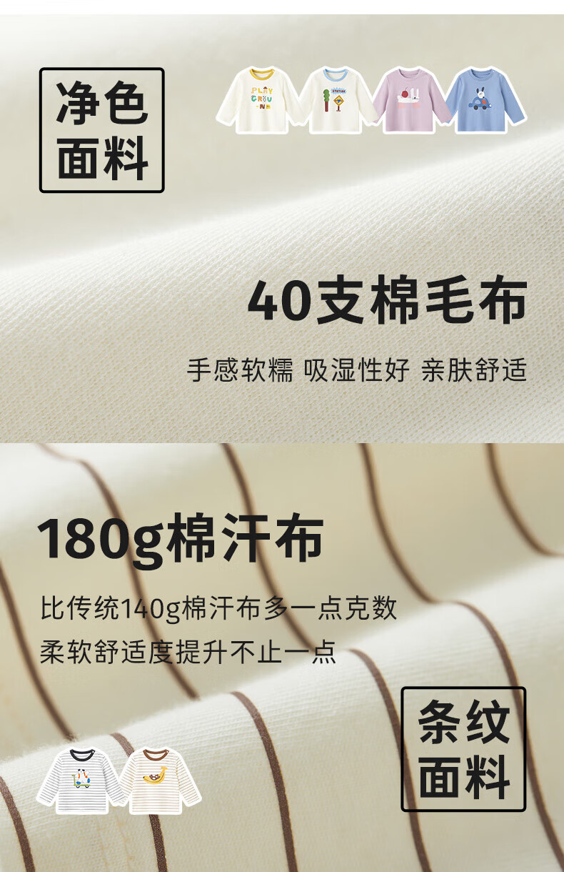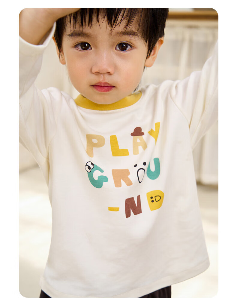 博睿恩(Pureborn)男儿童T恤春秋新款宝宝打底衫纯棉透气长袖上衣休闲百搭 棕白条 90