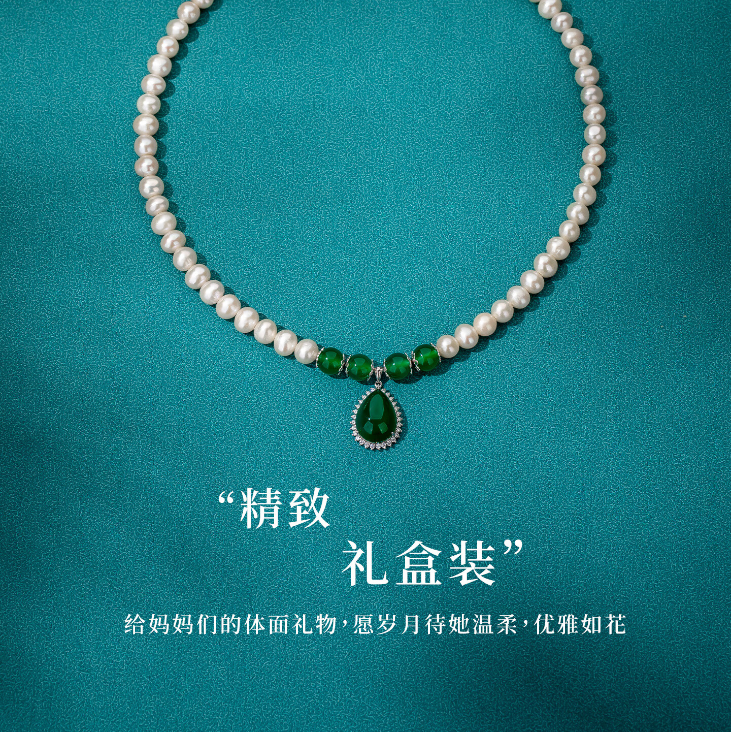 查克拉天然淡水珍珠项链妈妈款生日中秋礼物送母亲银项链女玉髓吊坠 如意珍珠项链-延长款