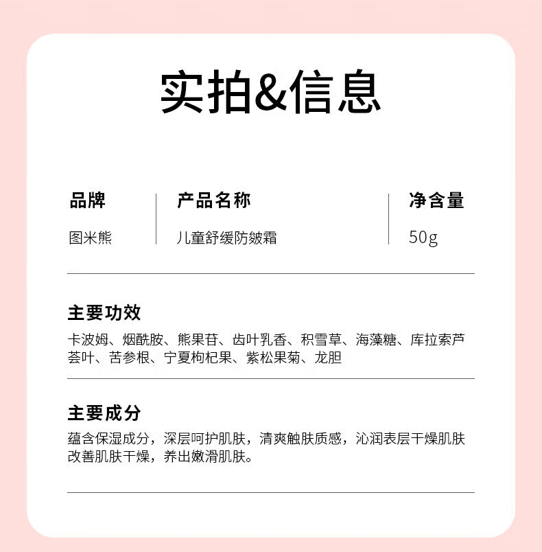图米熊宝宝保湿霜防秋冬面霜 图米熊防皴霜-50g 黄色