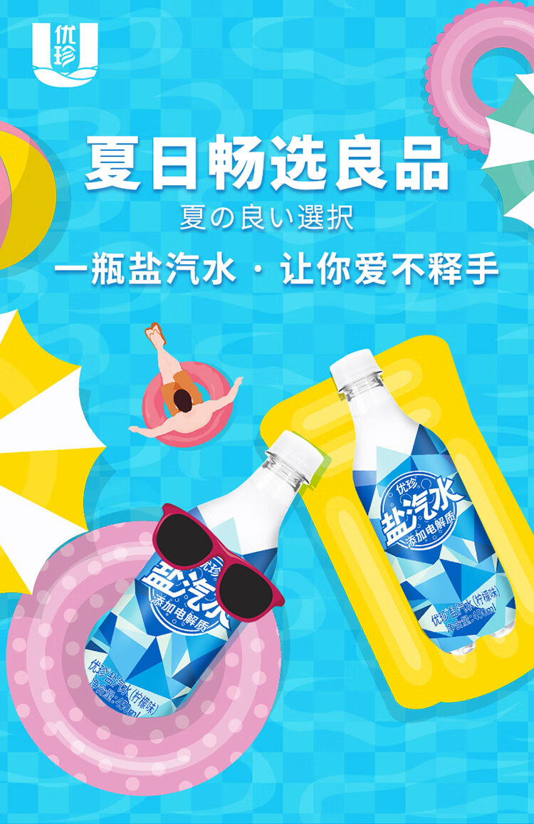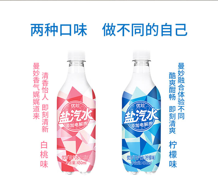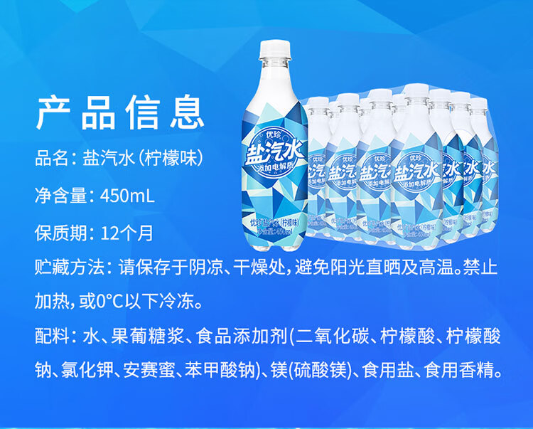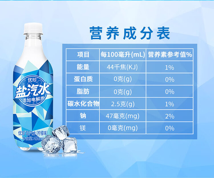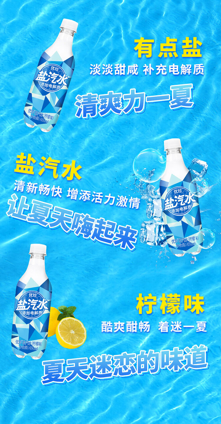 优珍盐汽水 柠檬味碳酸饮料 含气带盐清爽解渴 450ml*24瓶 塑膜量贩装