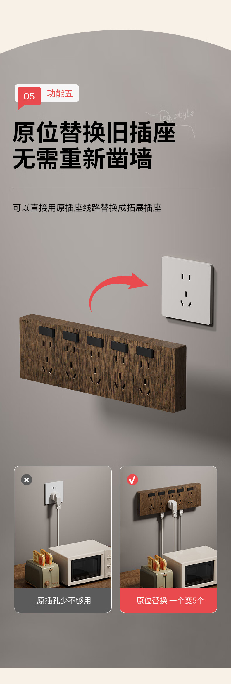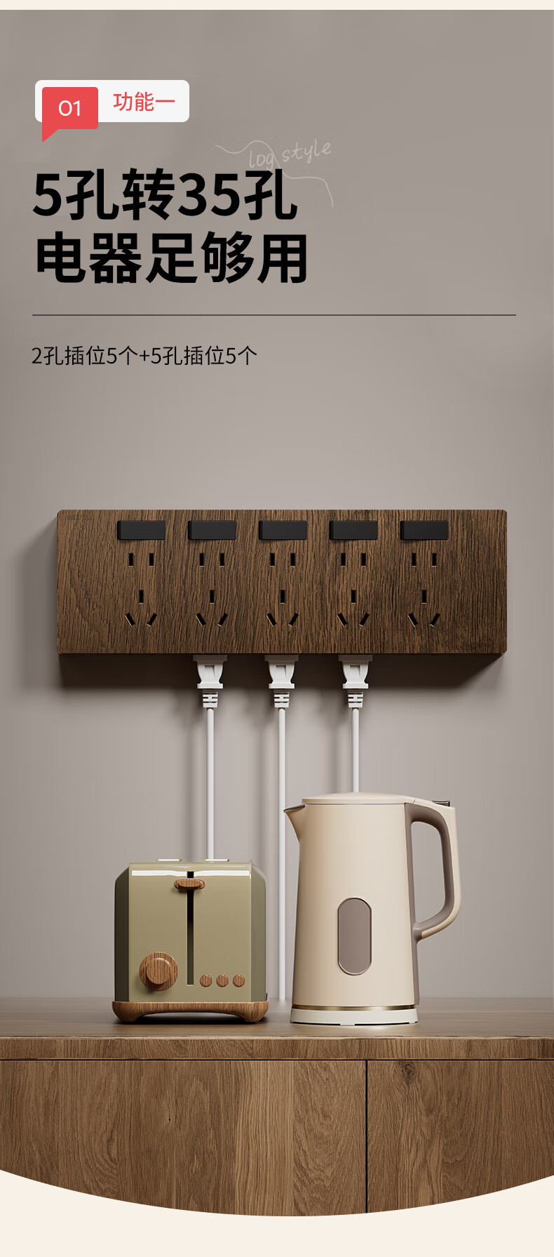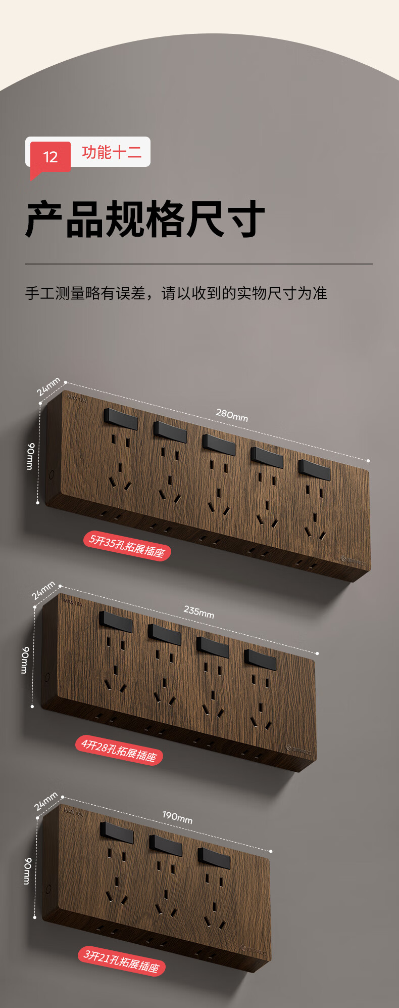 国际电工拓展插座86型墙面固定原位替换胡桃木纹扩展面板多孔位厨房转换器 【一开14孔+usb】86型即插即用