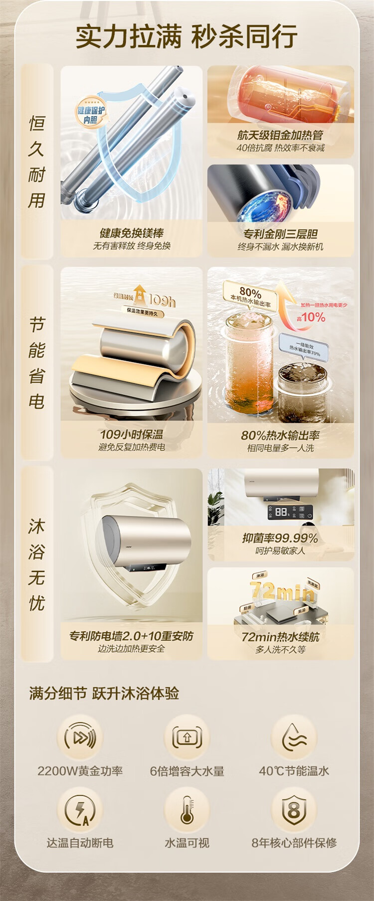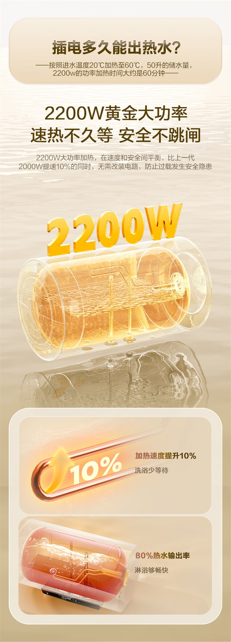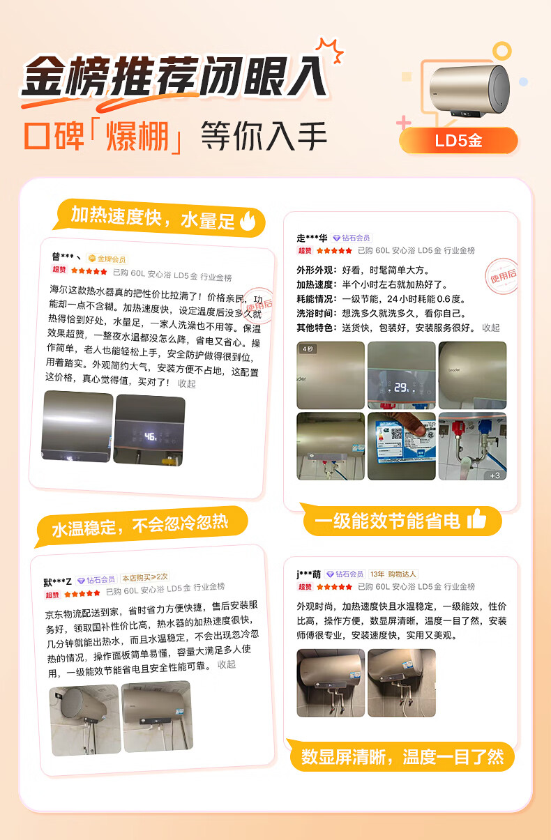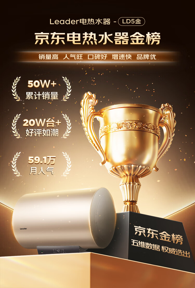 海尔出品统帅 电热水器50升 2200W 一级能效家储水式国家补贴20%以旧换新安全节能LEC5001-LD5金