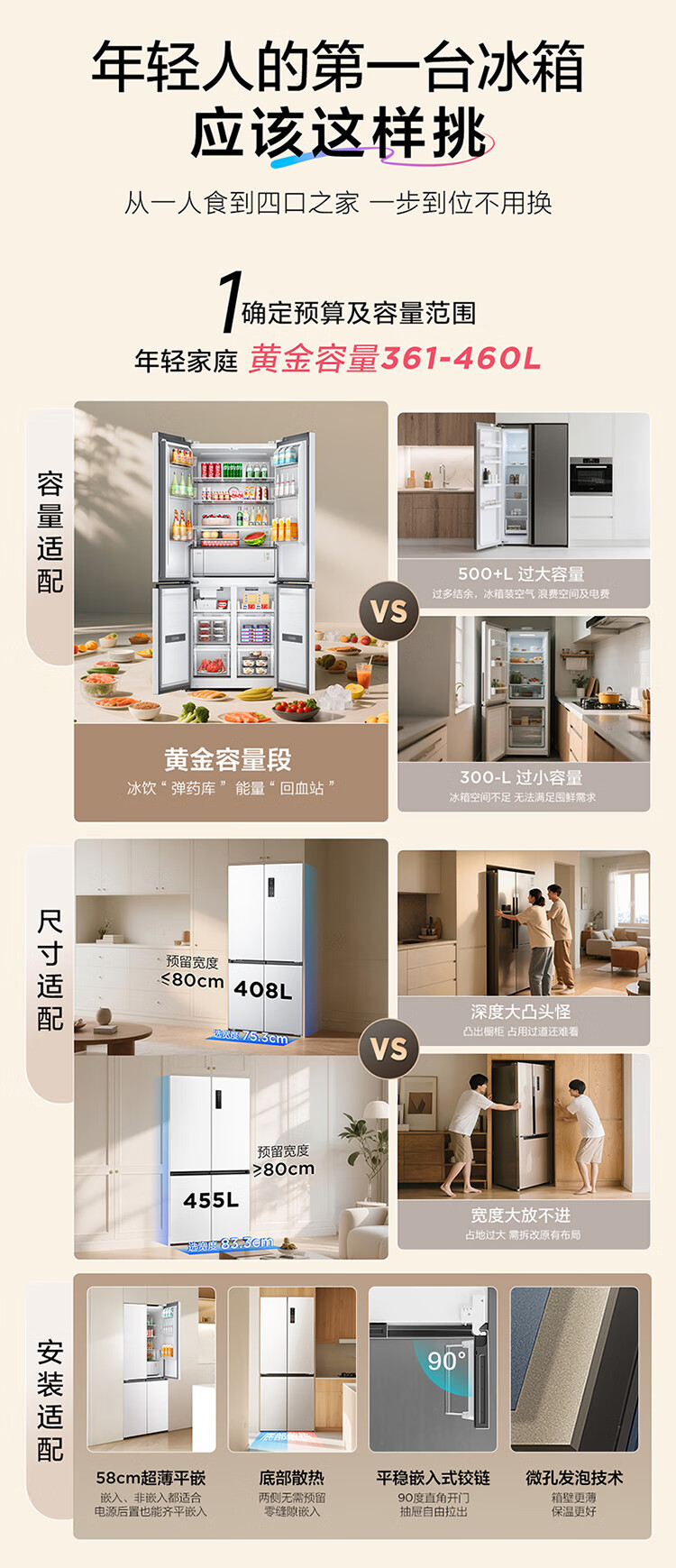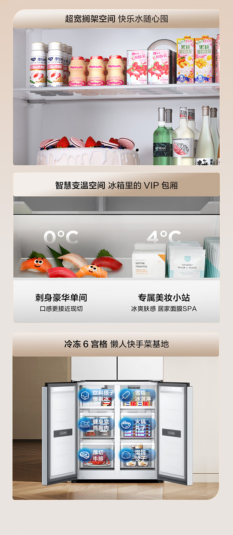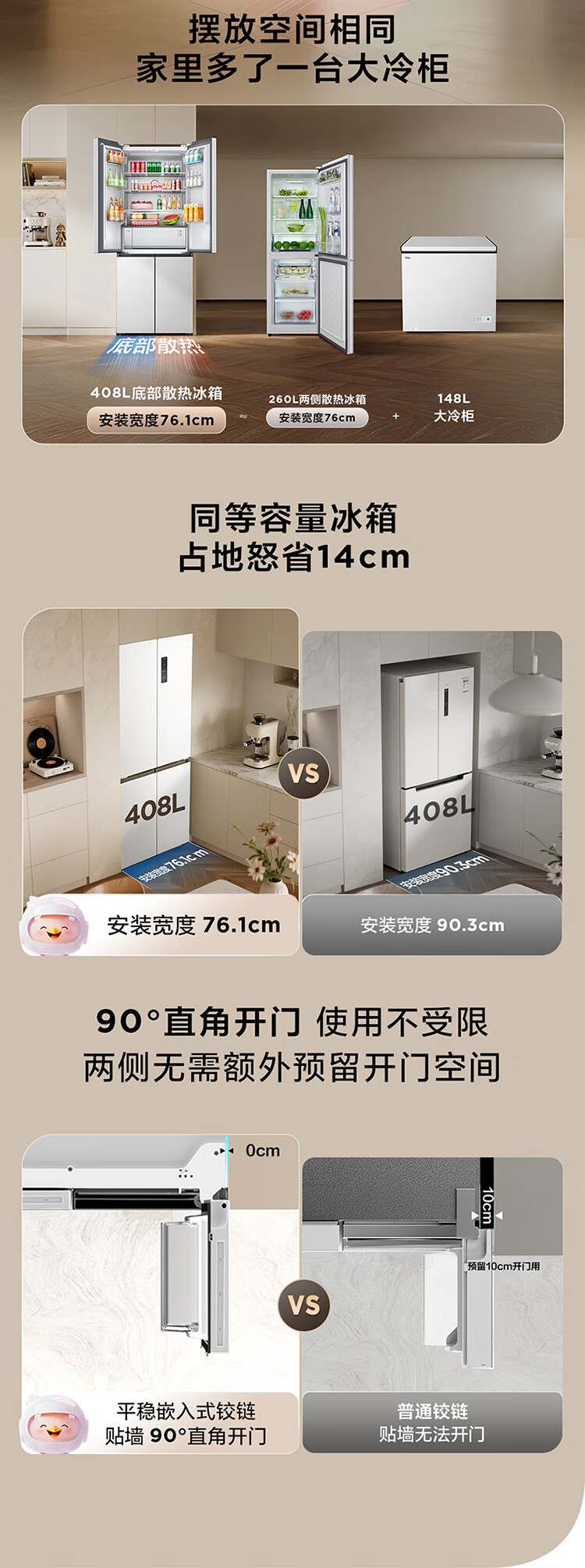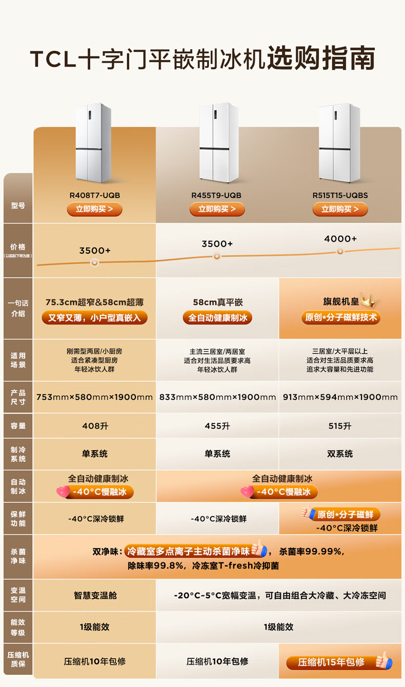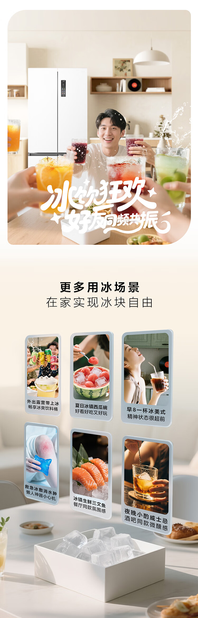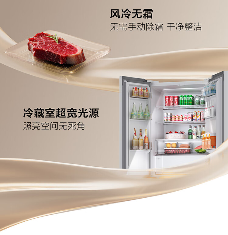 TCL冷布丁408升十字四开门超窄超薄小户型平嵌全自动制冰慢融冰家用冰箱一级能效国家补贴R408T7-UQB