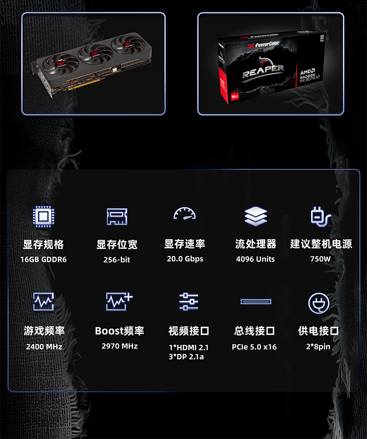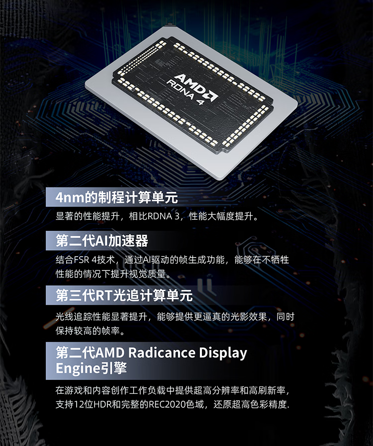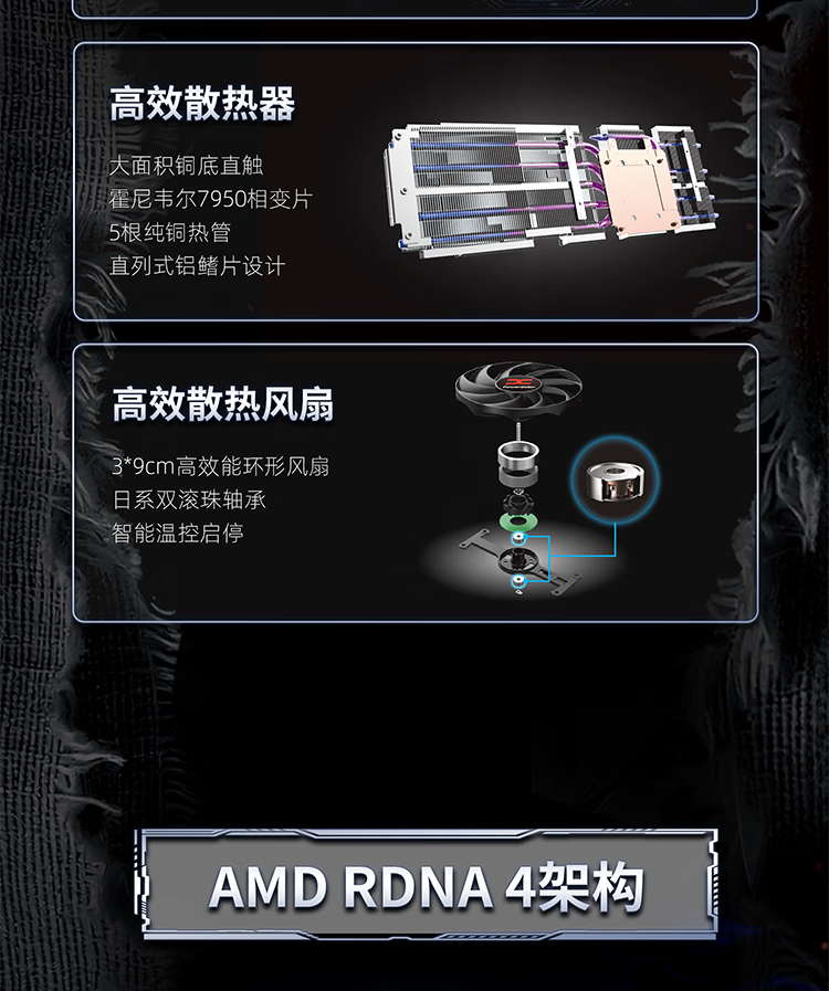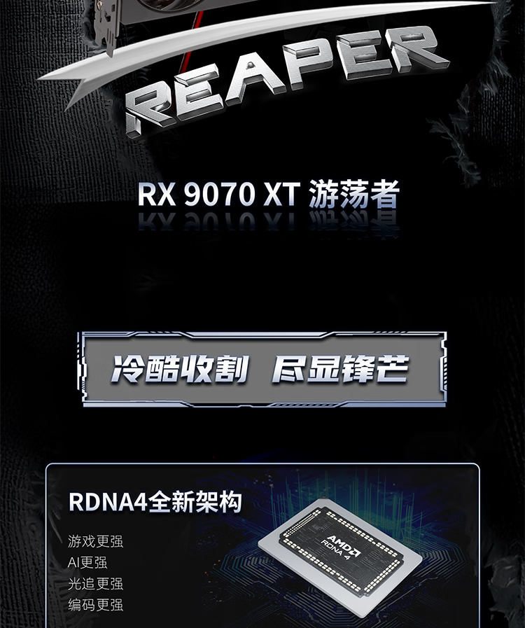 撼讯AMD RADEON RX 9070XT 游荡者16GB电竞游戏独立显卡高性能台式机独显人工智能AI大显存