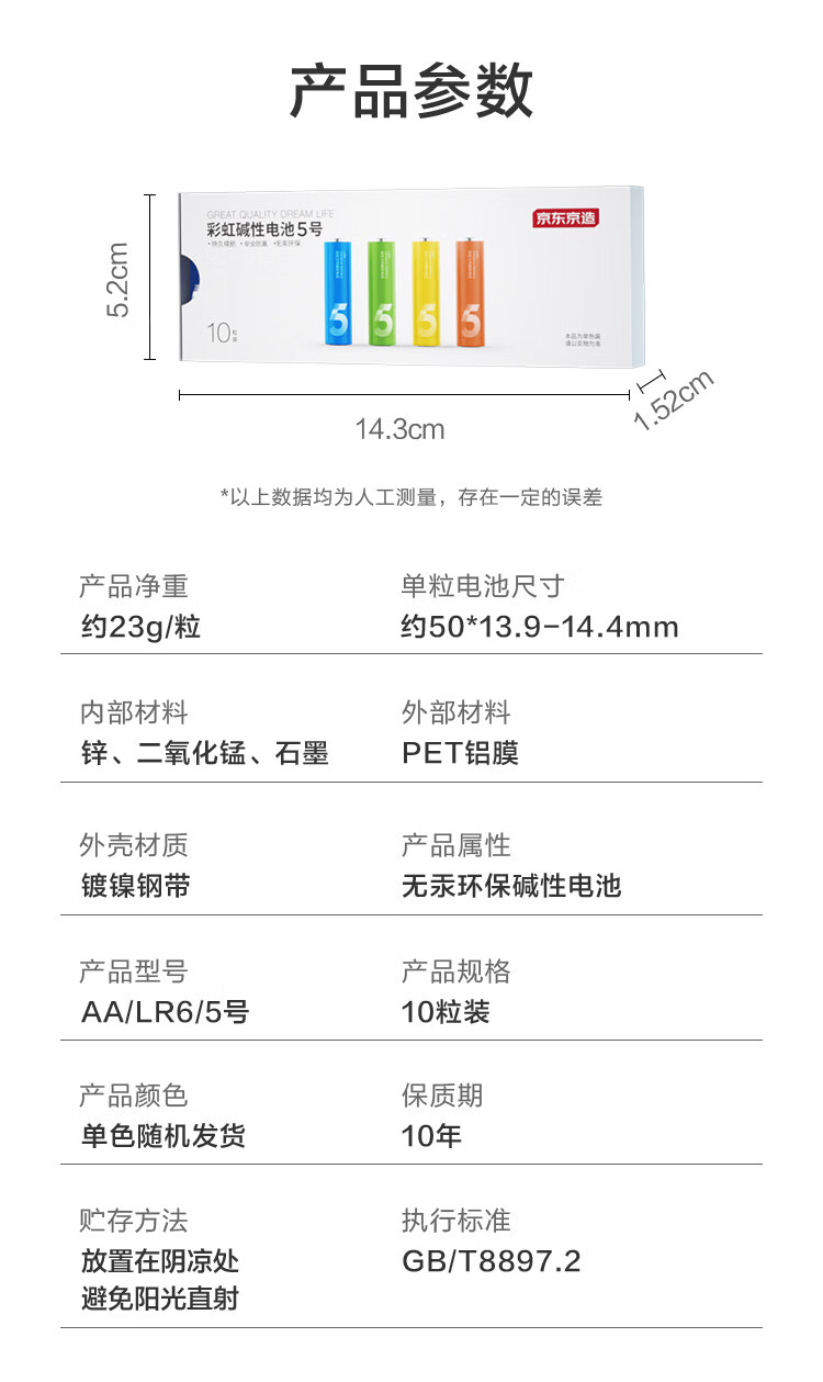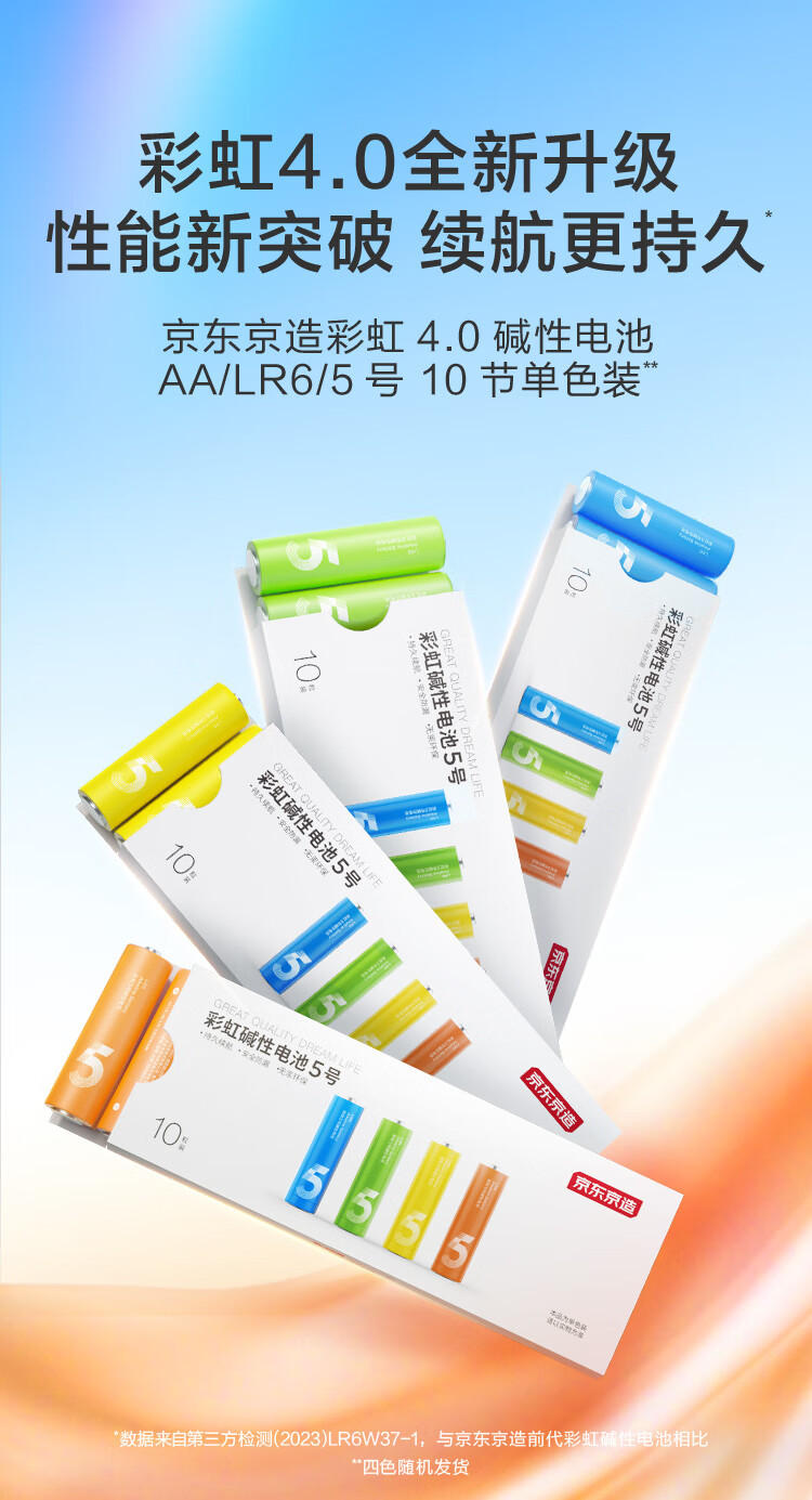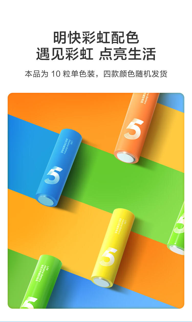 京东京造5号电池10节单色装彩虹碱性电池无汞环保 玩具/血压计/血糖仪/遥控器/挂钟/电子锁/体脂秤/鼠标