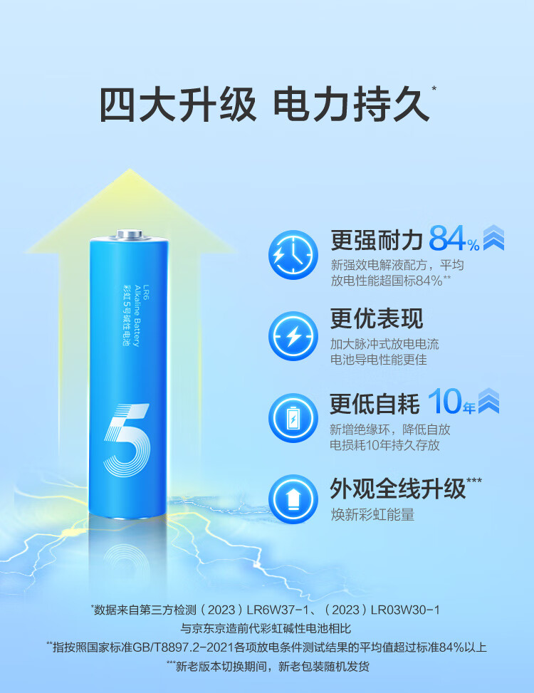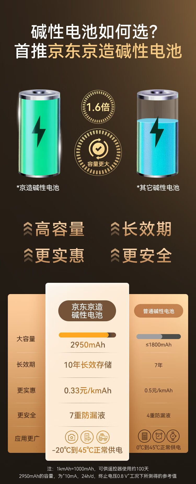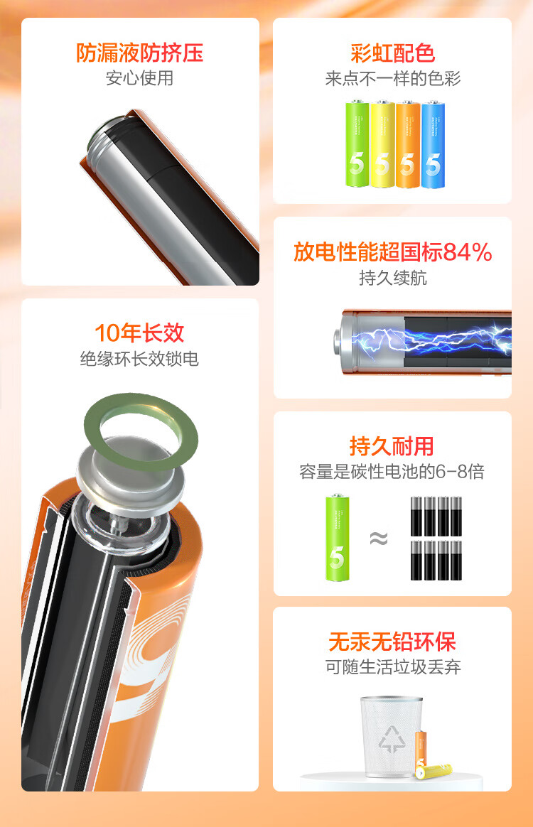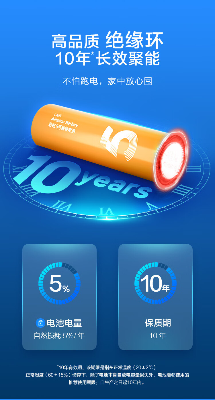 京东京造5号电池10节单色装彩虹碱性电池无汞环保 玩具/血压计/血糖仪/遥控器/挂钟/电子锁/体脂秤/鼠标