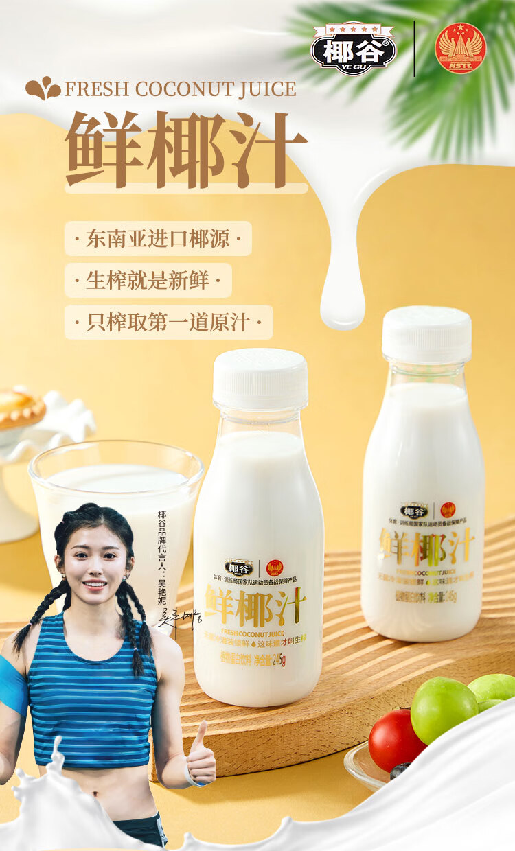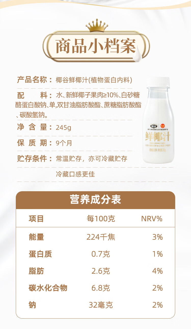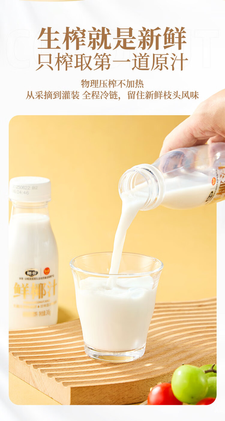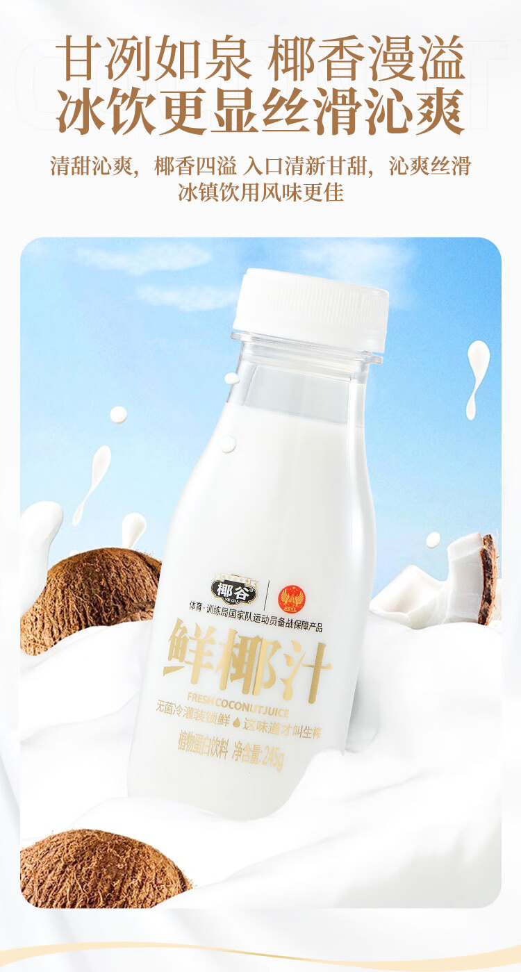 椰谷鲜椰汁生榨椰子汁早餐椰奶厚椰乳果汁生椰乳植物蛋白饮料整箱 鲜椰汁245g*10瓶