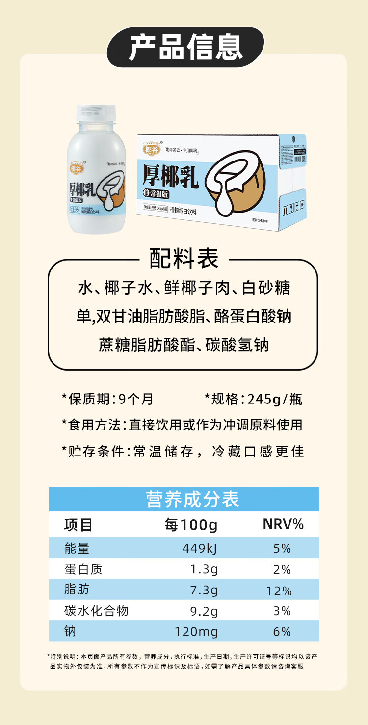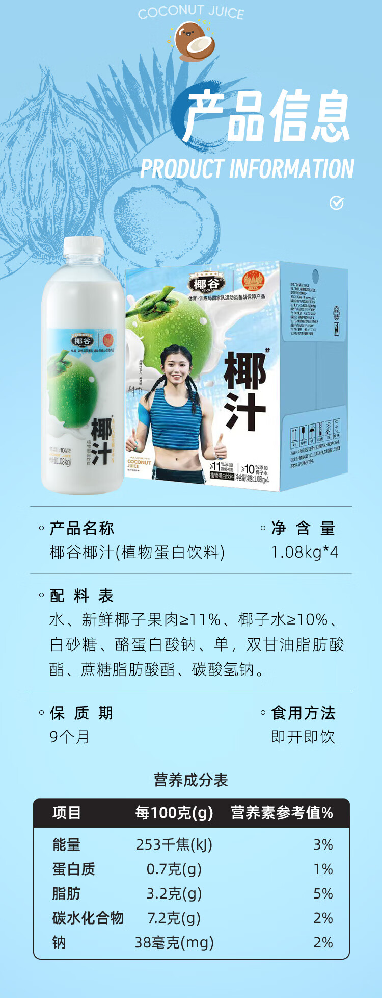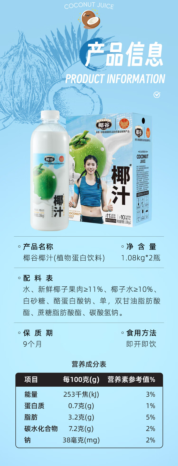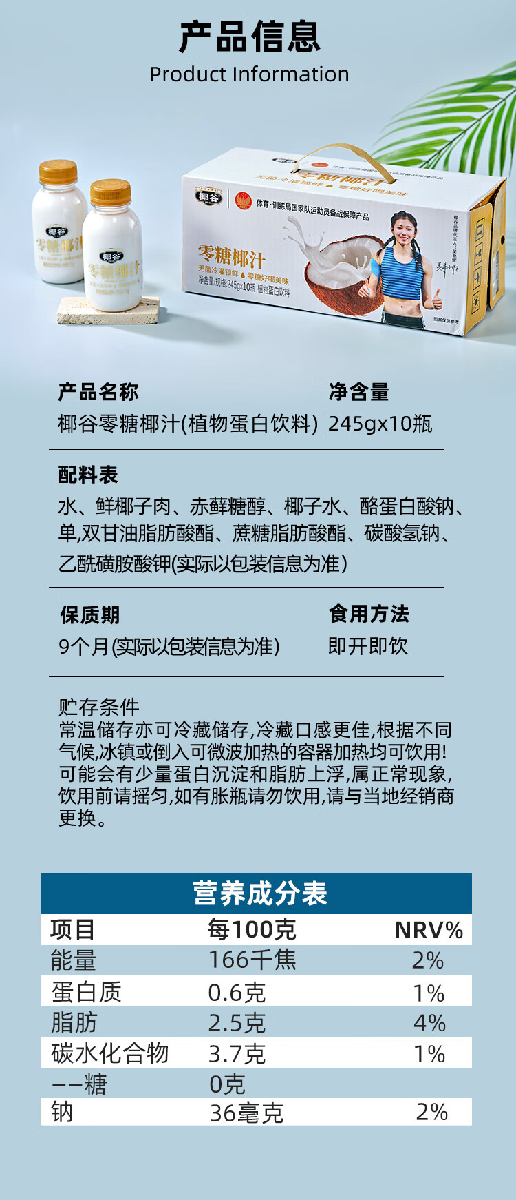 椰谷鲜椰汁生榨椰子汁早餐椰奶厚椰乳果汁生椰乳植物蛋白饮料整箱 鲜椰汁245g*10瓶