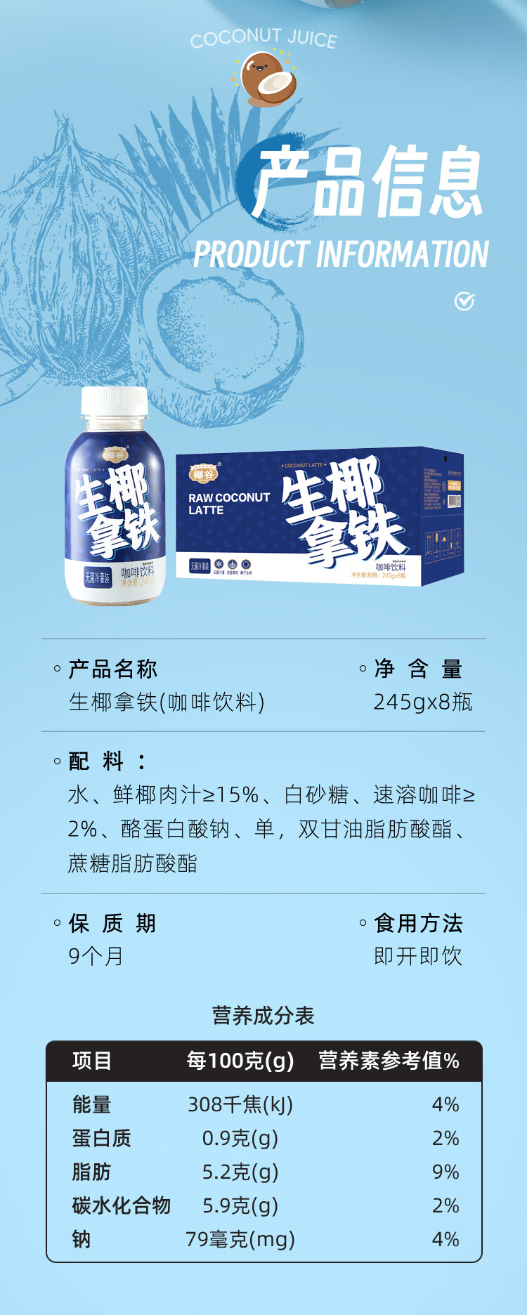 椰嗨果源生椰椰子汁植物蛋白饮料 果汁饮料245ml*24罐整箱装 中秋送礼 【家庭囤货】椰子汁1000ml