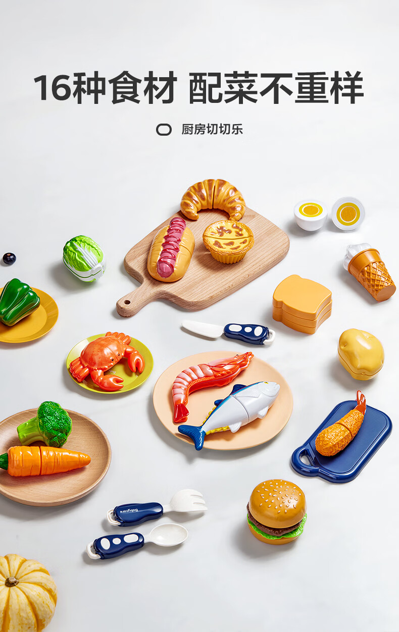 babycare儿童过家家玩具套装 宝宝男孩女孩切披萨蛋糕水果切切乐儿童礼物 厨房乐切切-16件套