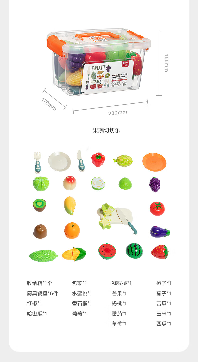 脘铼儿童水果切切乐仿真过家家果蔬剥皮玩具可啃咬榴 果蔬23件套【可剥皮可分切】配红