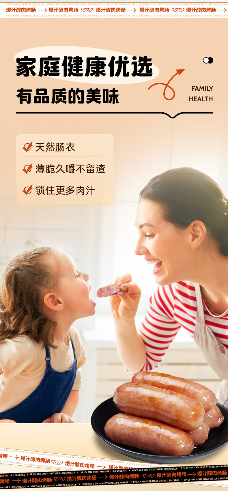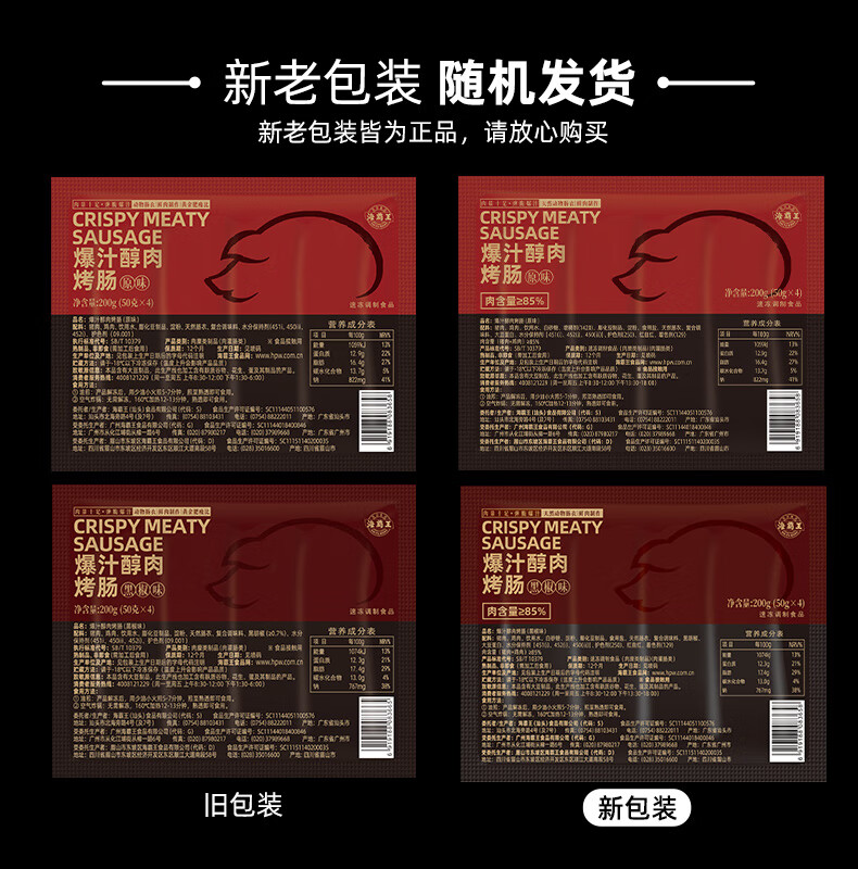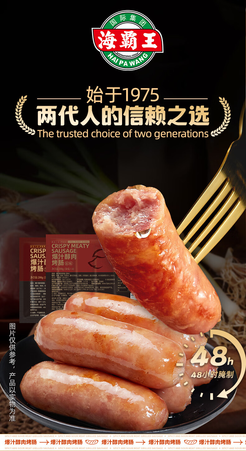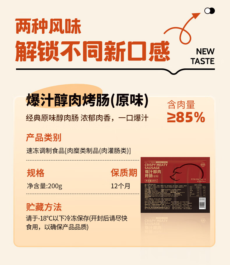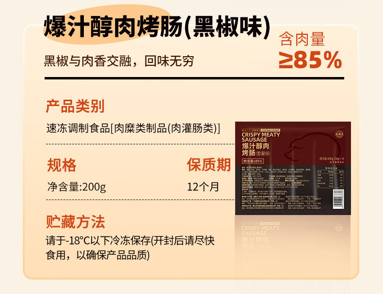 海霸王爆汁醇肉烤肠200g含肉量85%道地肠火山石香肠量早餐烧烤食材 原味(85%含肉量) 200g *3包