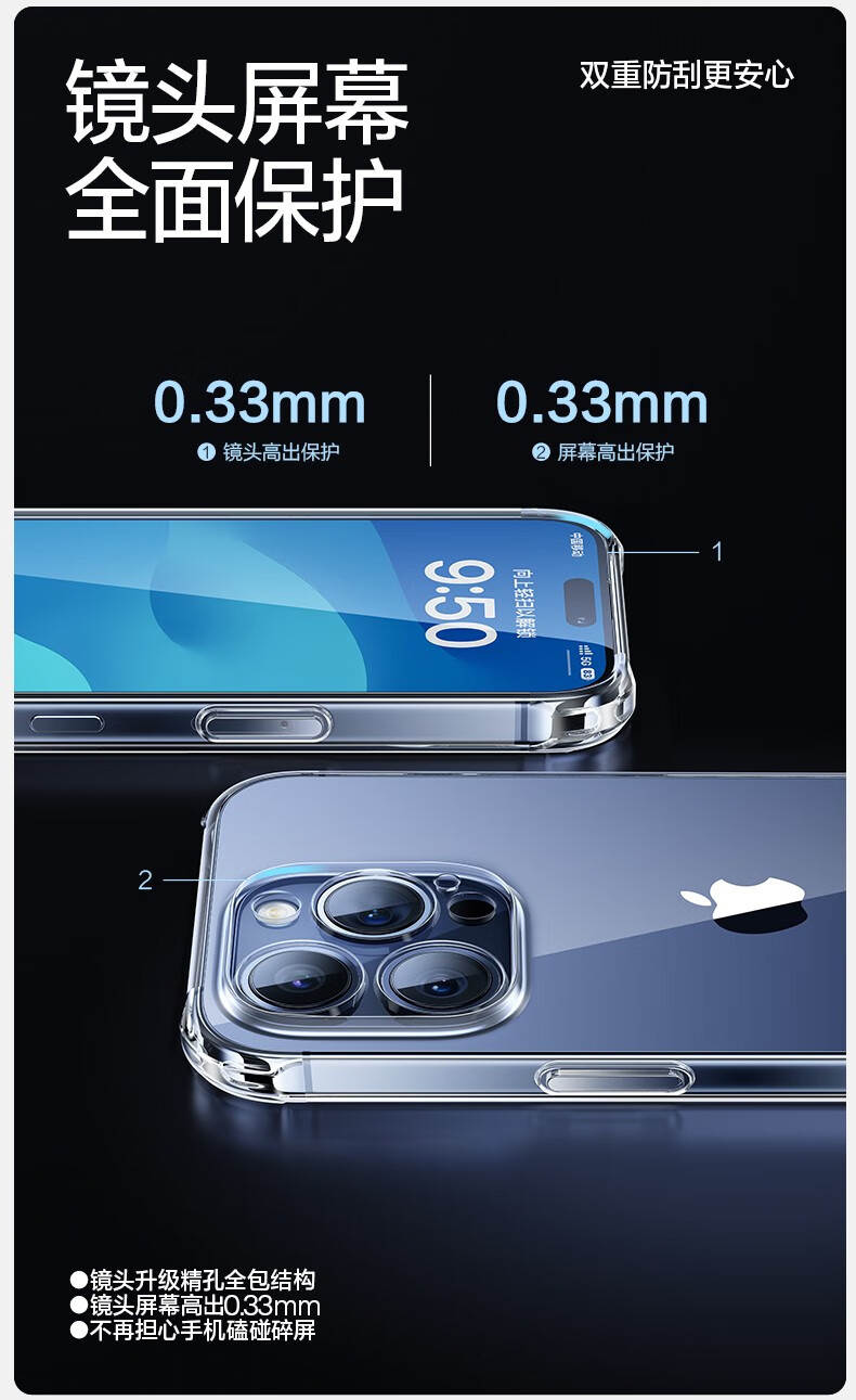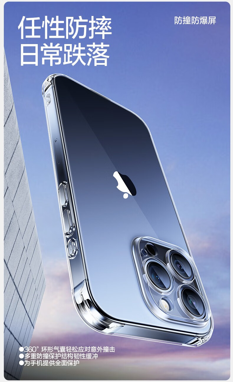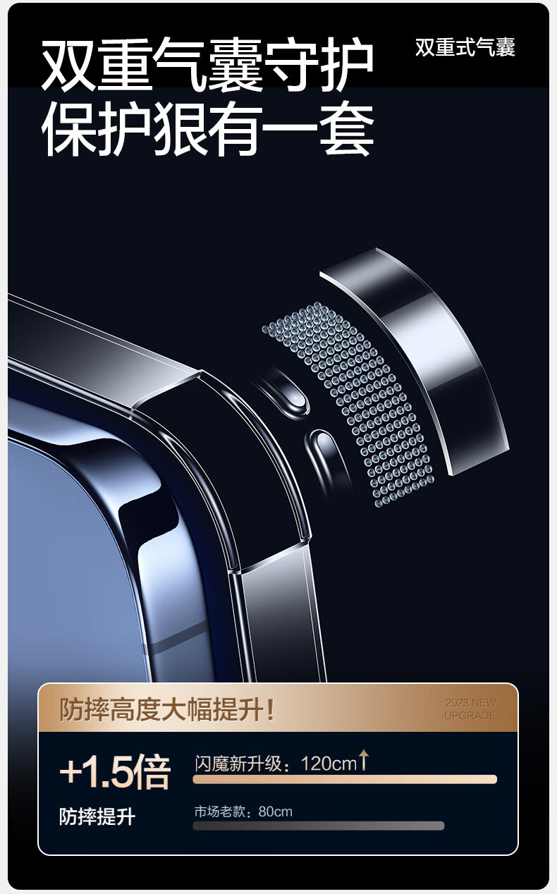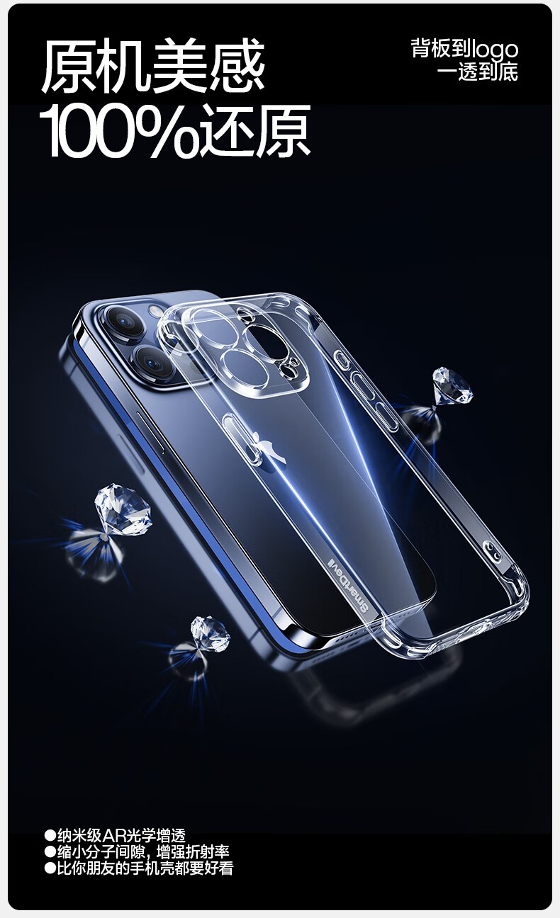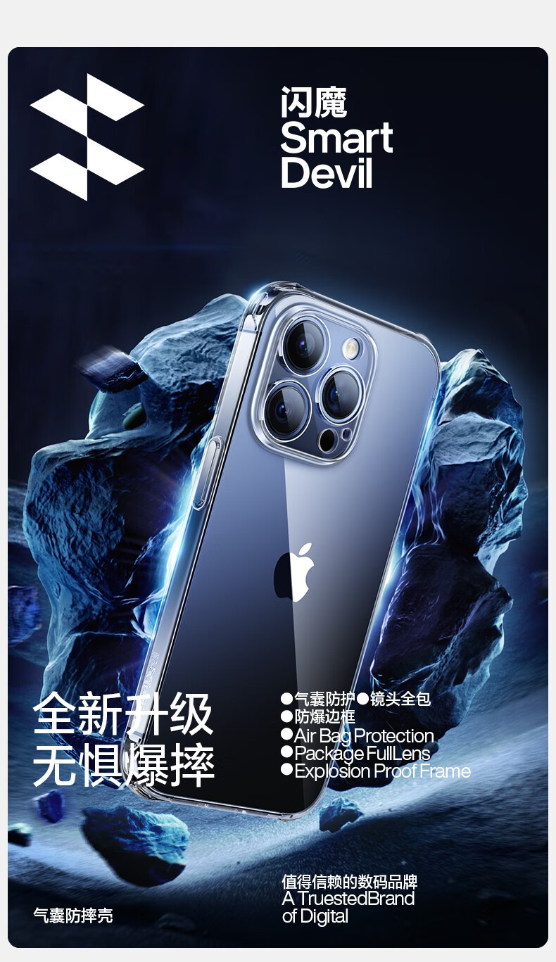 闪魔【严选现发】 苹果15手机壳 iPhone15ProMax气囊防摔超薄套镜头全 苹果15Promax【十米防摔】全透明