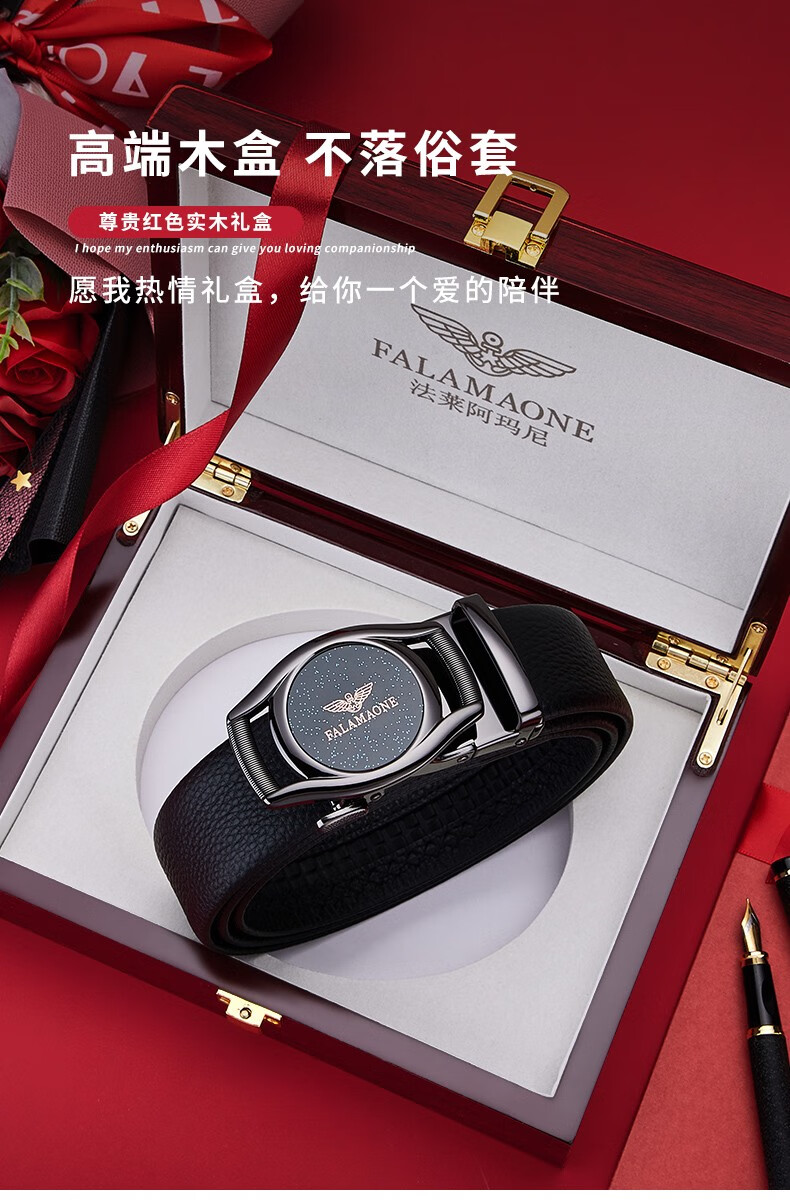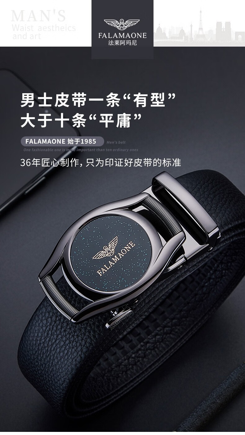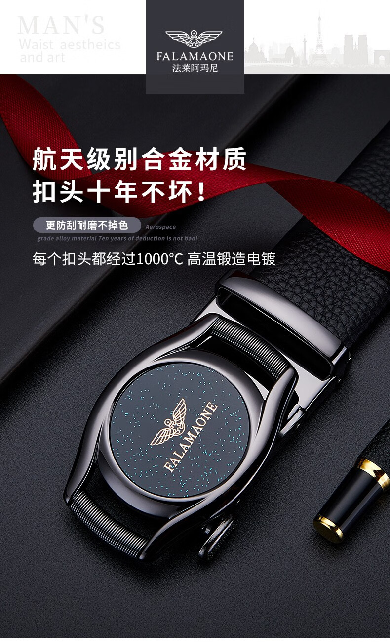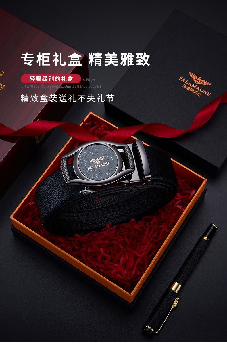 法莱阿玛尼(FALAMAONE)品牌皮带真皮自动扣腰带牛皮高档裤带生日礼物送爸爸送男友老公 满天星/黑色PD805Q【专柜礼盒】 110cm -140c加长均码(可修剪)