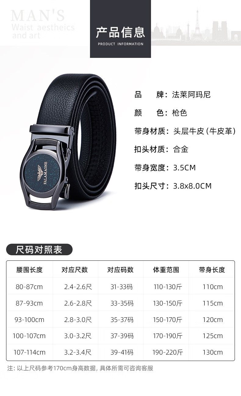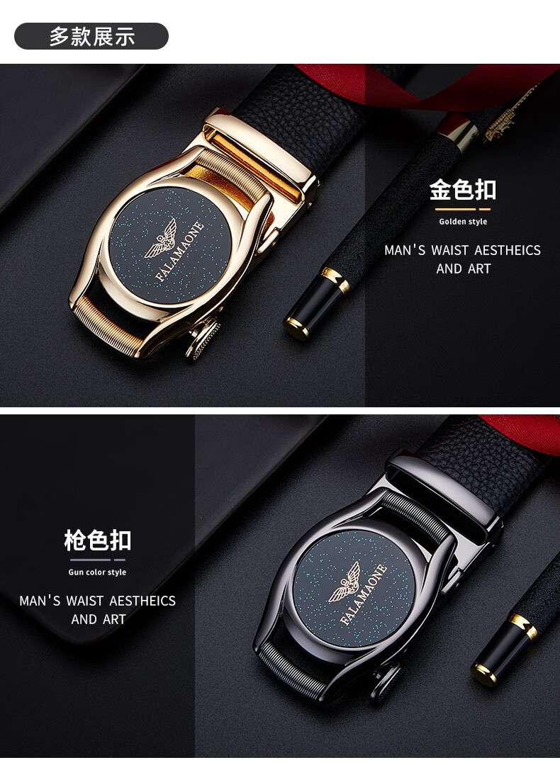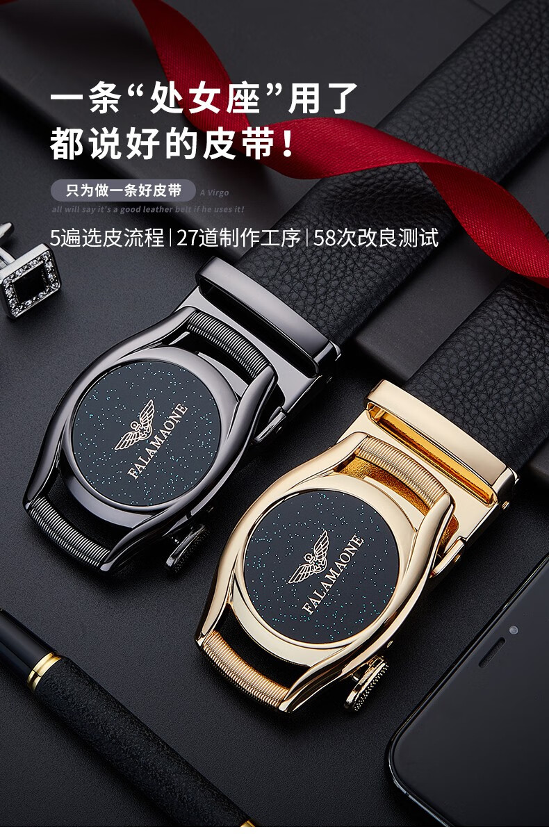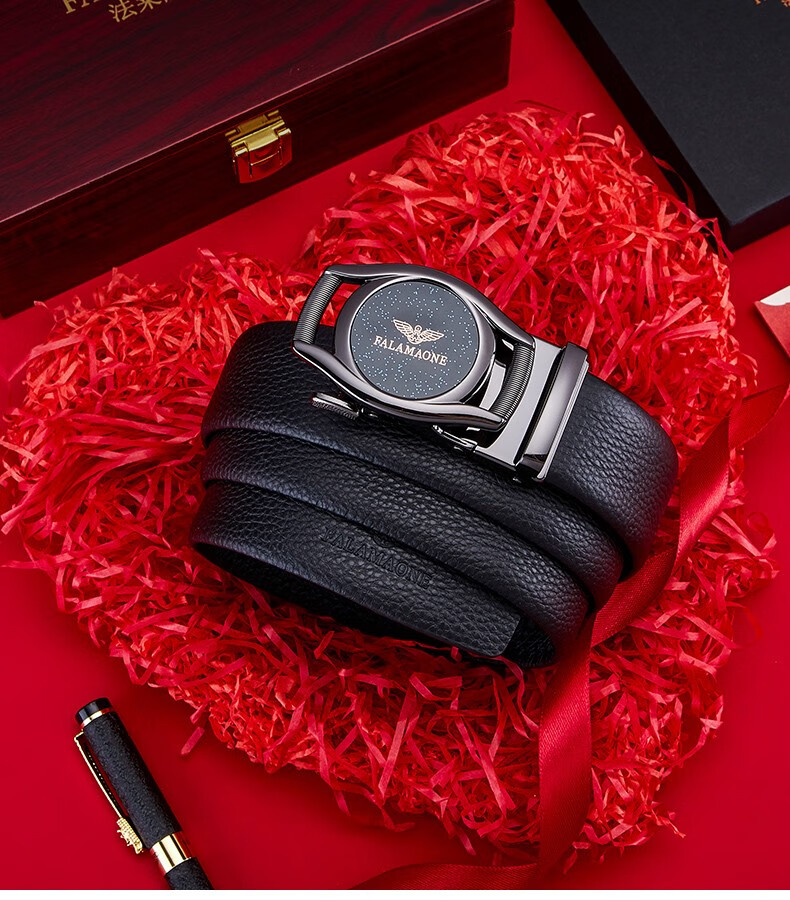 法莱阿玛尼(FALAMAONE)品牌皮带真皮自动扣腰带牛皮高档裤带生日礼物送爸爸送男友老公 满天星/黑色PD805Q【专柜礼盒】 110cm -140c加长均码(可修剪)