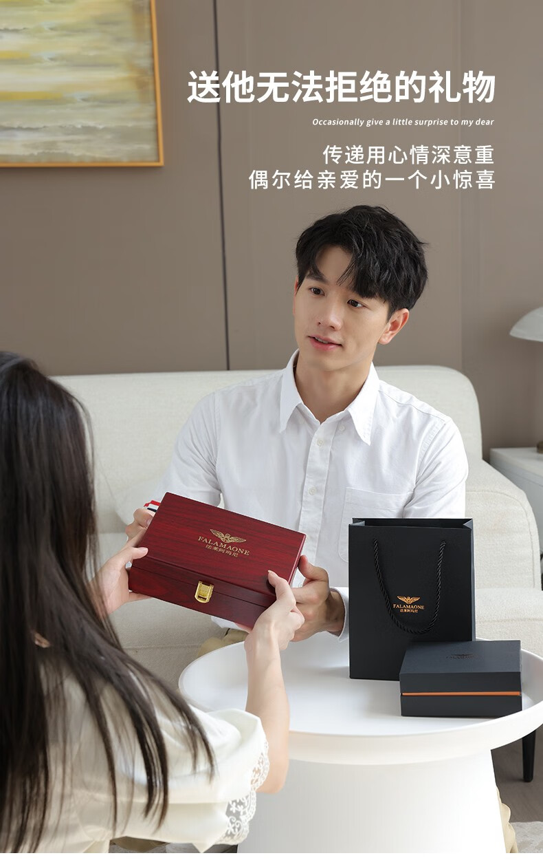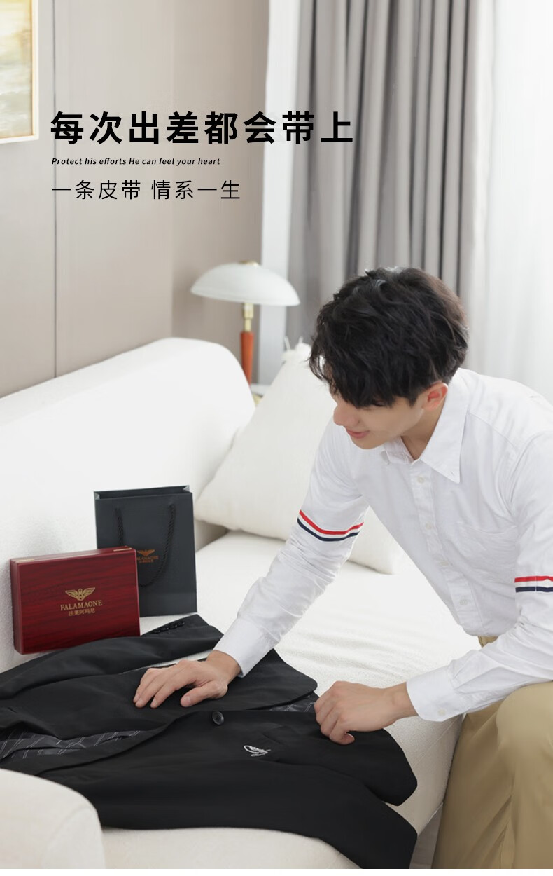 法莱阿玛尼(FALAMAONE)男士皮带男真皮轻奢自动扣牛皮商务礼盒裤腰带生日礼物送男友老公 专柜礼盒/PD823Q/百搭枪色 120cm 【可裁剪】