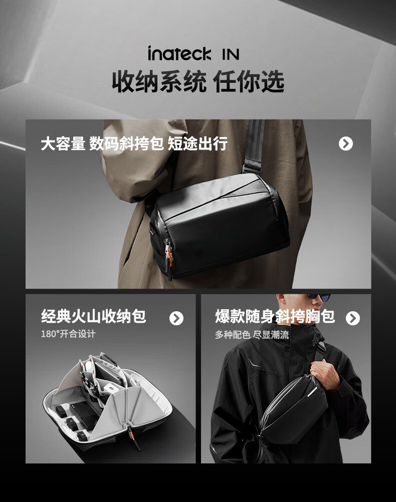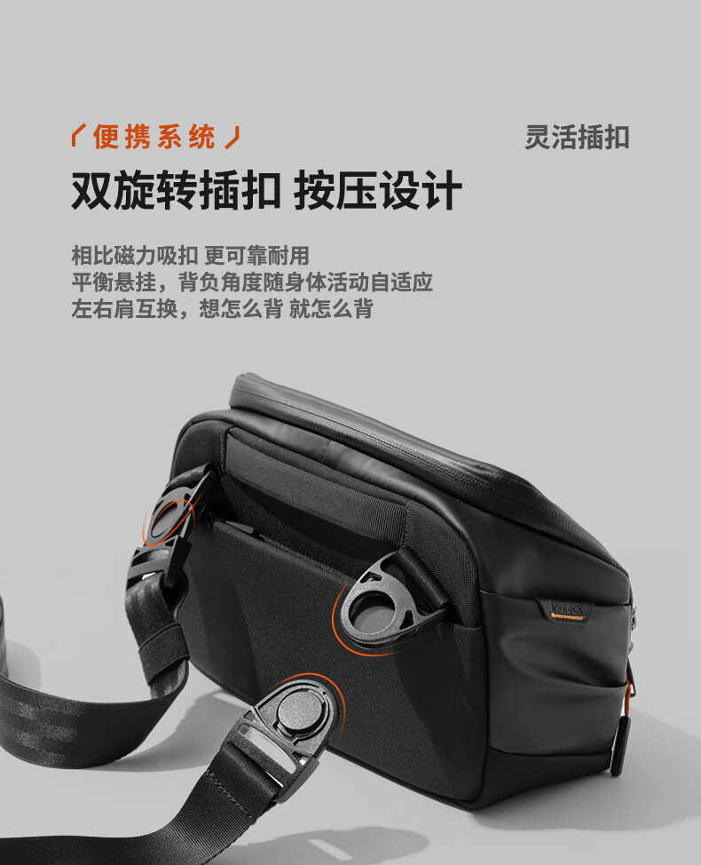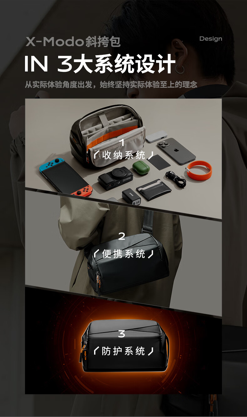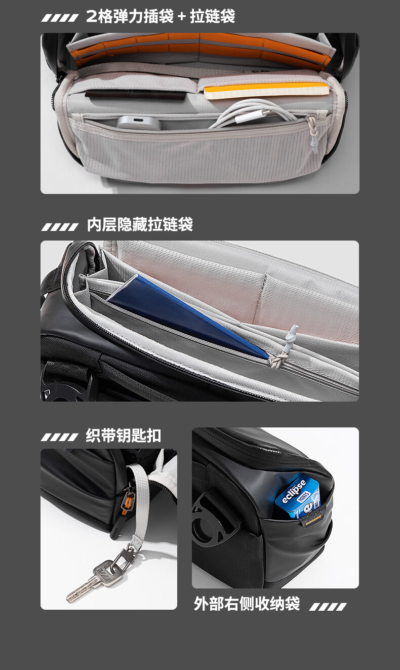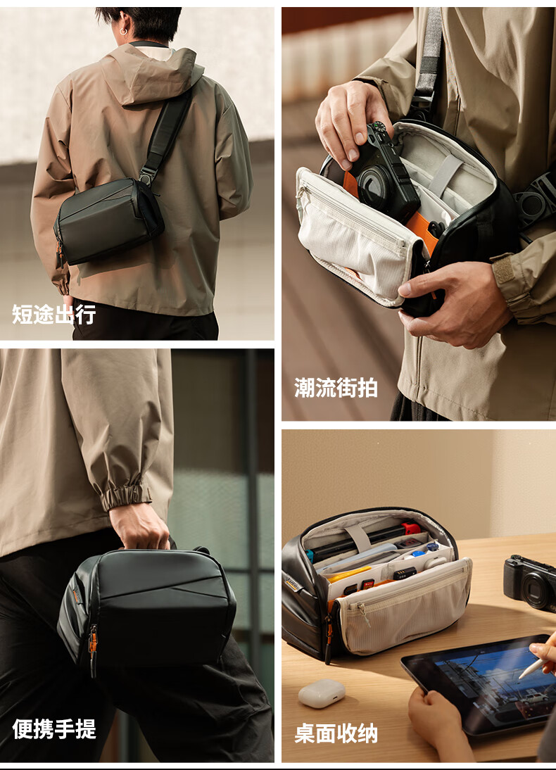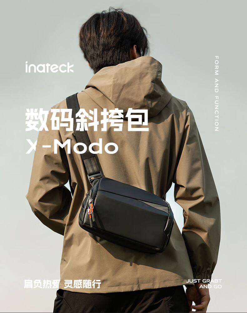 inateck数码斜挎包X-mode随行包手提包数码收纳多功能包户外运动休闲包 曜石黑【有肩带款】