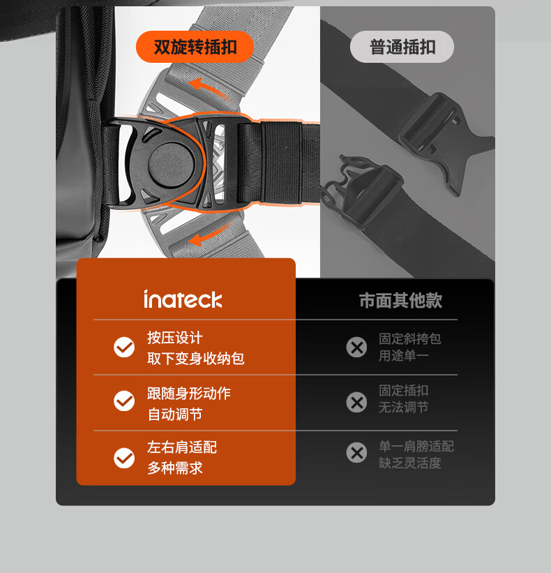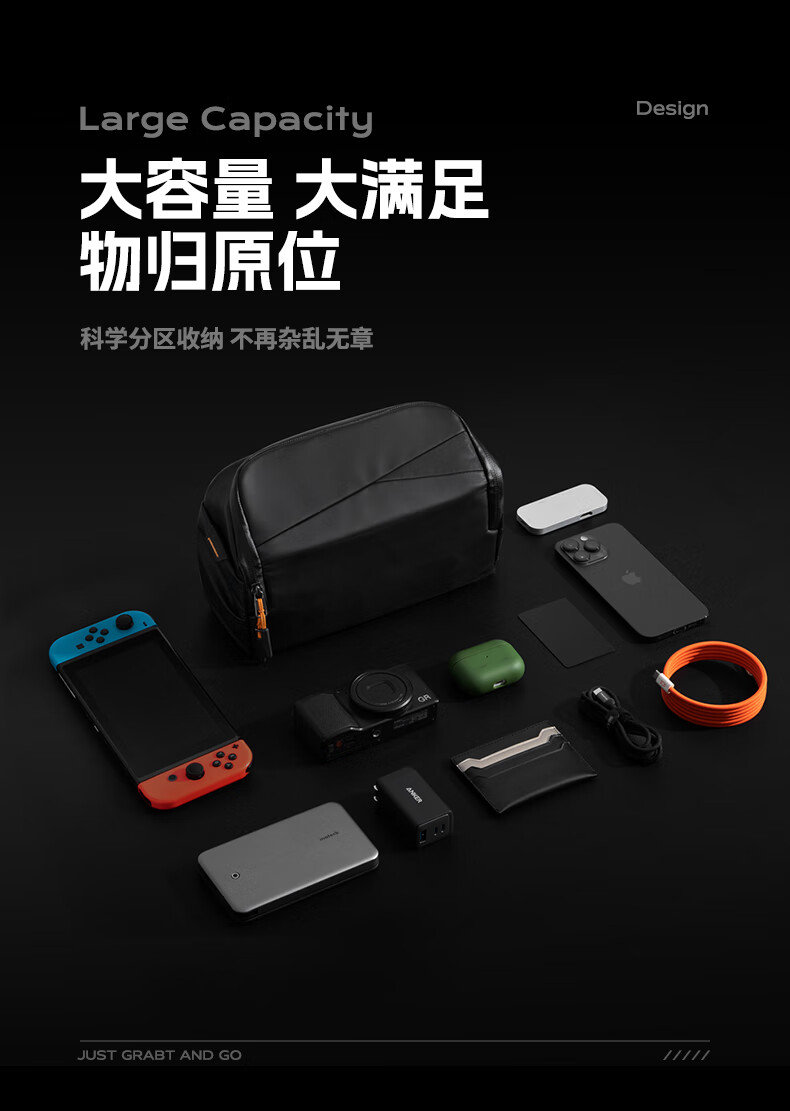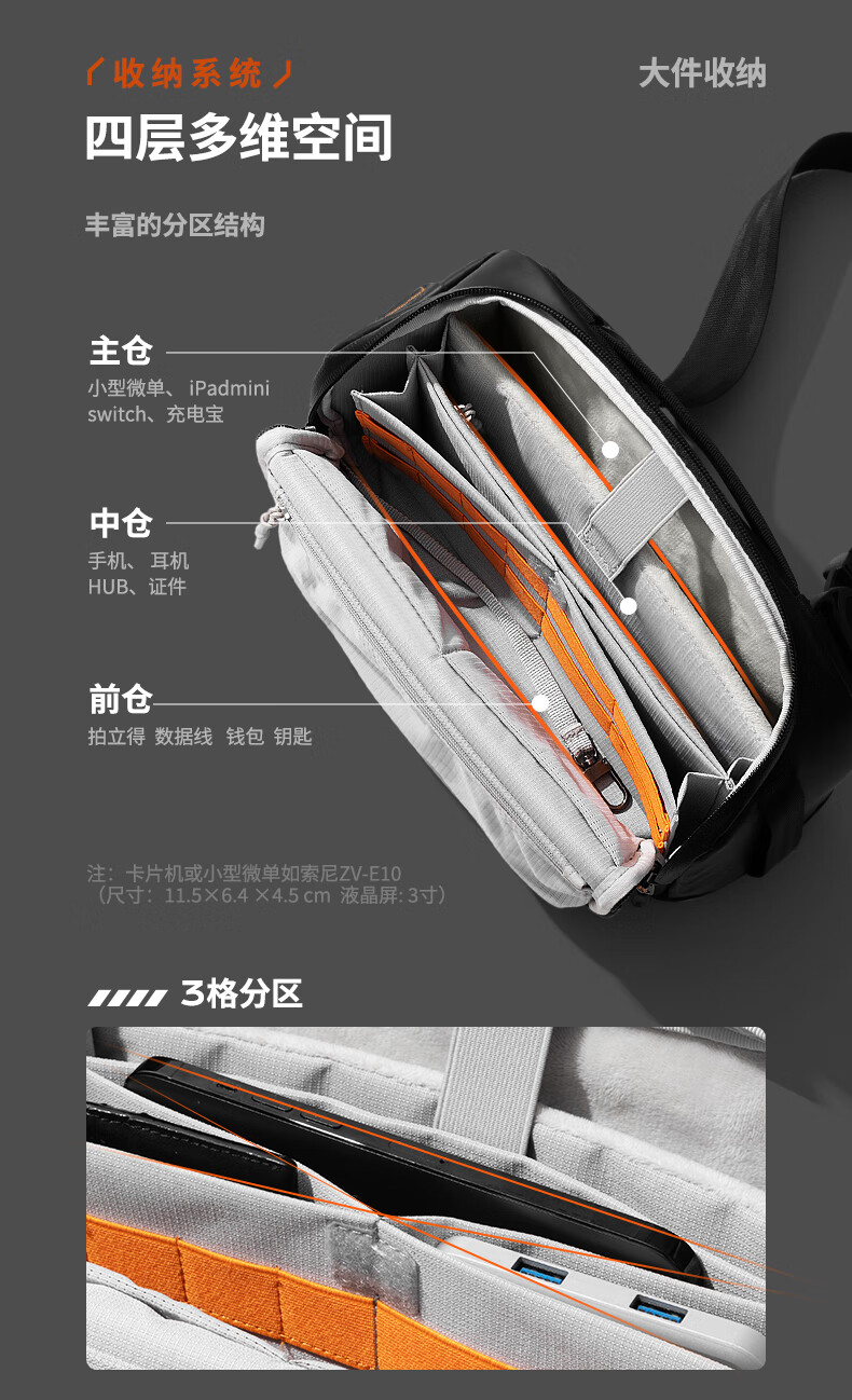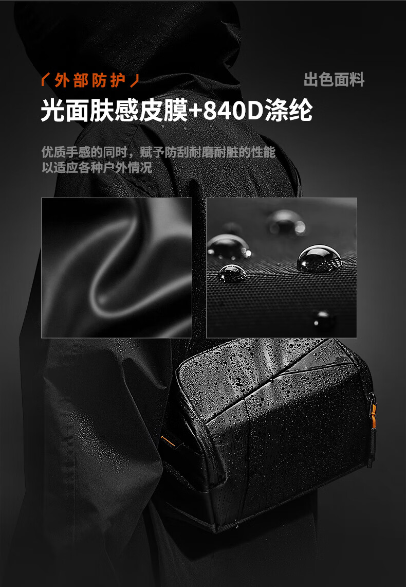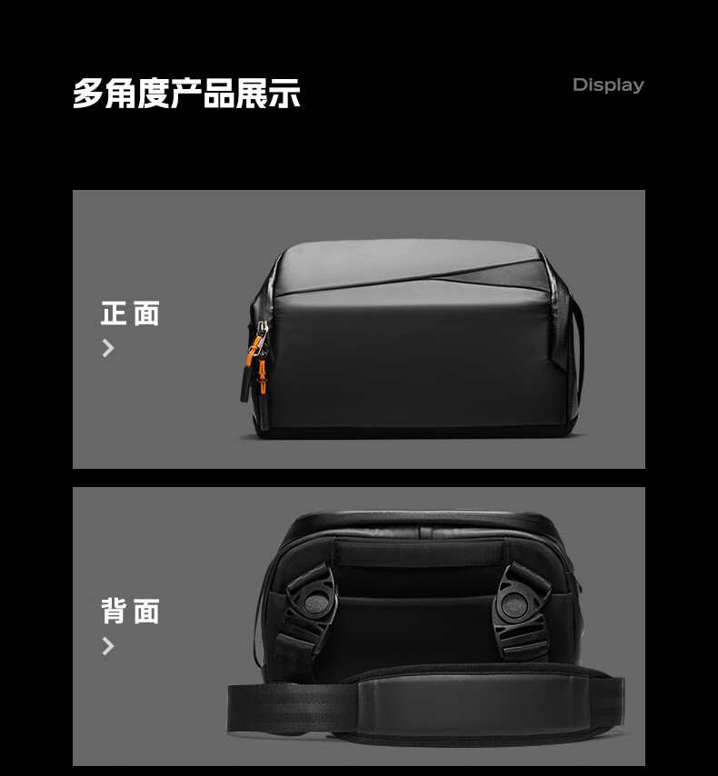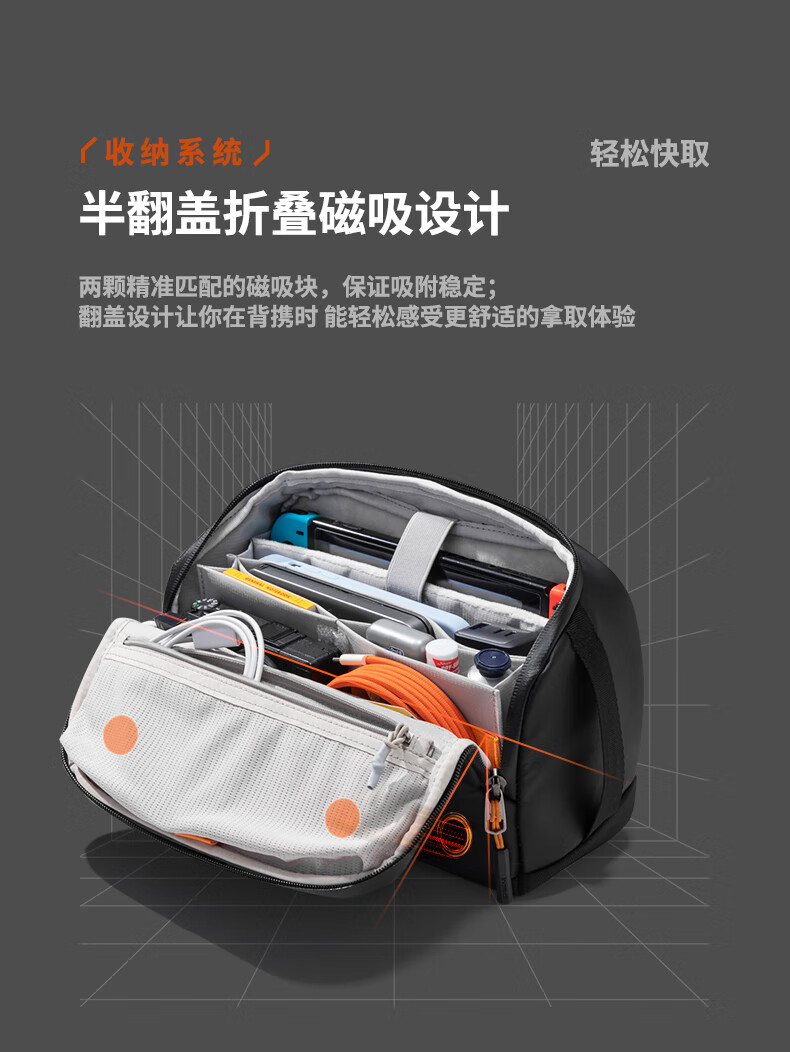 inateck数码斜挎包X-mode随行包手提包数码收纳多功能包户外运动休闲包 曜石黑【有肩带款】
