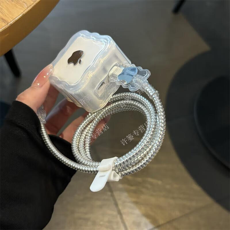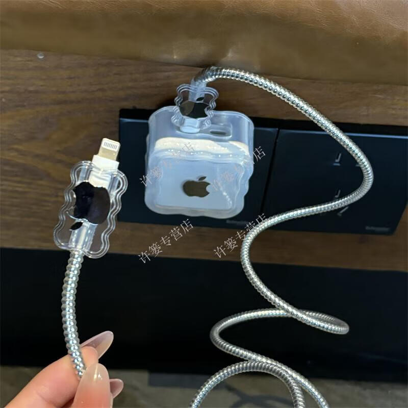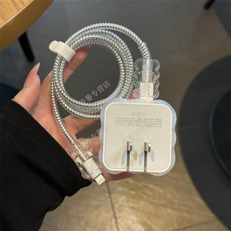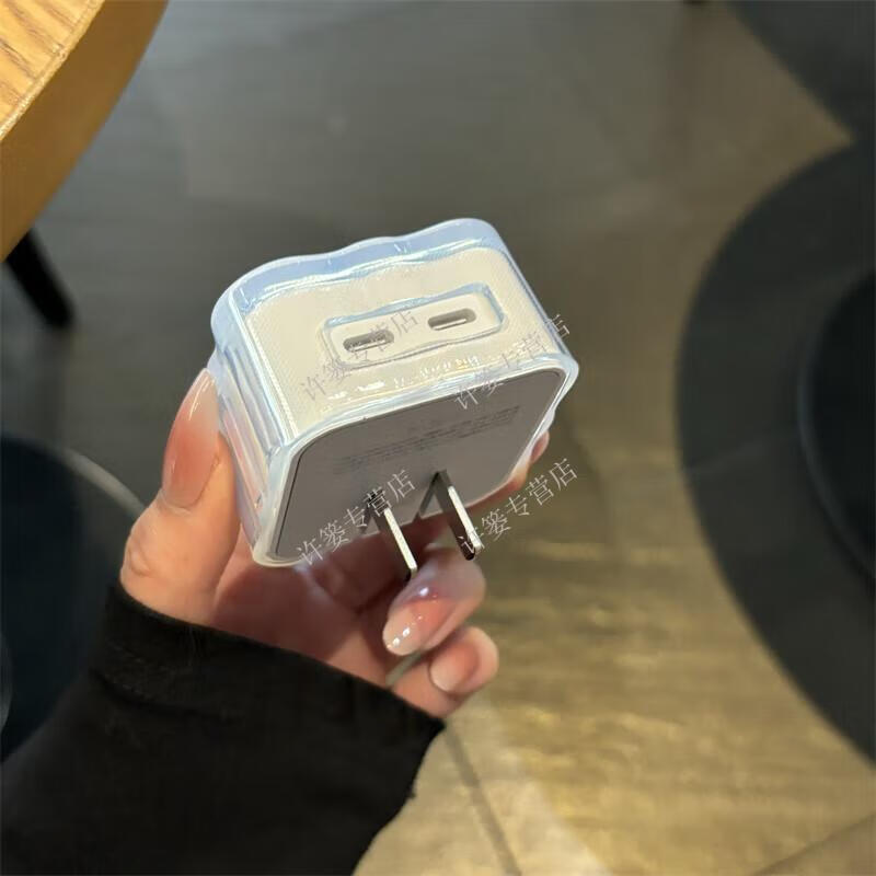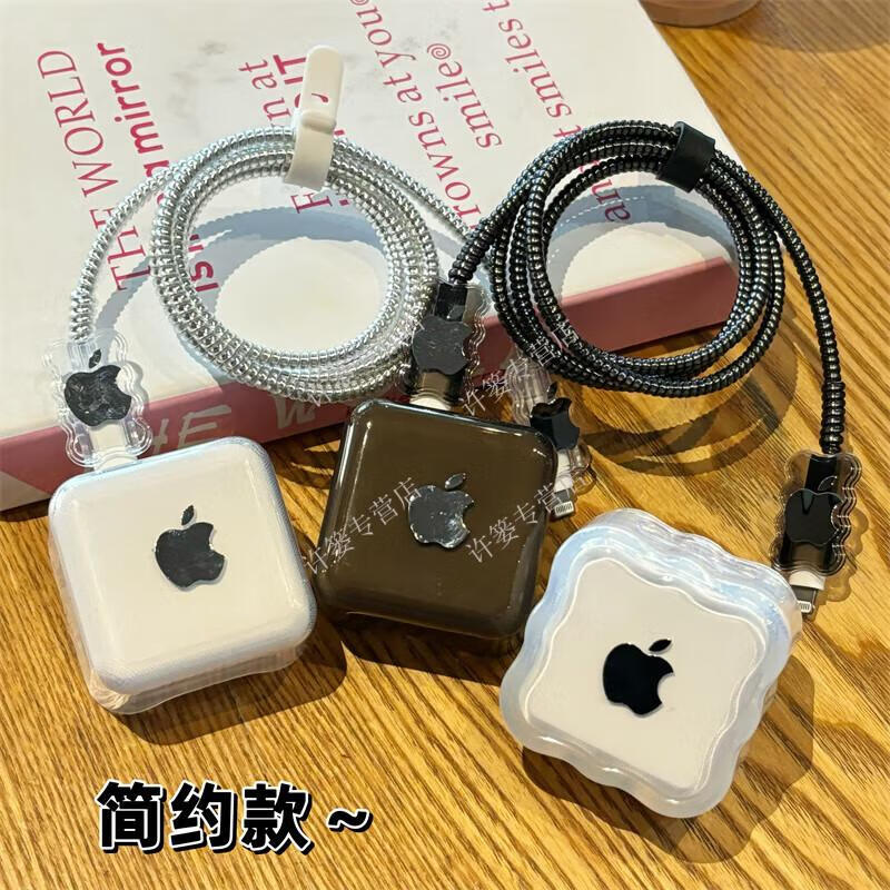 MPPMCK充电器保护套防断头简约苹果35w双口充电器保护套适用iPhone16pro快充线15软壳 35w双孔常规透黑壳【简约标志】电镀黑4件套